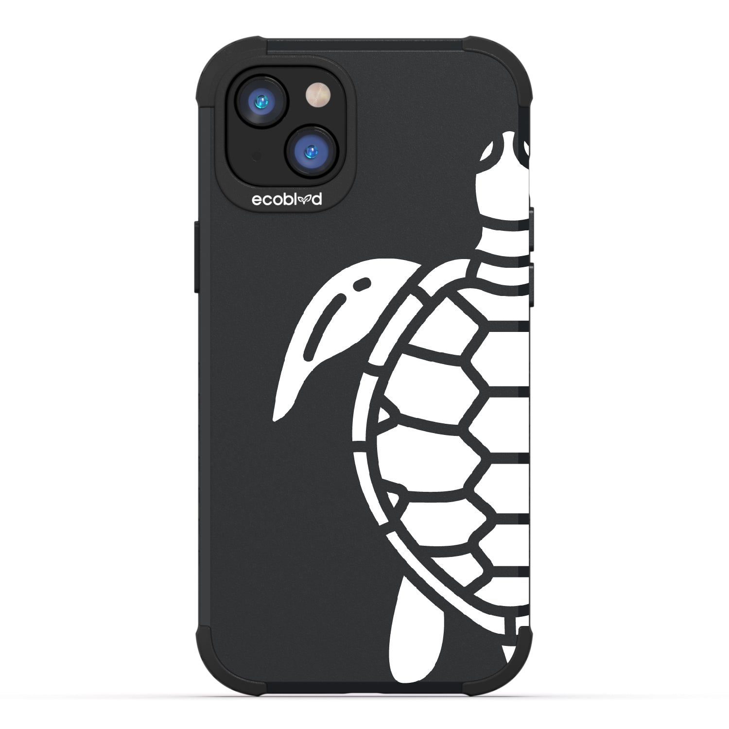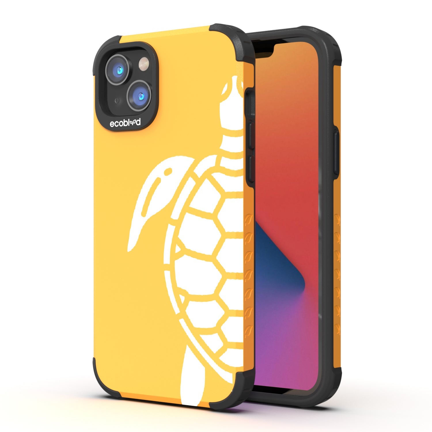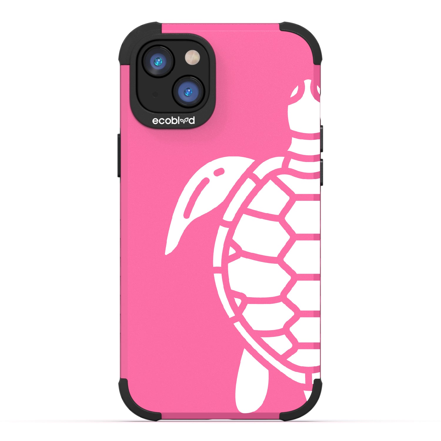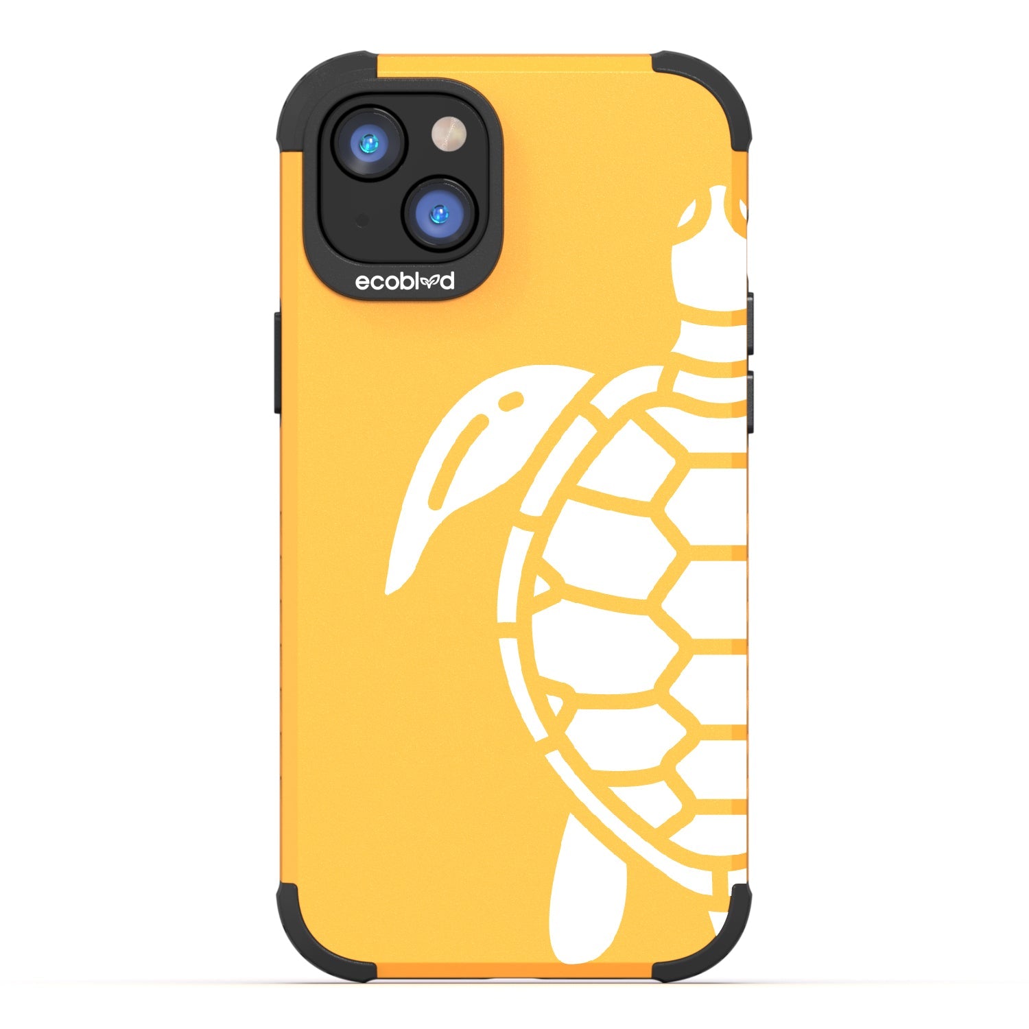 Every day will feel like a righteous beach day as the tranquil Sea Turtle design on our Mojave rugged and compostable iPhone 16e, iPhone 14, and iPhone 13 case floats along your phone. Choose from five vibrant colorways: Midnight Black, Cascade Blue, Foliage Green, Illuminating Yellow, and Wildflower Pink.