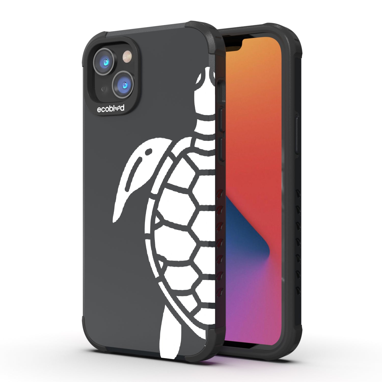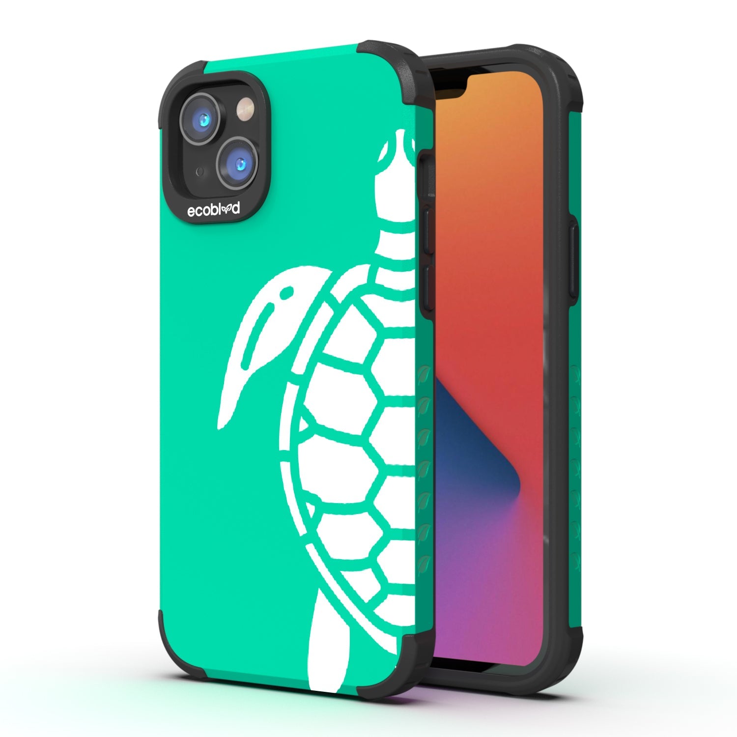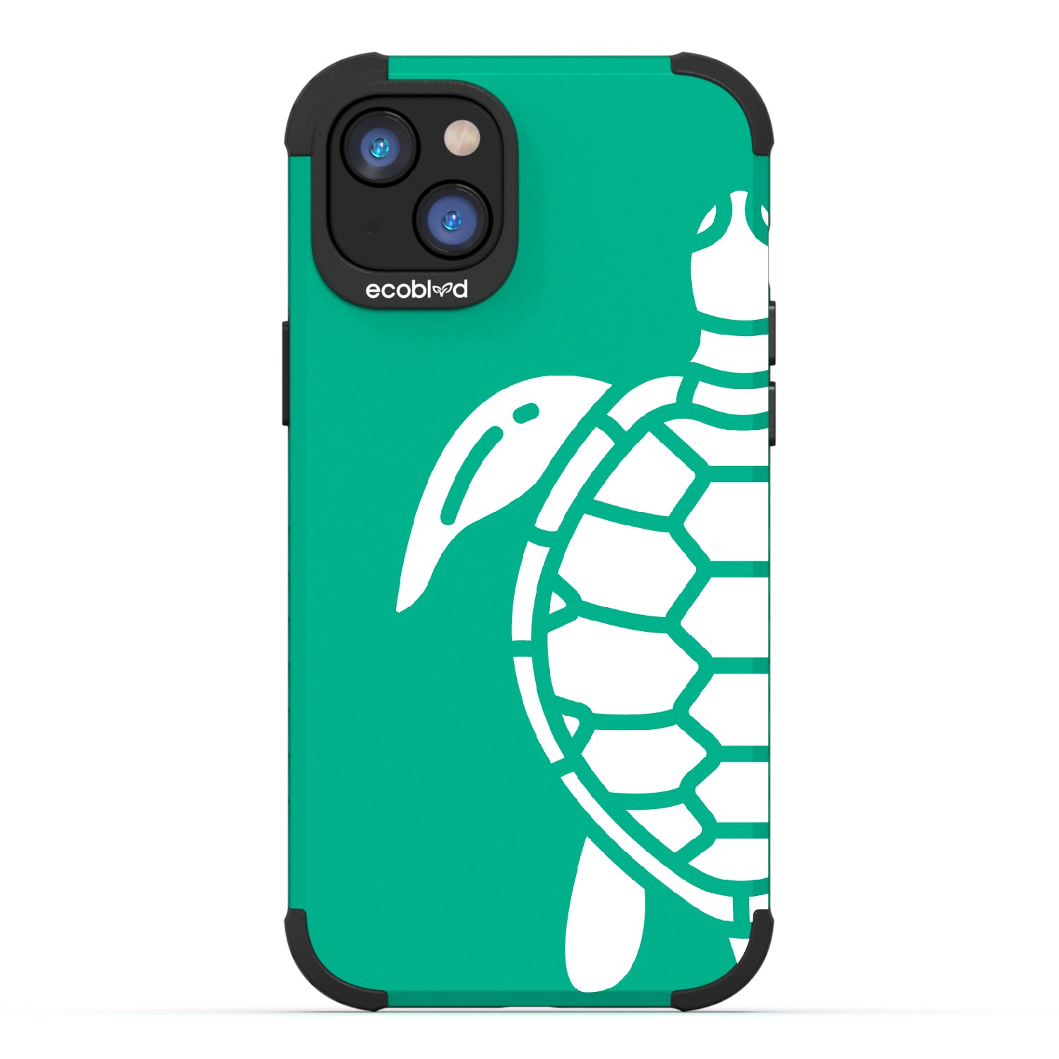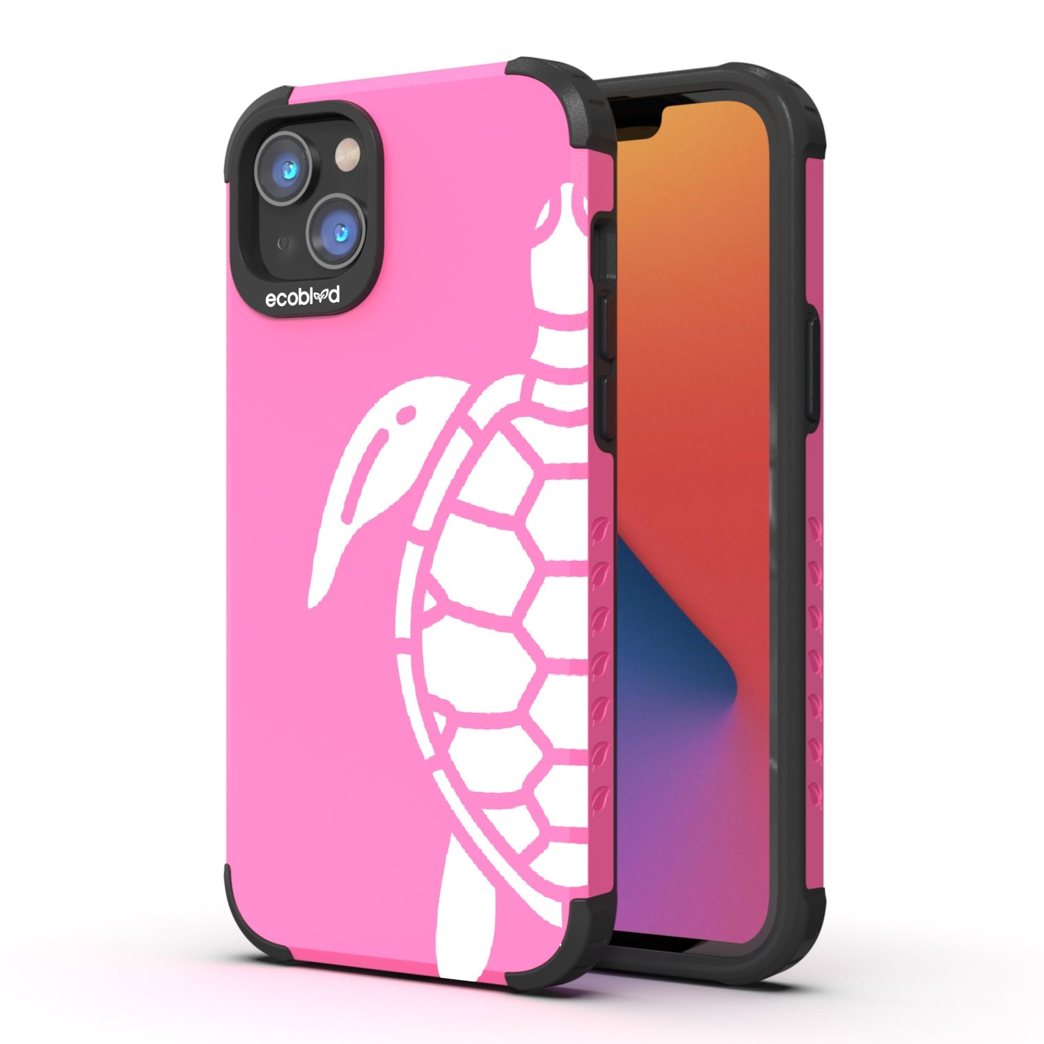 Every day will feel like a righteous beach day as the tranquil Sea Turtle design on our Mojave rugged and compostable iPhone 16e, iPhone 14, and iPhone 13 case floats along your phone. Choose from five vibrant colorways: Midnight Black, Cascade Blue, Foliage Green, Illuminating Yellow, and Wildflower Pink.