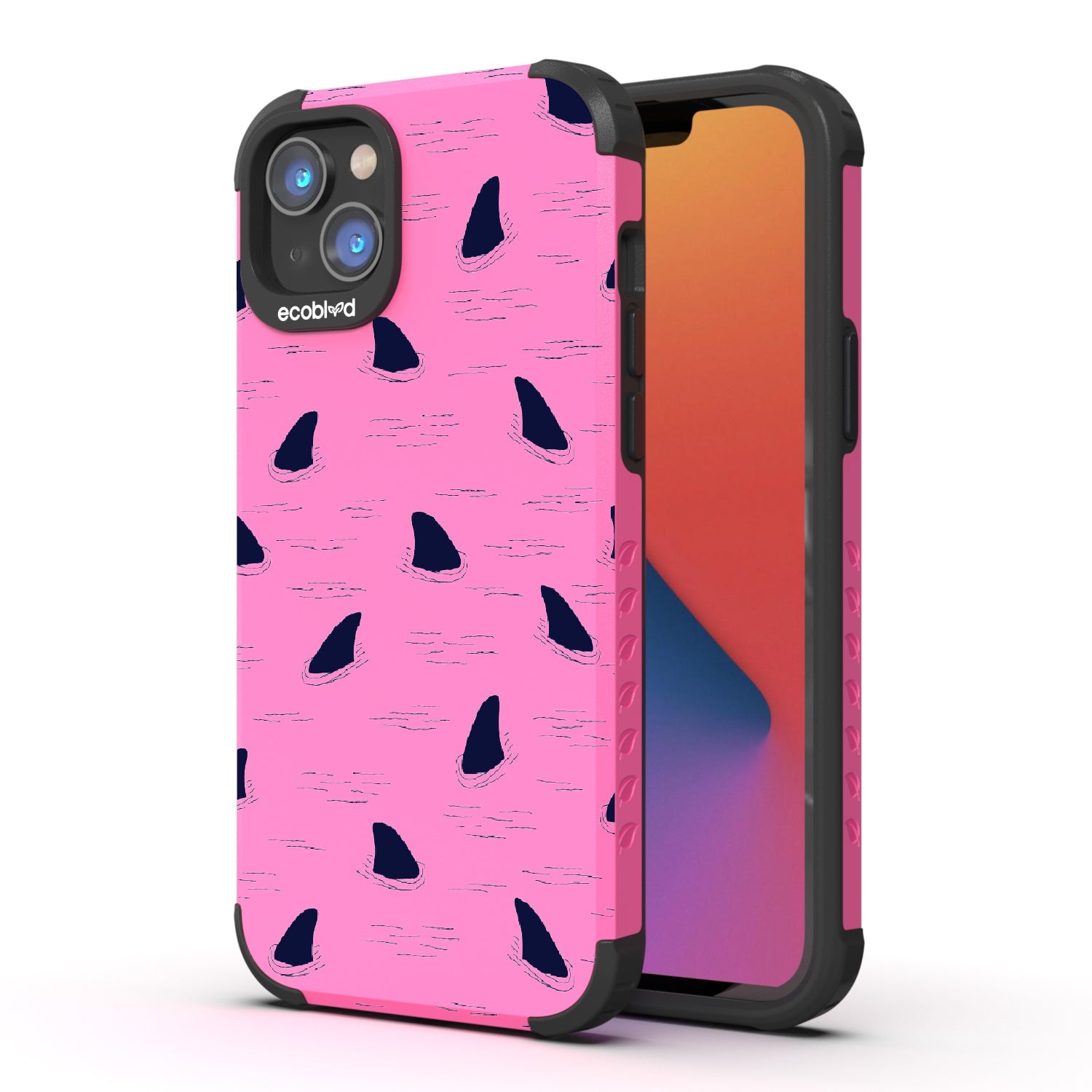 You never know what could be lurking around your phone as the Shark Fin design on our Mojave rugged and compostable iPhone 16e, iPhone 14, and iPhone 13 case surrounds it with an adrenaline-pumping look that shows off your fearless side and your bold spirit - brave enough to swim with sharks. Choose from five vibrant color options: Midnight Black, Cascade Blue, Foliage Green, Illuminating Yellow, and Wildflower Pink.