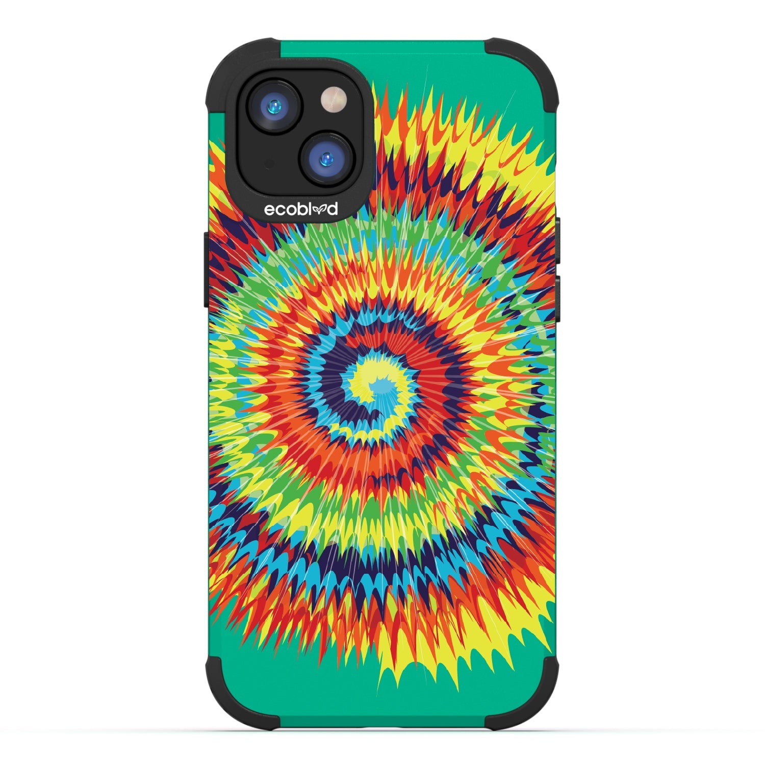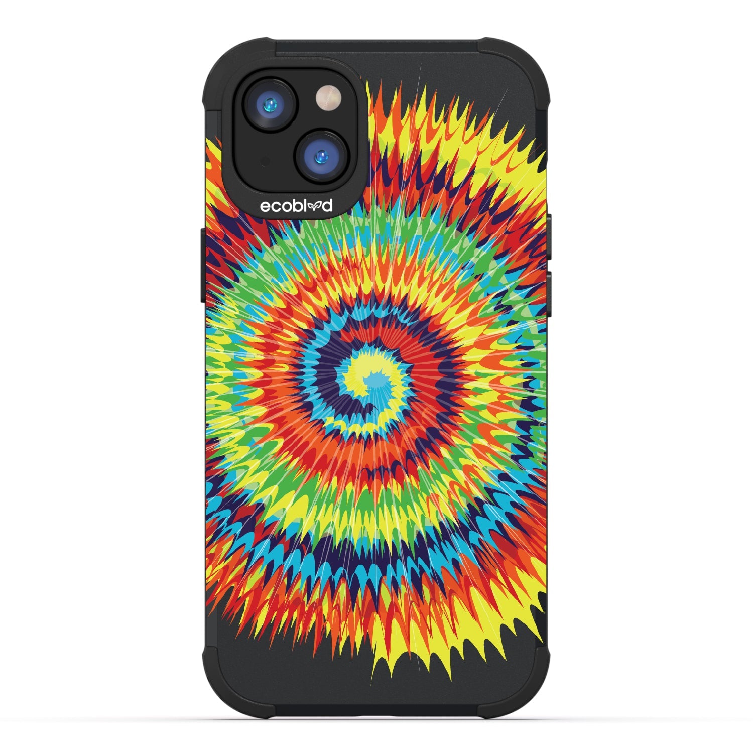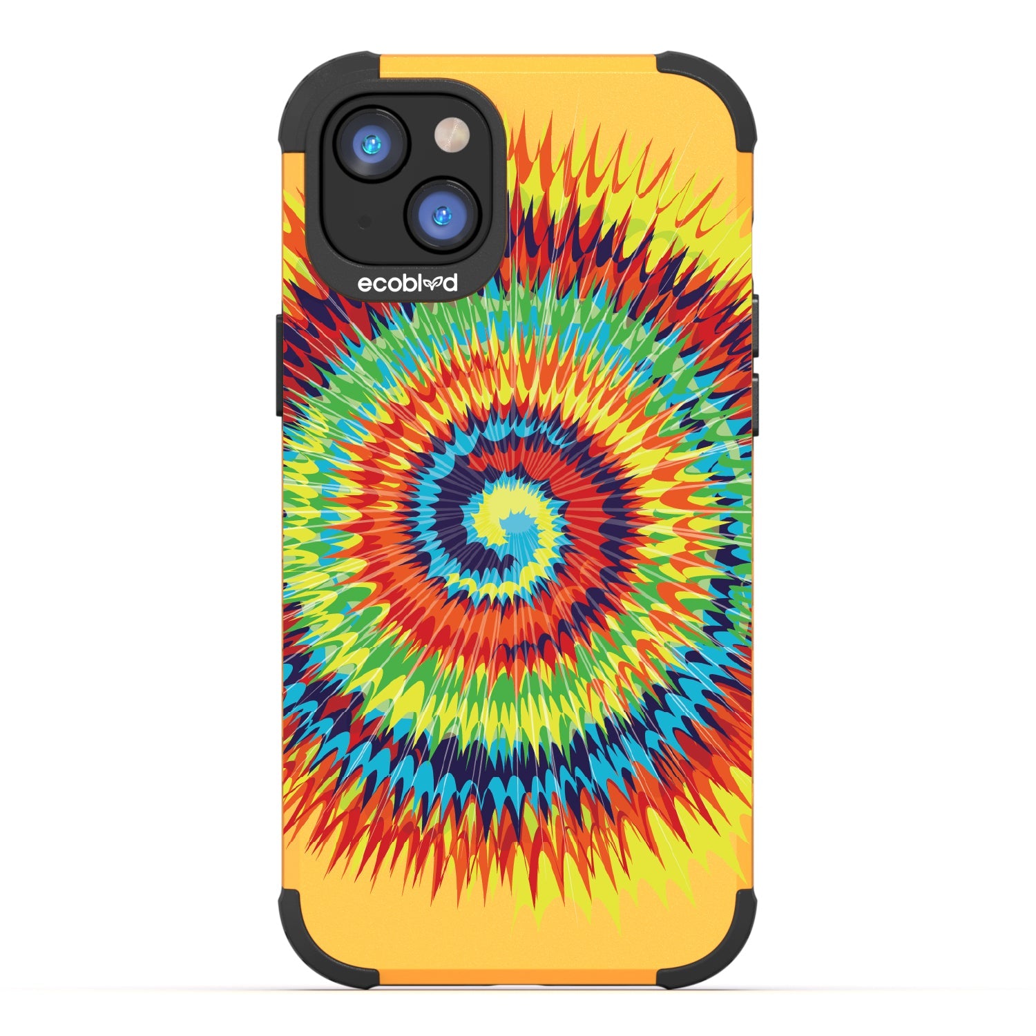 Bringing back the summer days of backyard BBQs, beach days, and fun in the sun, the Tie Dye design on our Mojave rugged and compostable iPhone 16e, iPhone 14, and iPhone 13 case has a retro rainbow swirl pattern giving your phone and style an eye-catching twist.