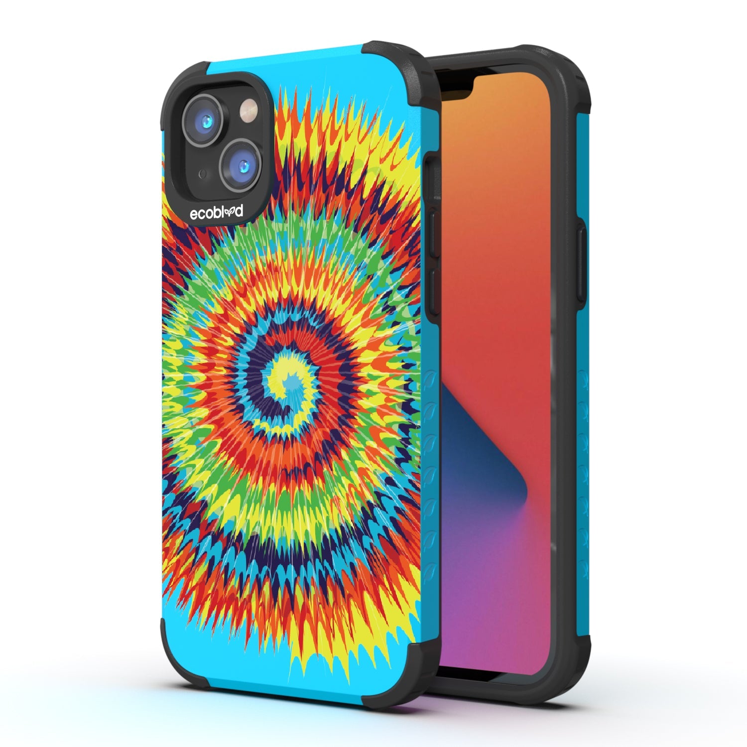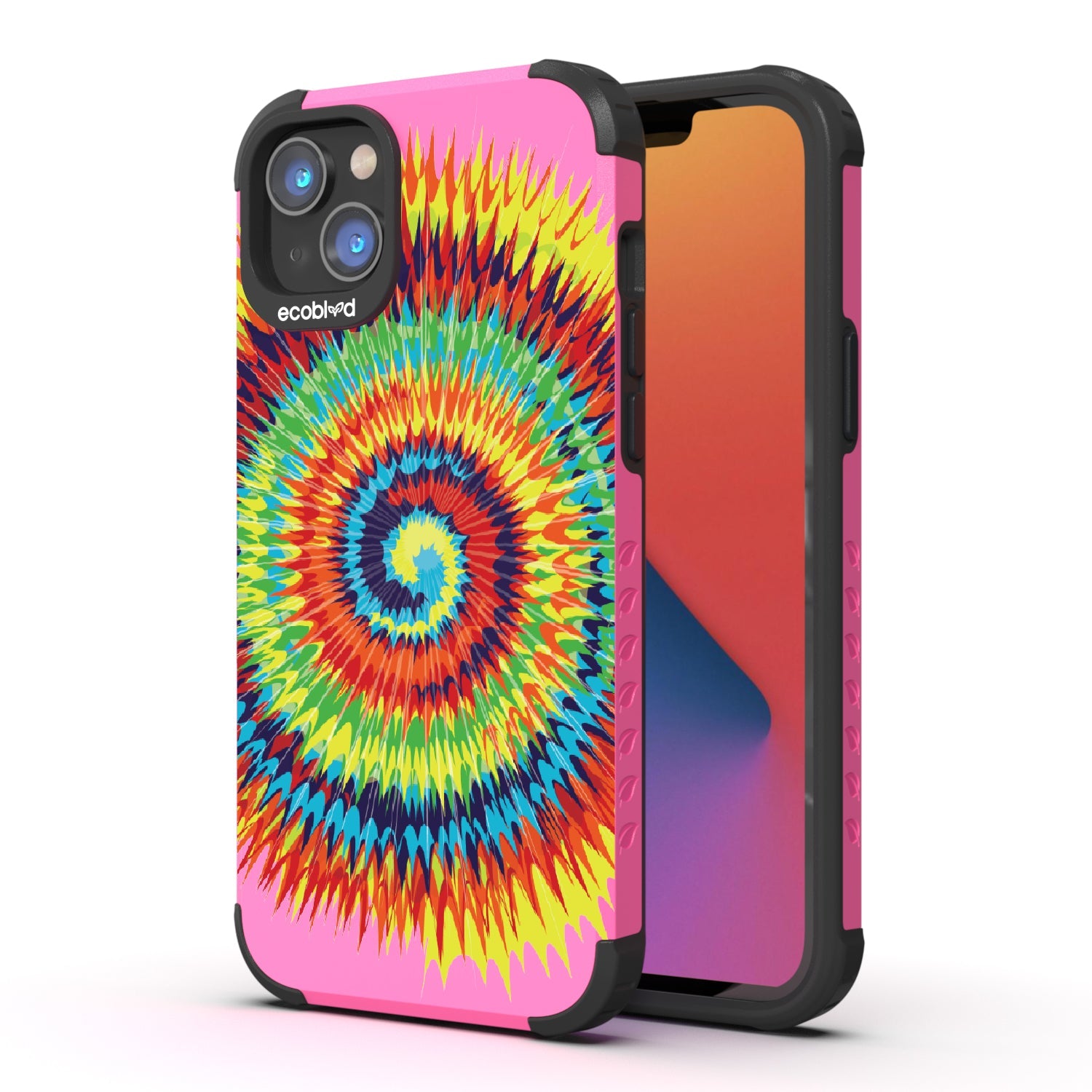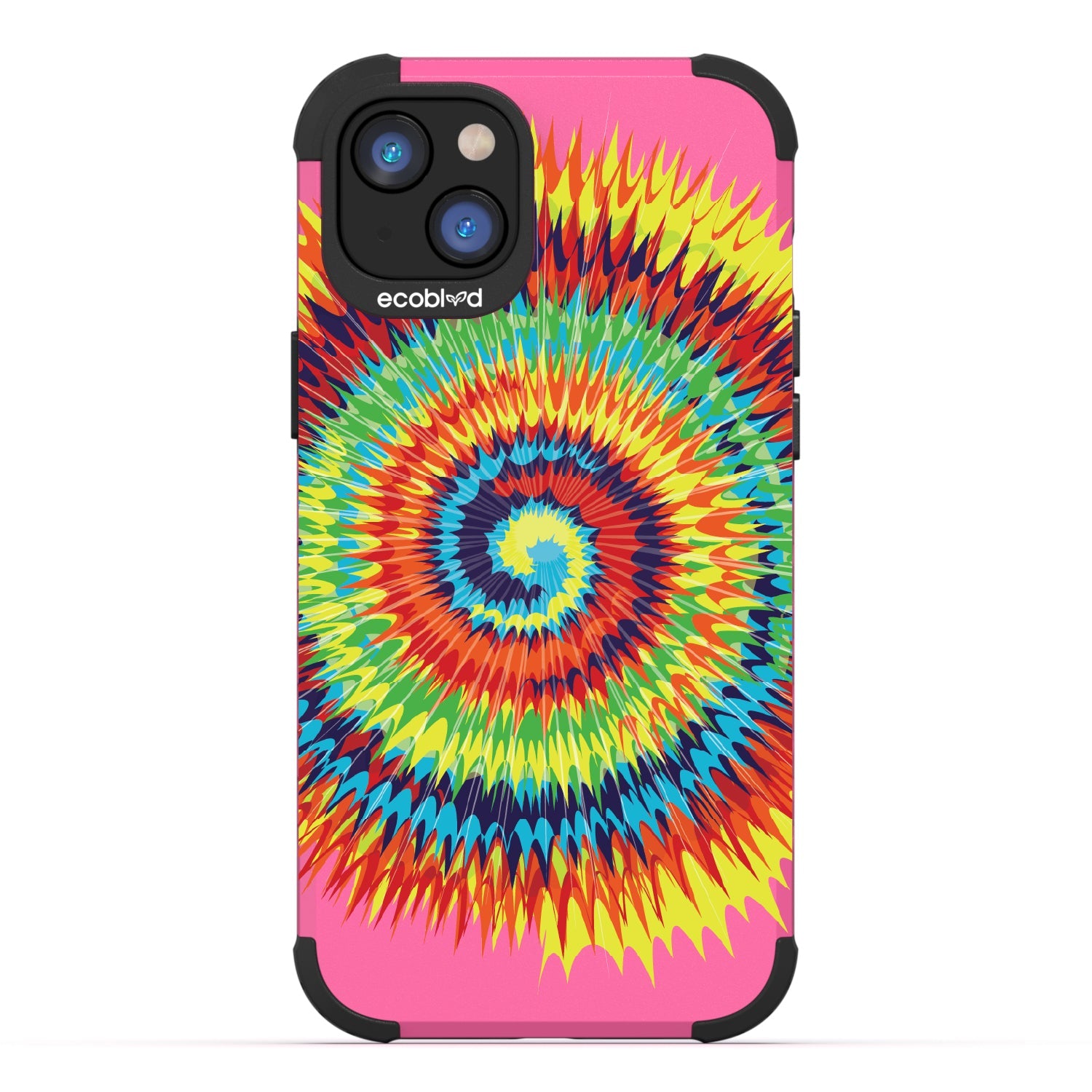 Bringing back the summer days of backyard BBQs, beach days, and fun in the sun, the Tie Dye design on our Mojave rugged and compostable iPhone 16e, iPhone 14, and iPhone 13 case has a retro rainbow swirl pattern giving your phone and style an eye-catching twist.