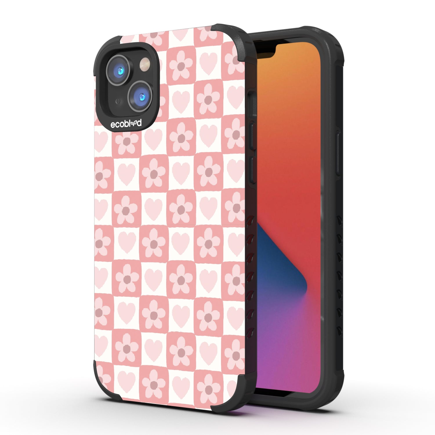 Play your style right and make every move count with the Pretty Moves design on our Mojave rugged and compostable iPhone 16e, iPhone 14, and iPhone 13 phone case. Adorned with hearts and flowers, this girly checker print pattern brings a sweet yet strategic flair to your phone. Each piece is a step towards fashion wins.