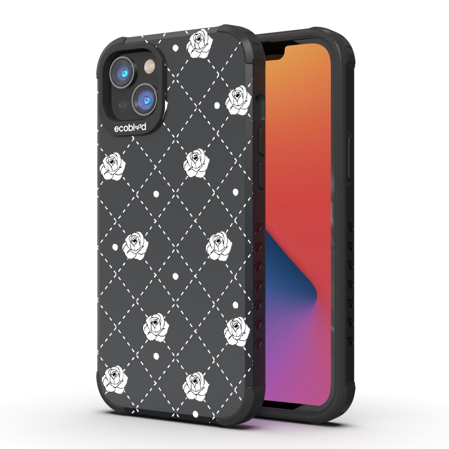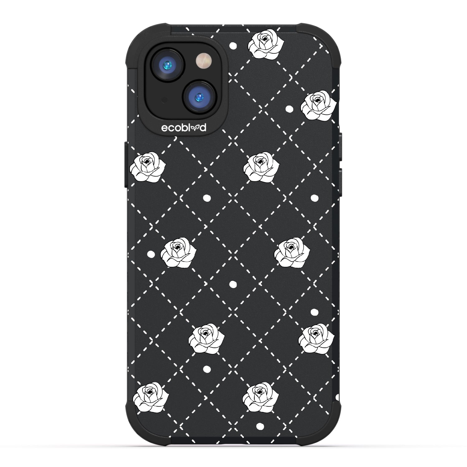 Roses are red, violets are blue, but with this Rose To The Occasion design on our Mojave rugged and compostable iPhone 16e, iPhone 14, and iPhone 13 case, your phone and style will be nothing but fresh and new with its white roses and polka dots on a stitched argyle background, adding that extra oomph to your style especially while on our Midnight Black colorway.