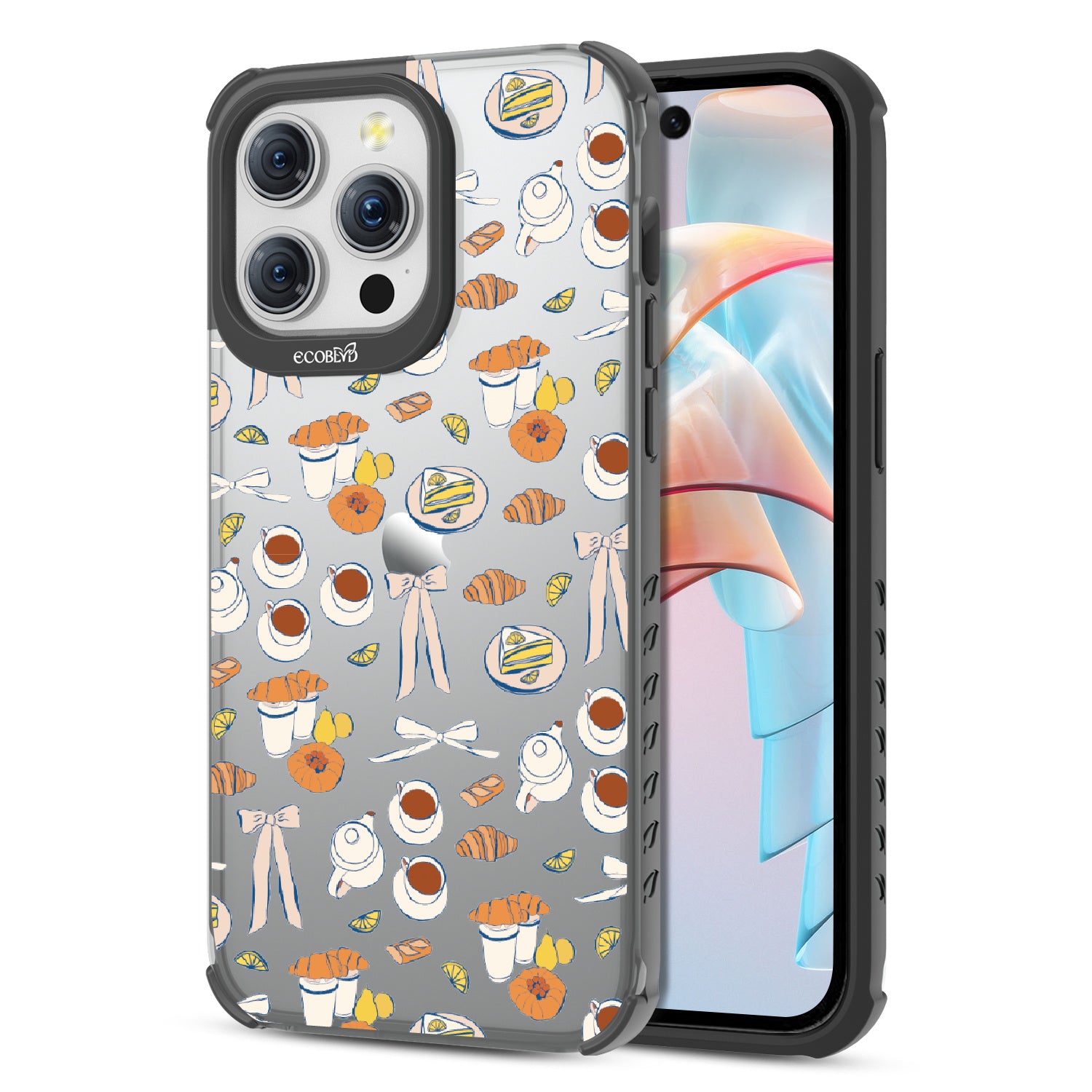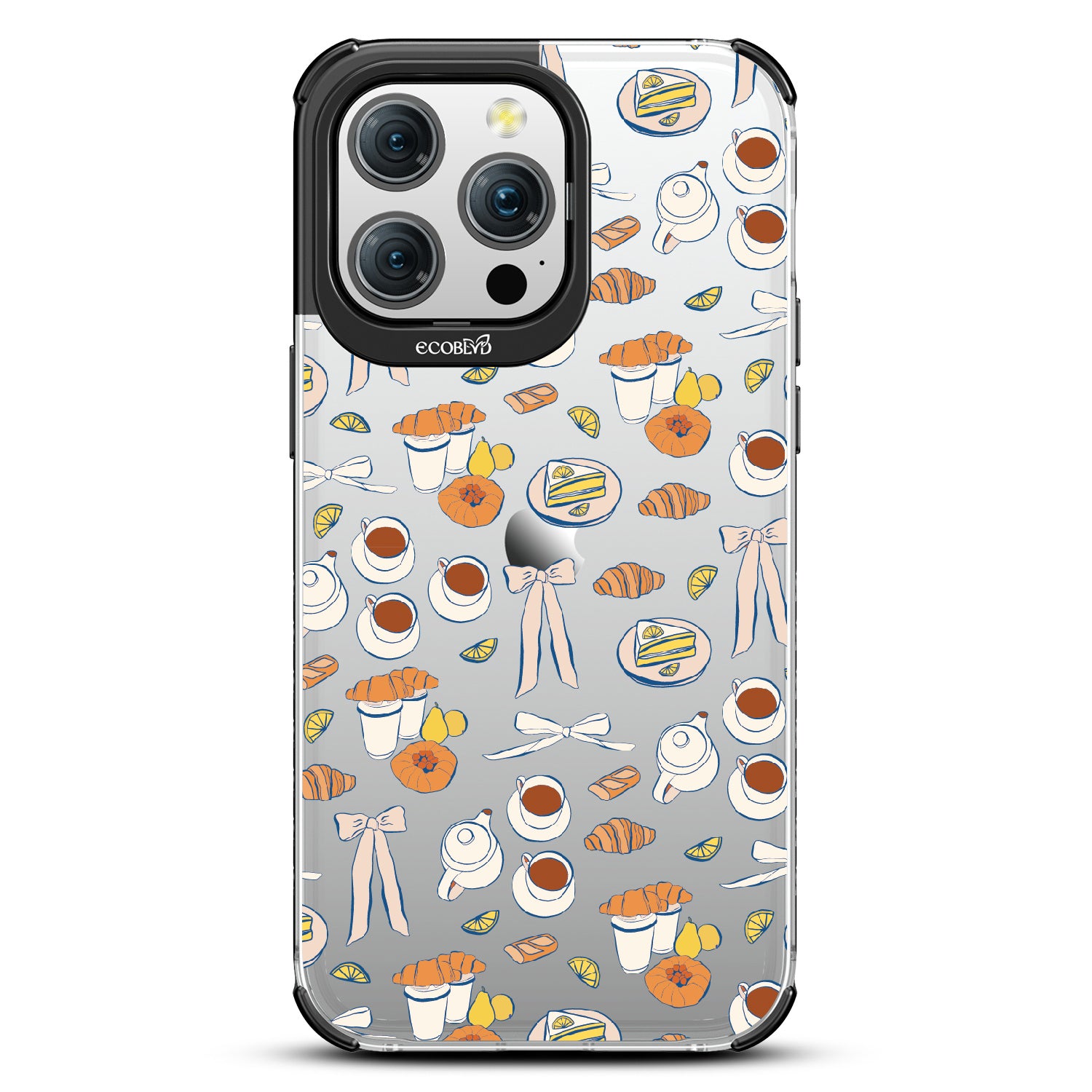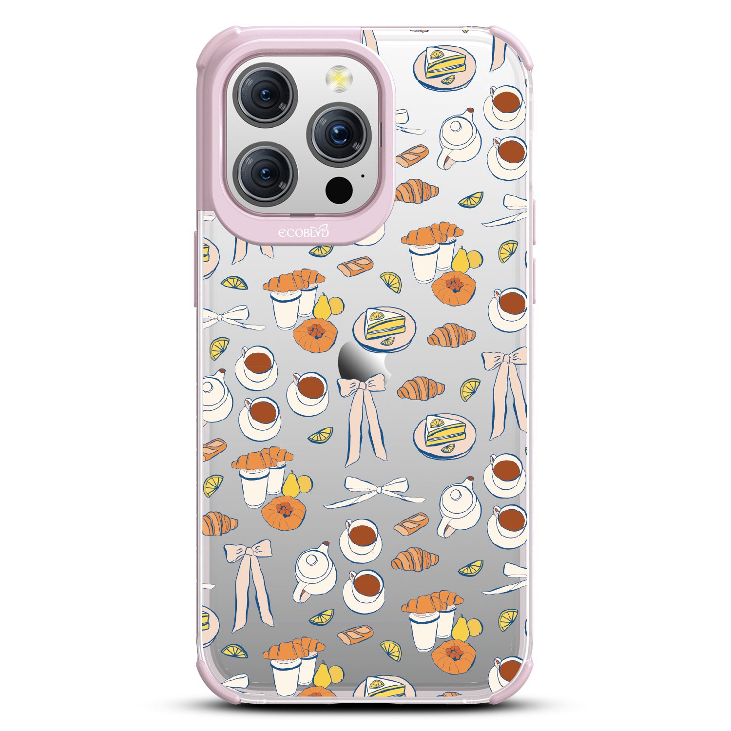 Tea time is the new happy hour. This design on our Laguna clear iPhone 15 Pro Max case combines whimsical teacups, dainty bows, and sweet pastel pastries in style as delightful as a perfect afternoon break. A tribute to making time for yourself with a touch of elegance.
