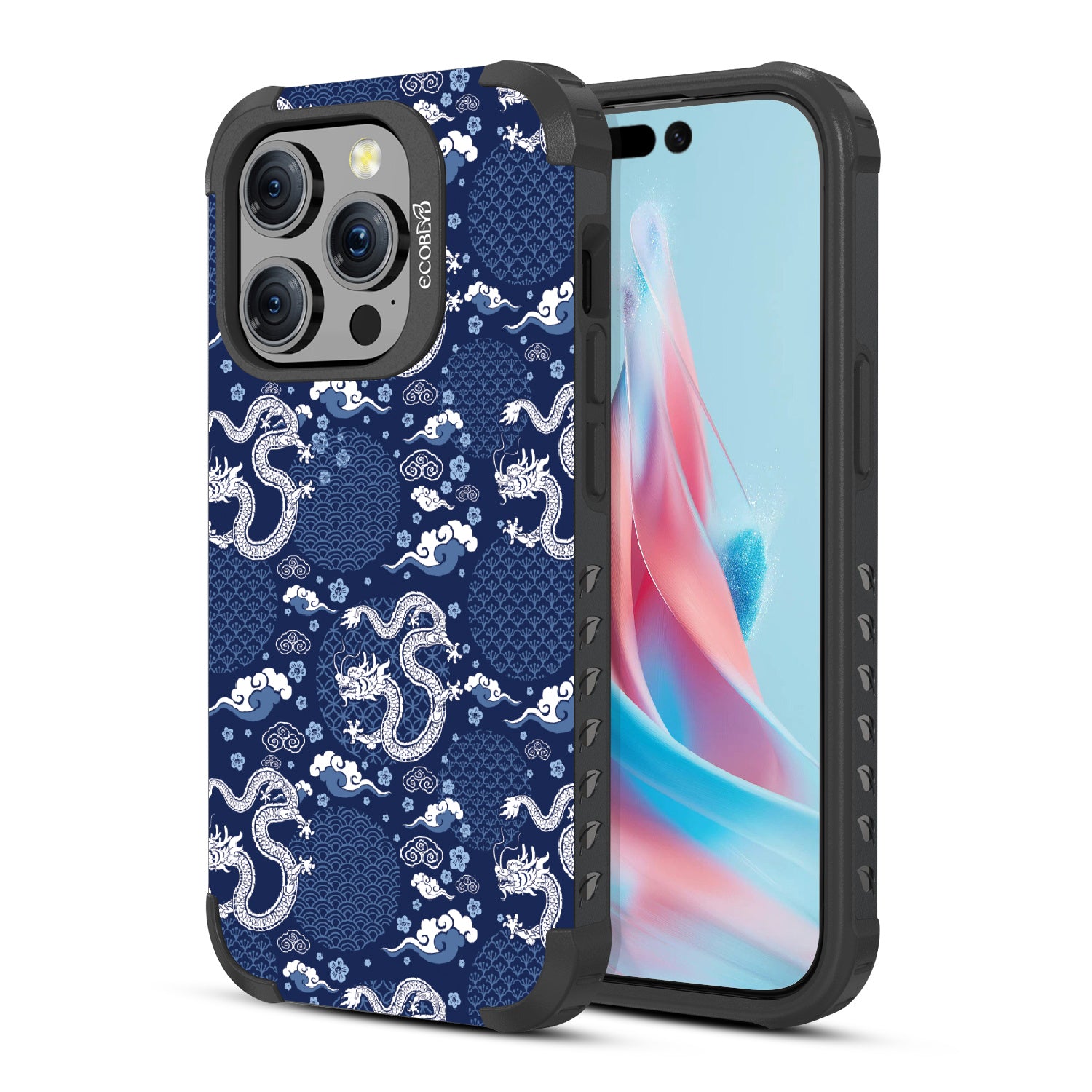 Step into the Dragon's Den design on our Mojave rugged and compostable iPhone 15 Pro MagSafe case, where the dragon's not just a myth but a guide to the pathway to prosperity. Against the blue backdrop and clouds, let your phone become a harbinger of good luck, a symbol of the mystical dance that Lunar New Year ushers in.