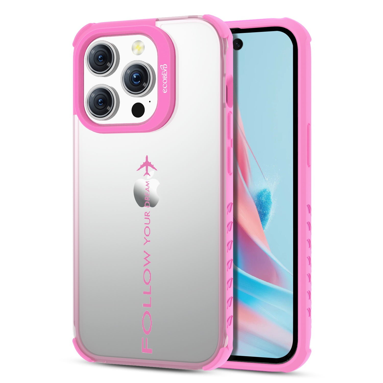 Let your aspirations take flight with the Follow Your Dreams design on our Laguna clear iPhone 15 Pro case. As the airplane streaks across the design, trailing empowering words behind it, envision yourself soaring to new heights and exploring the destinations of your dreams. Whether it's wandering through ancient ruins, lounging on tropical beaches, or marveling at breathtaking landscapes.