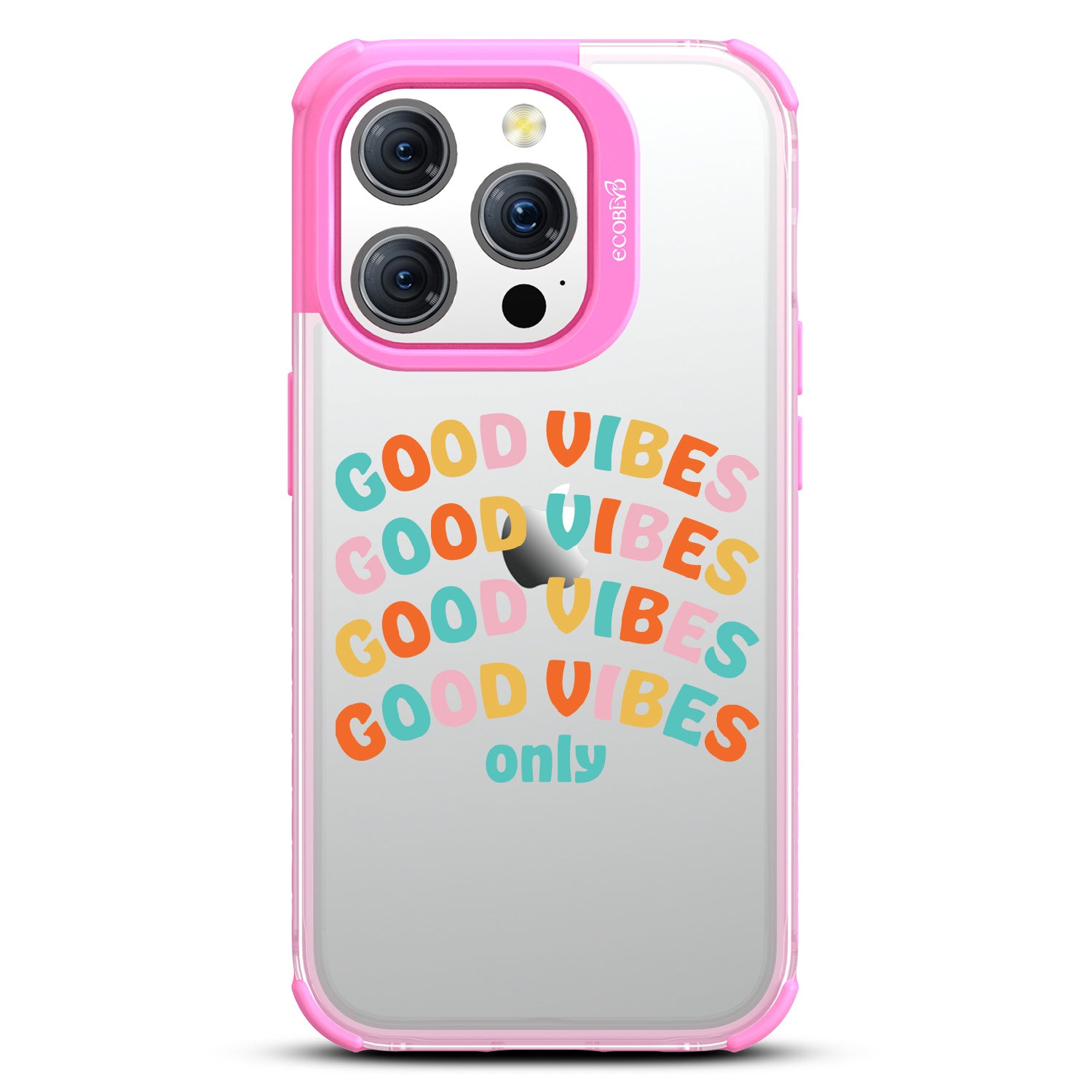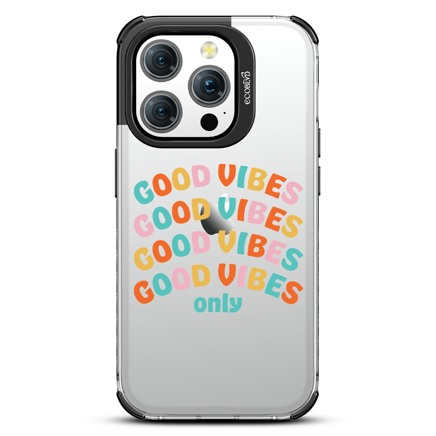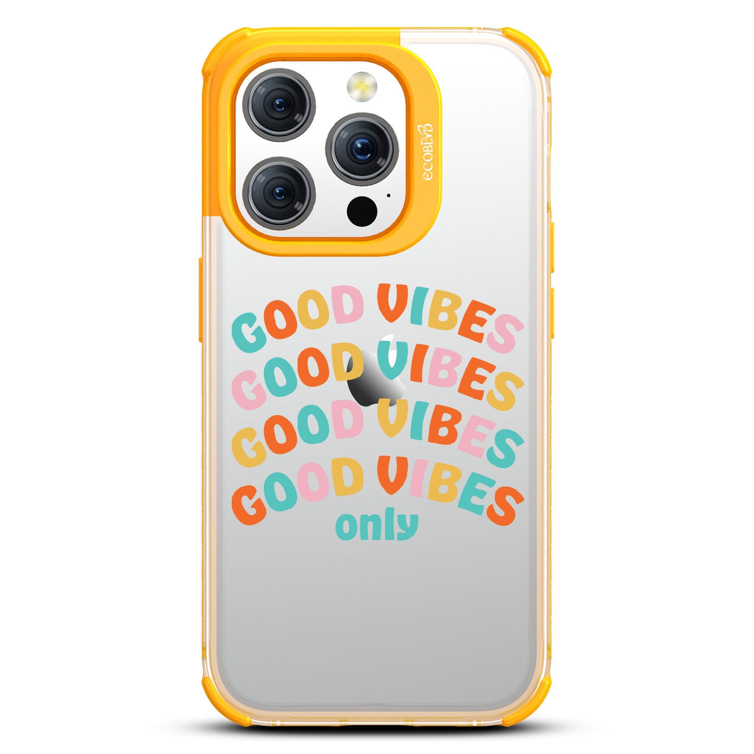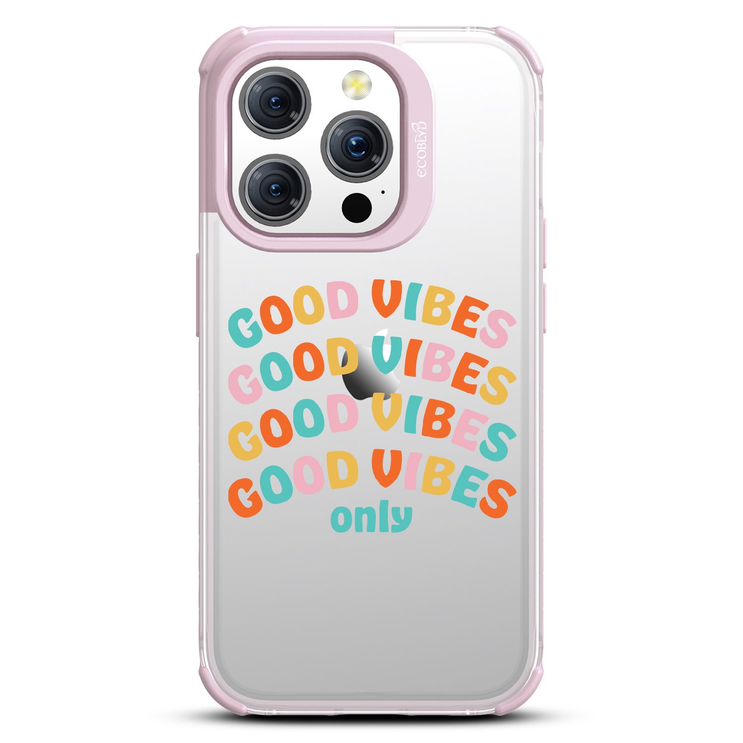 Say goodbye to negative energy and hello to your new mantra with the Good Vibes Only design on our Laguna clear iPhone 15 Pro case, which your phone from all things bad across five vibrant colors: Midnight Black, Cascade Blue, Pastel Lilac, Illuminating Yellow, and Wildflower Pink.