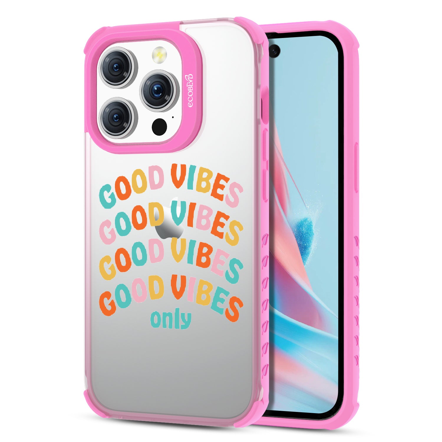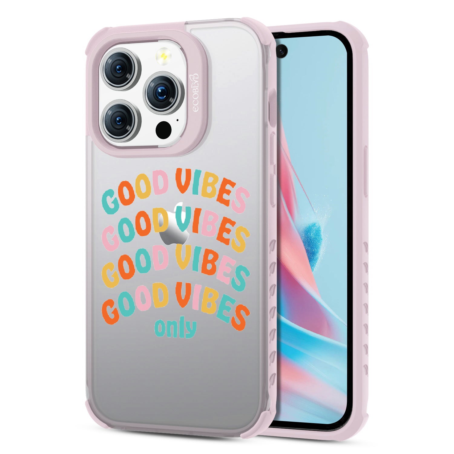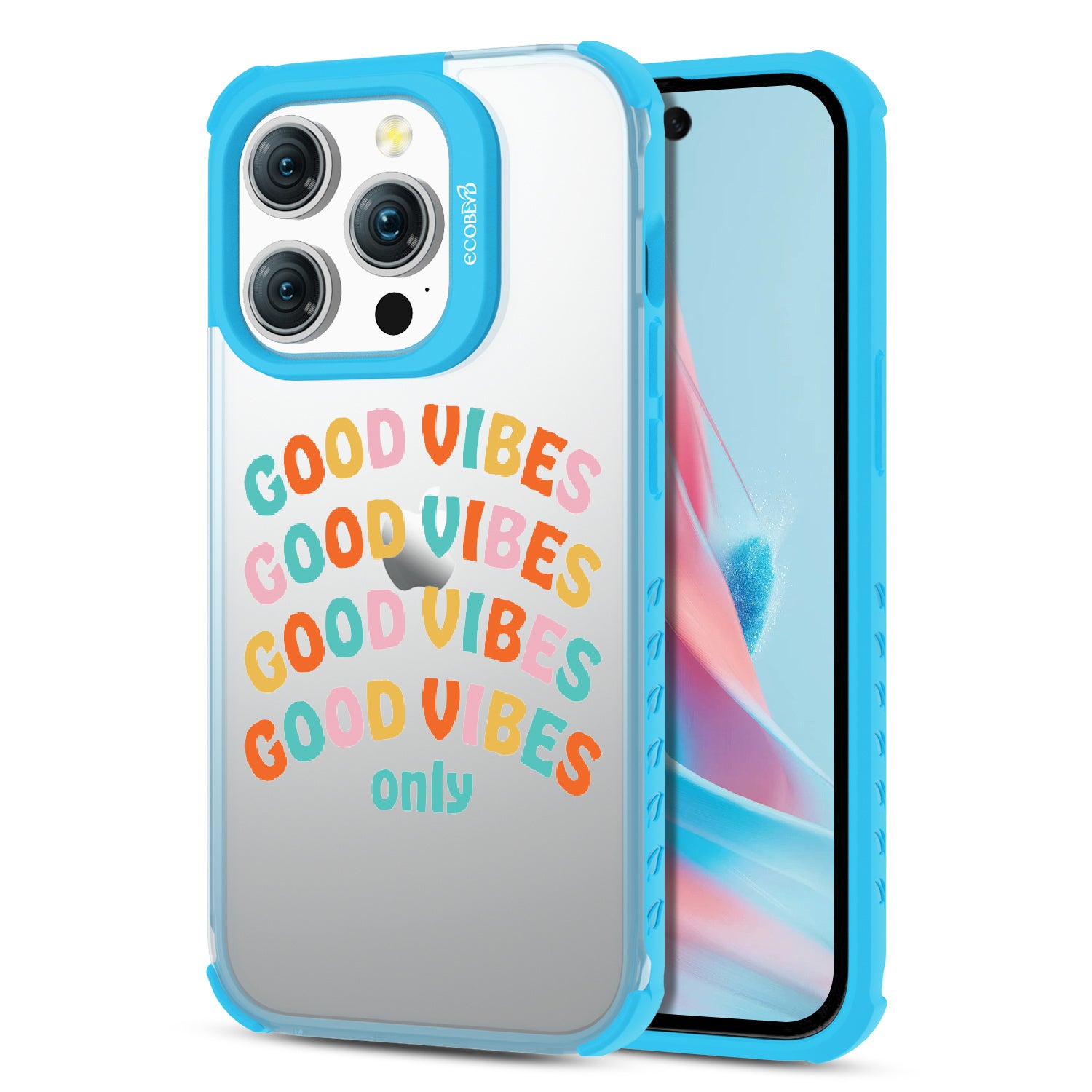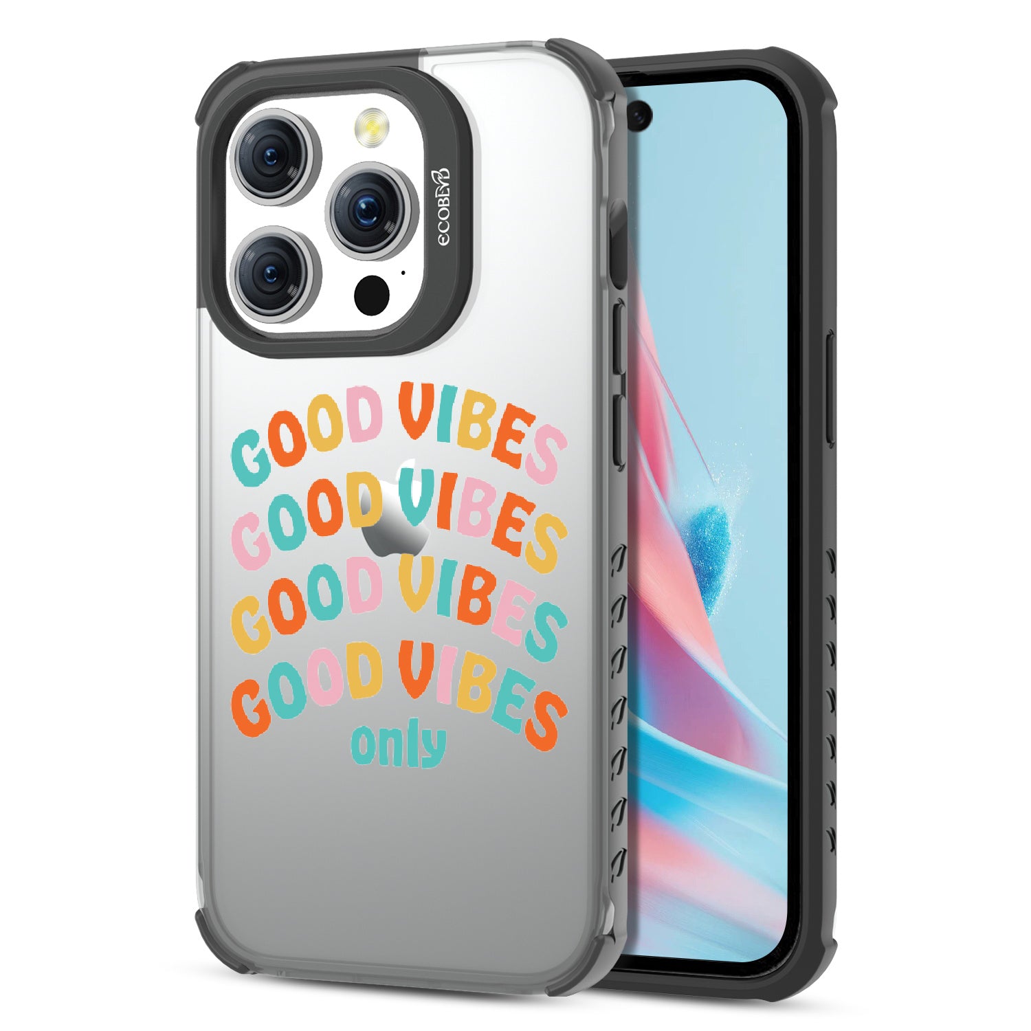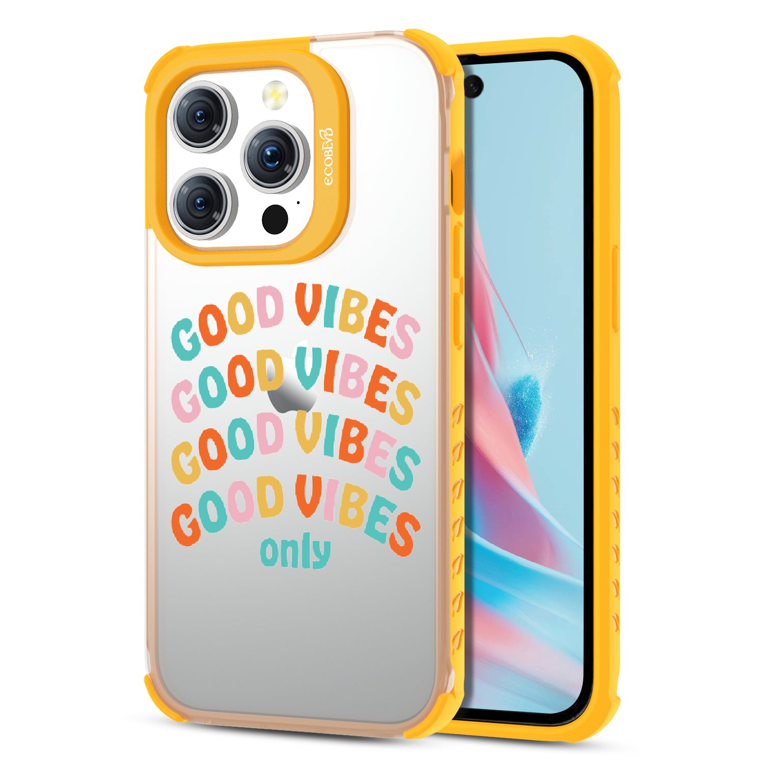 Say goodbye to negative energy and hello to your new mantra with the Good Vibes Only design on our Laguna clear iPhone 15 Pro case, which your phone from all things bad across five vibrant colors: Midnight Black, Cascade Blue, Pastel Lilac, Illuminating Yellow, and Wildflower Pink.