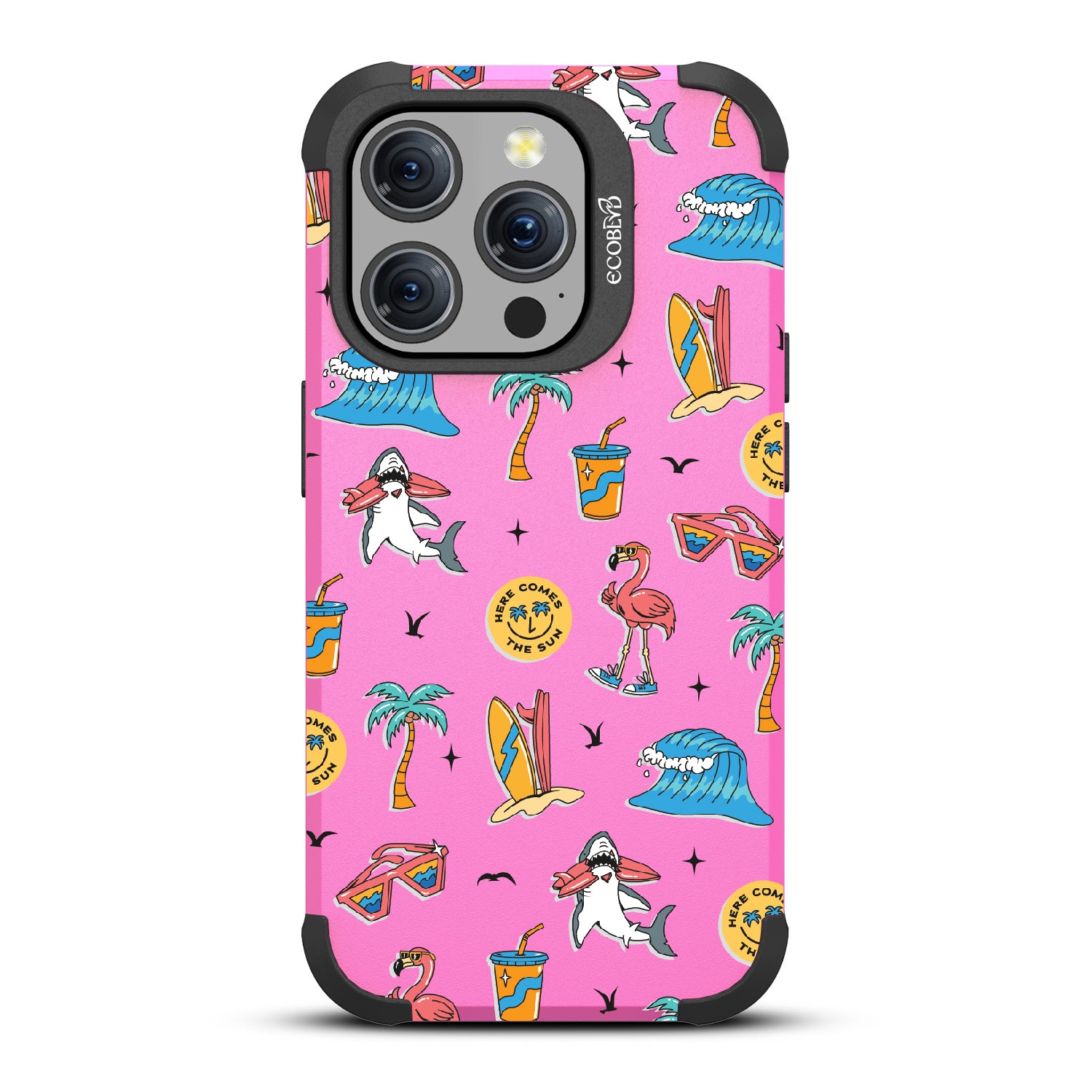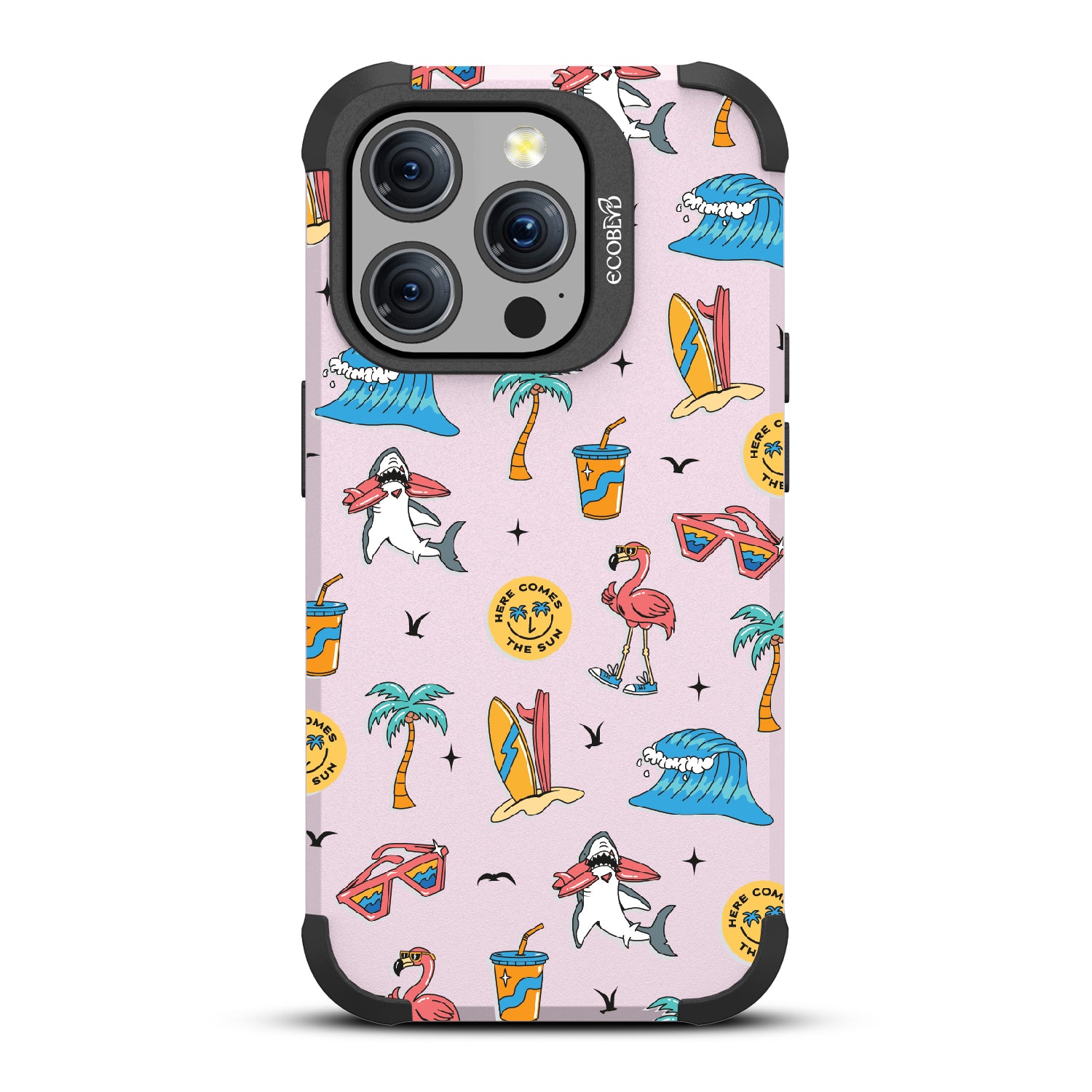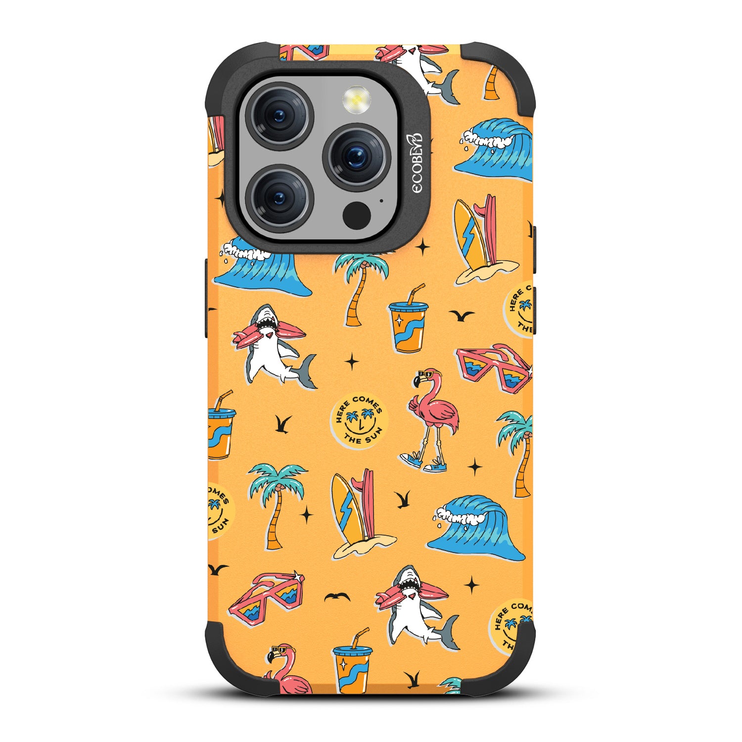 Slip on your flip-flops, grab your shades, and let the Here Comes The Sun design on our Mojave rugged and compostable iPhone 15 Pro phone case complete your sun-soaked style. From sunrise to sunset, it brightens your world, just like the summer sun. Here comes the fun, so make sure your phone shines wherever you roam. Available in all five colorways: Midnight Black, Cascade Blue, Wildflower Pink, Illuminating Yellow, and the exclusive Pastel Lilac!