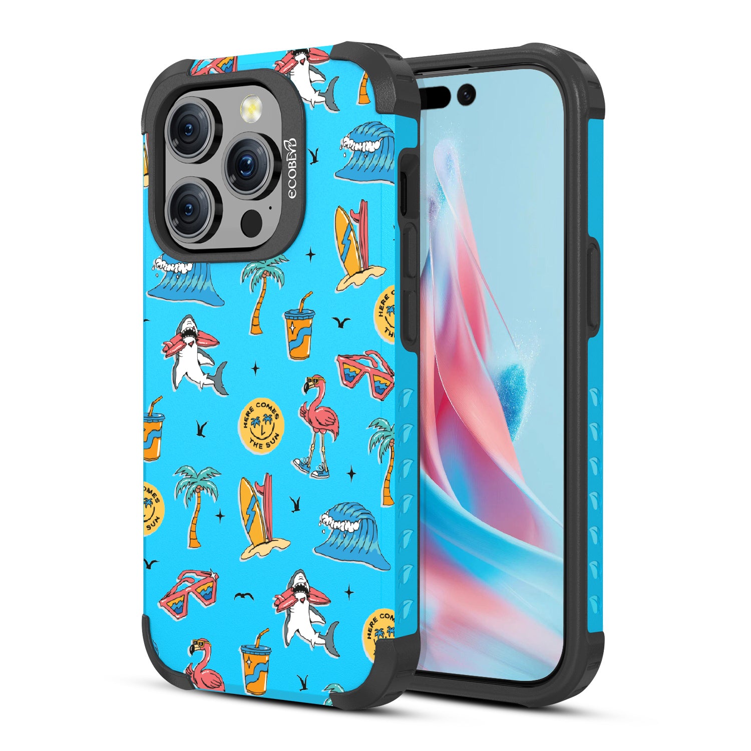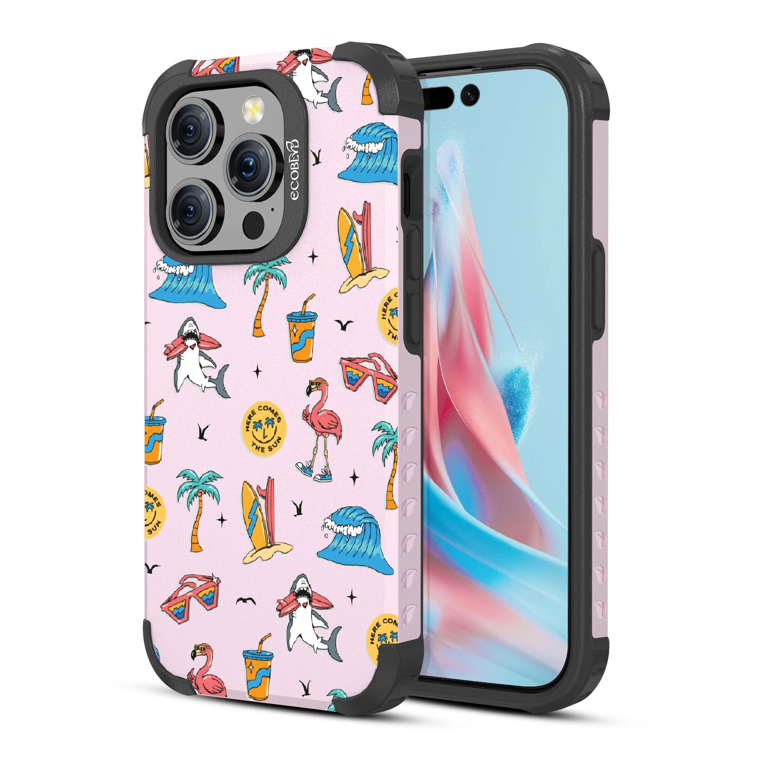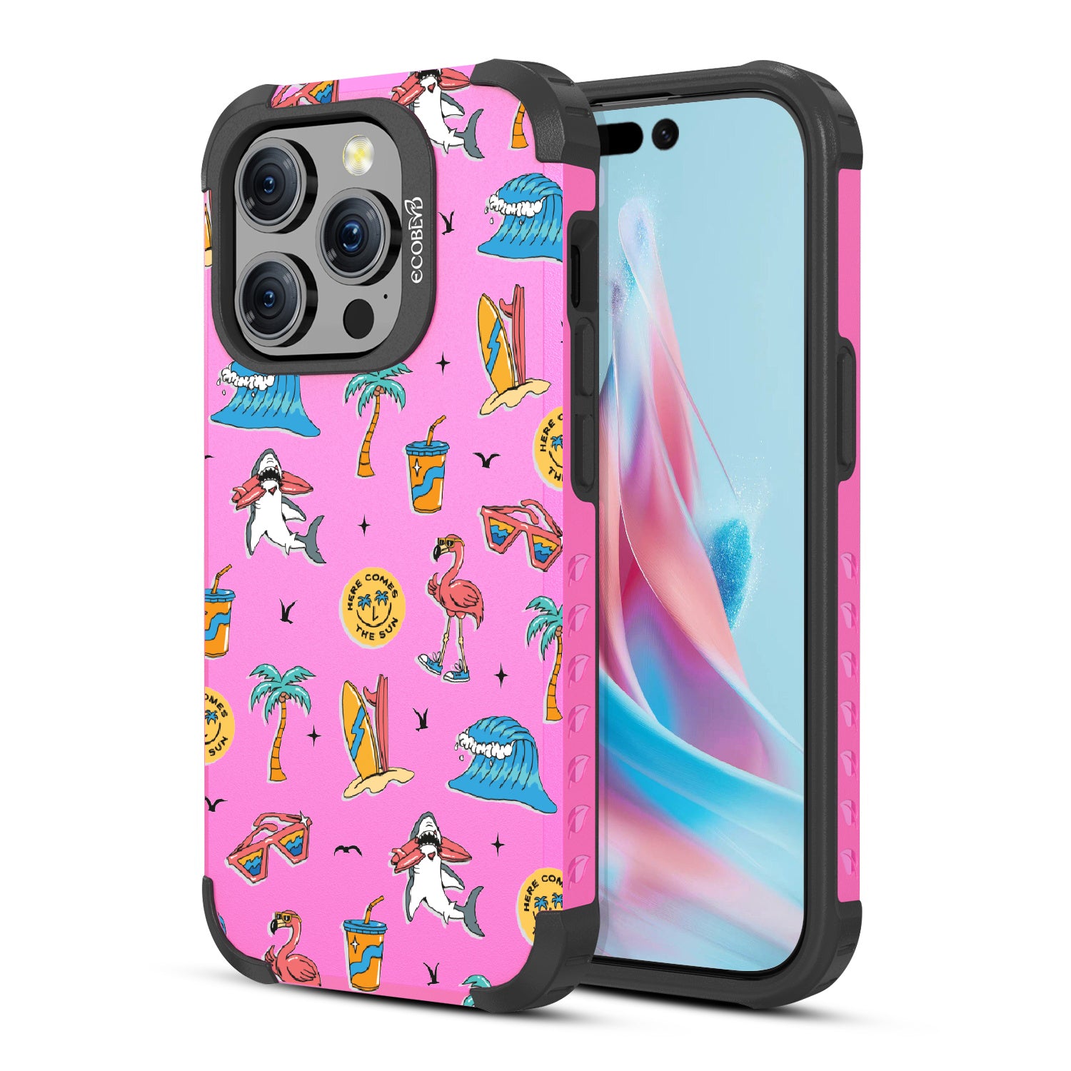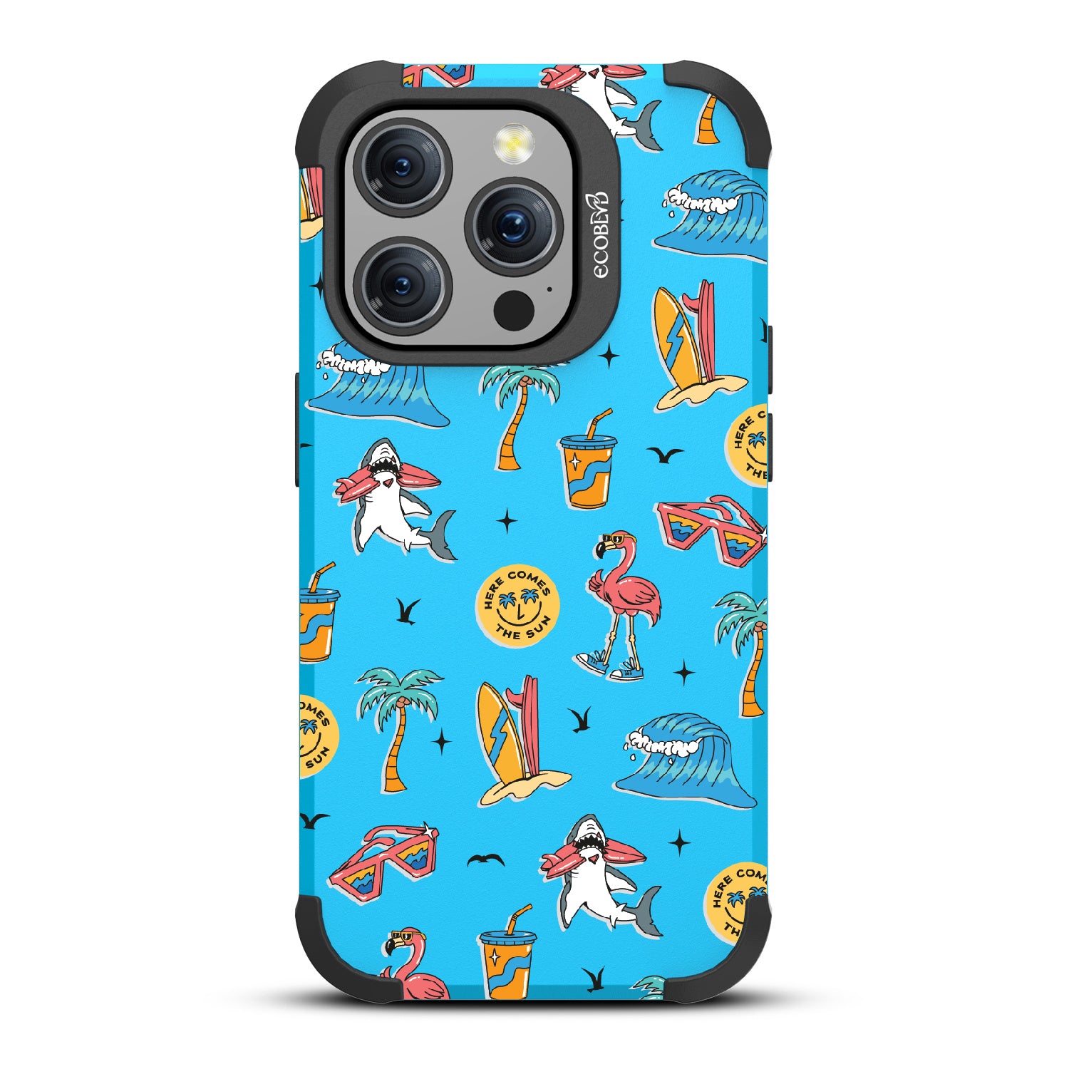 Slip on your flip-flops, grab your shades, and let the Here Comes The Sun design on our Mojave rugged and compostable iPhone 15 Pro phone case complete your sun-soaked style. From sunrise to sunset, it brightens your world, just like the summer sun. Here comes the fun, so make sure your phone shines wherever you roam. Available in all five colorways: Midnight Black, Cascade Blue, Wildflower Pink, Illuminating Yellow, and the exclusive Pastel Lilac!