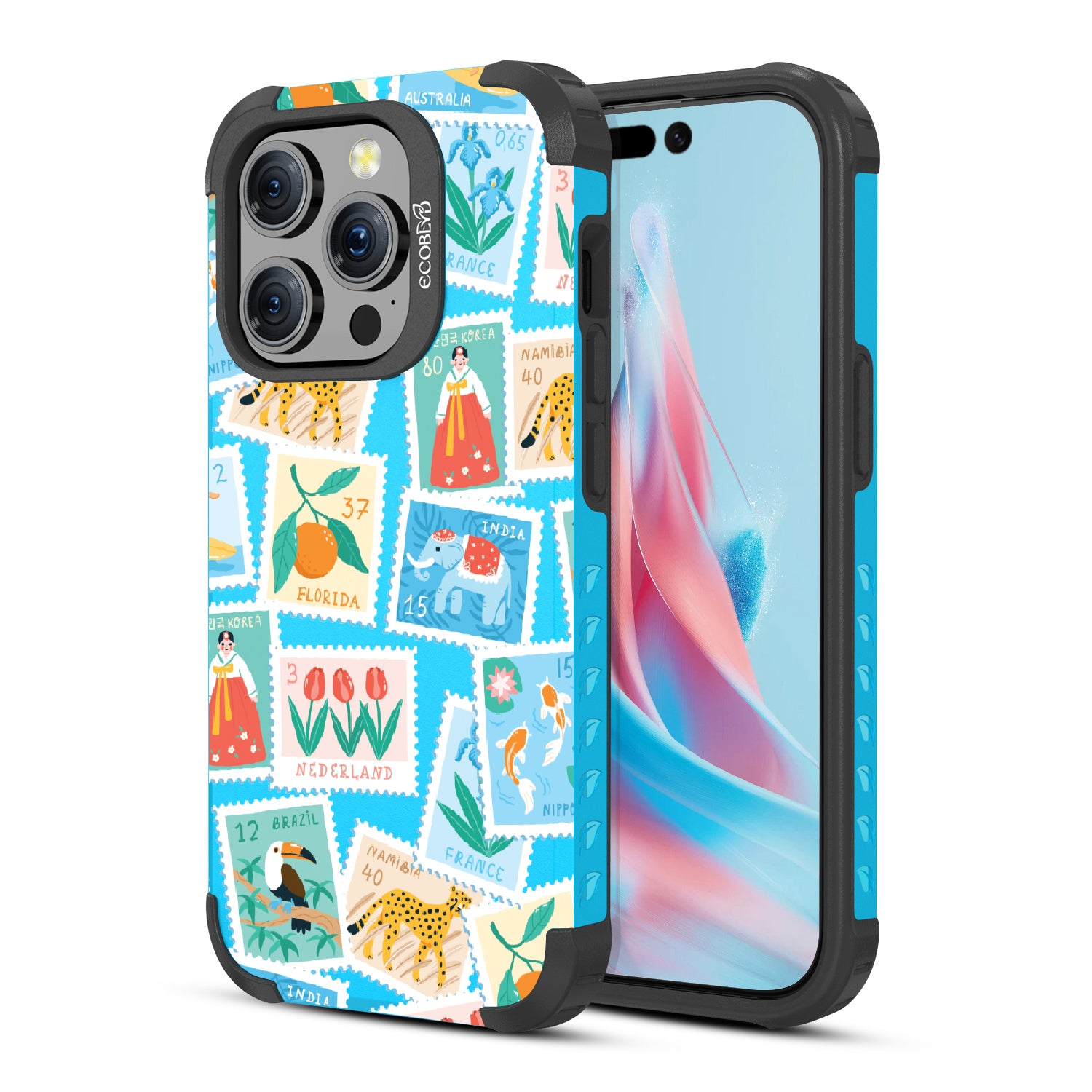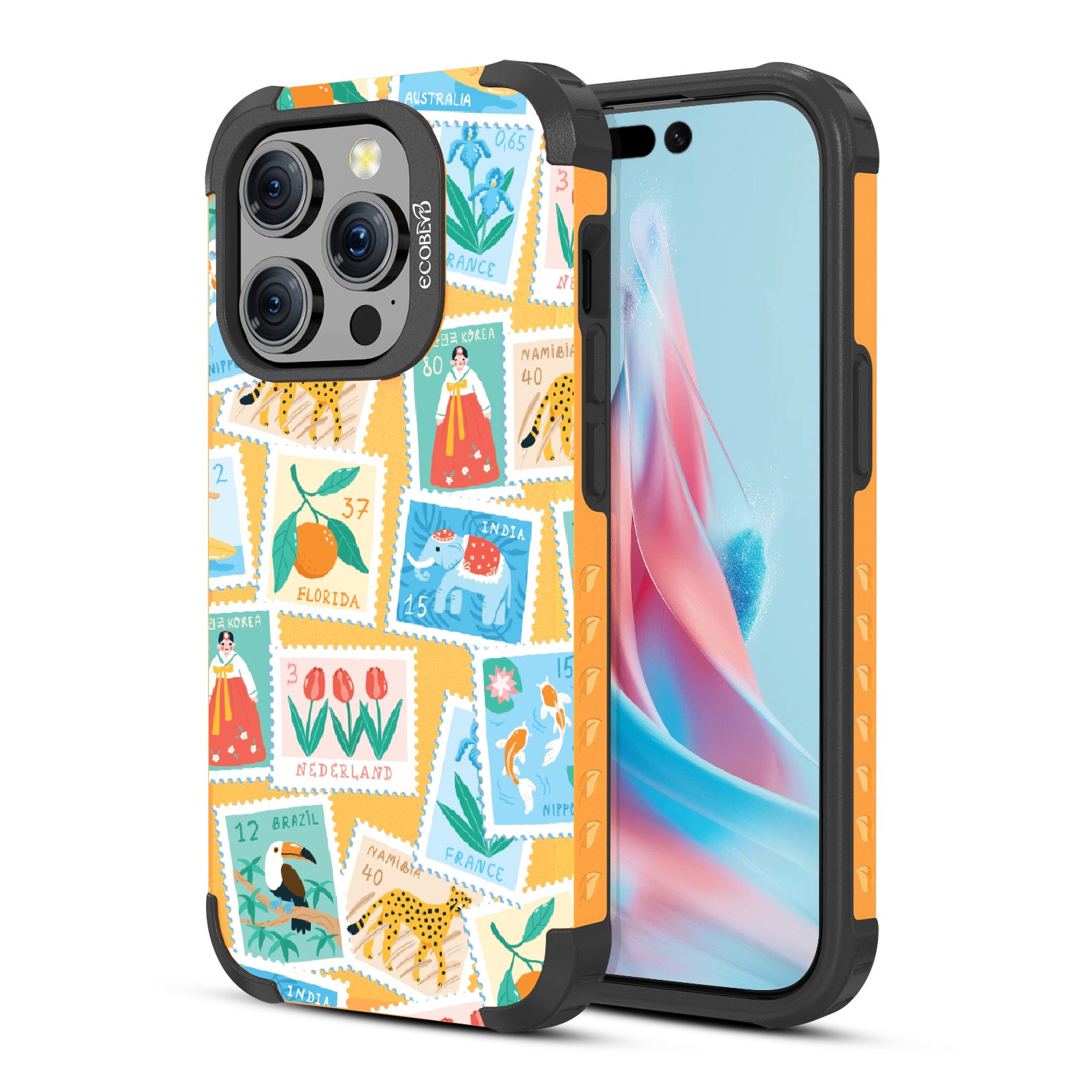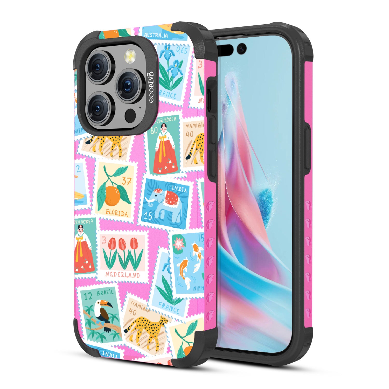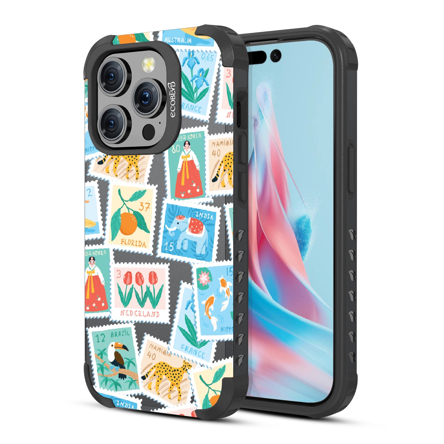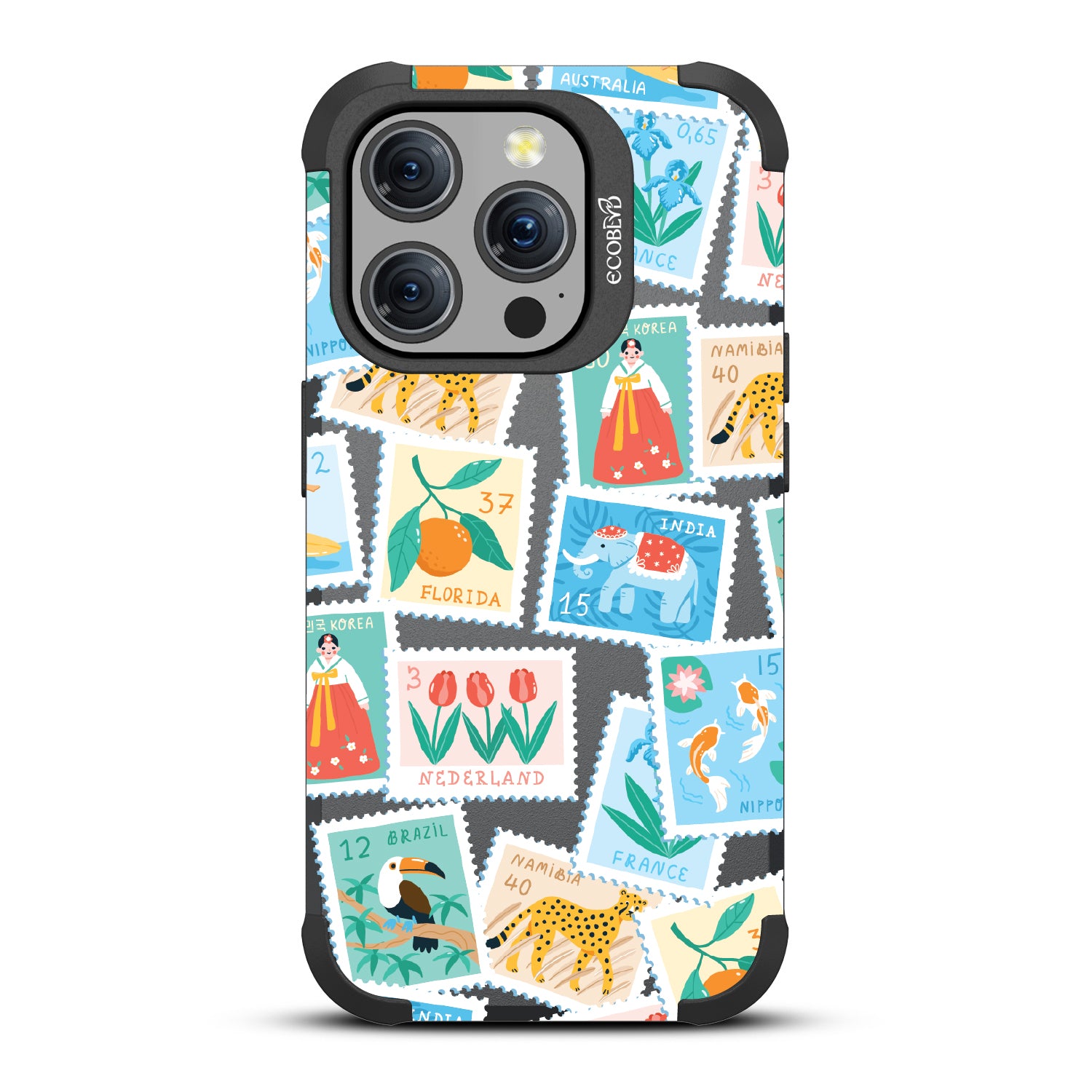 Collect a world of memories with the Wish You Were Here design on our Mojave rugged iPhone 15 Pro MagSafe case, a patchwork of postcard-perfect stamps from Florida to France. Each stamp is a window into a new world, an invitation to gather stories from far and wide. Decorate your phone with this mosaic of travel logs, and let it be a colorful collage of all the places that whisper, 'Wish you were here.'