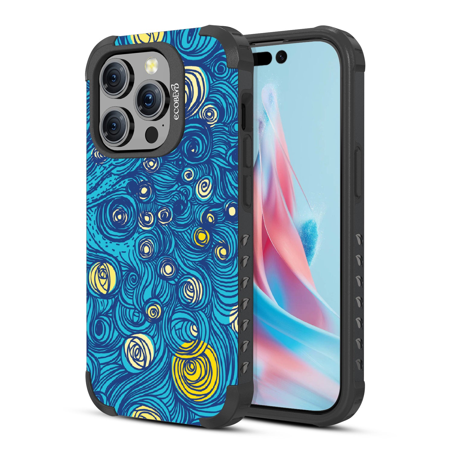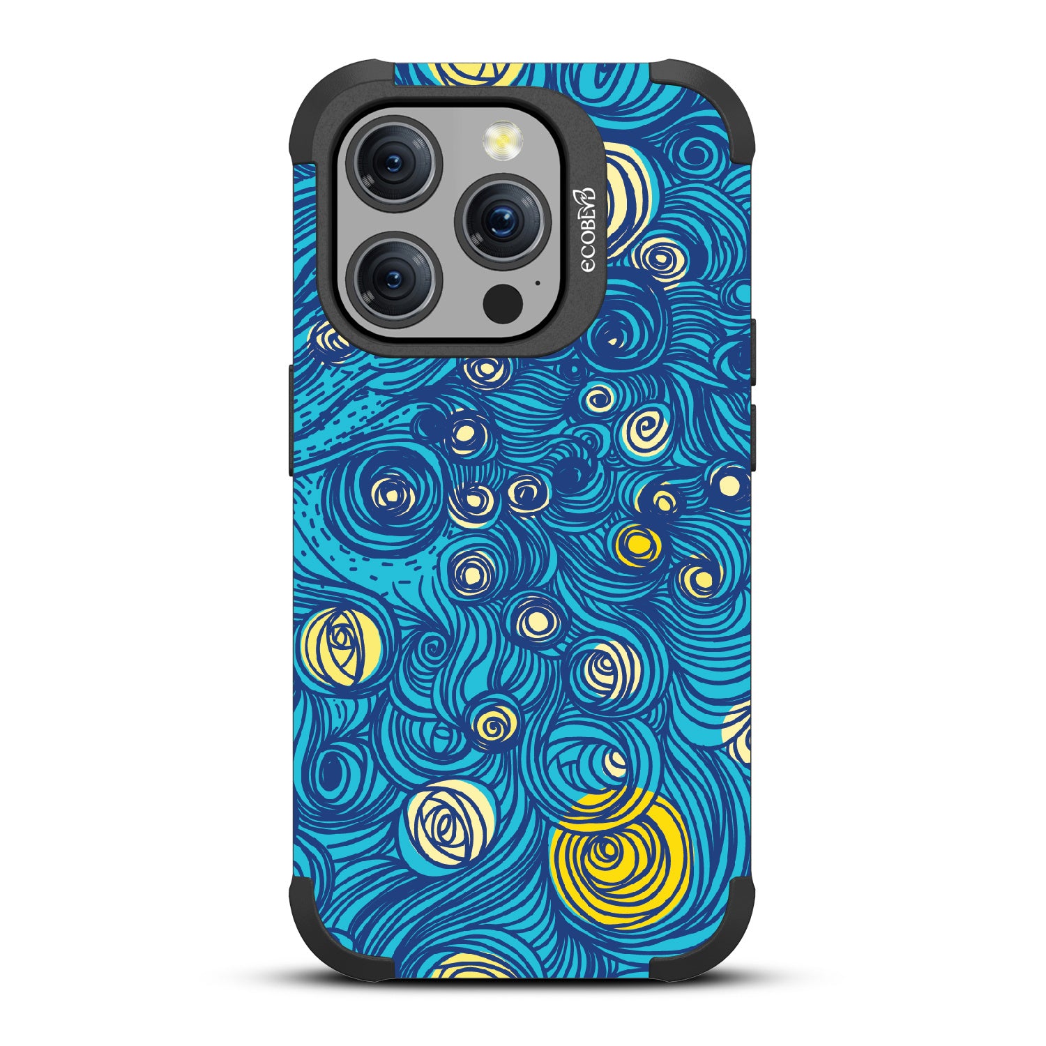 If you're looking for a style that goes beyond making a good impression, the Let It Gogh design on our Mojave rugged and compostable iPhone 15 Pro MagSafe case will transform your phone into an iconic Starry Night canvas of swirls that will add an element of fine art. Available on our bold Midnight Black colorway.