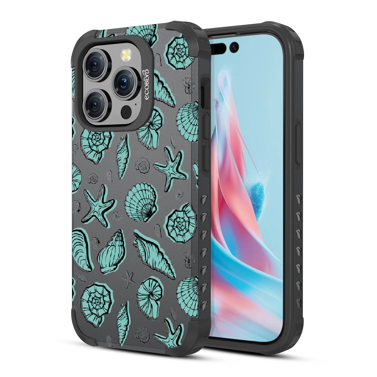 Take a leisurely stroll along the sandy shore with the Seashells Seashore design on our Mojave rugged and compostable iPhone 15 Pro case, where hidden treasures await your discovery! Each shell holds a secret, whispering tales of the ocean's mysteries, while the starfish beckon you to discover the wonders of the deep. Explore nature's little miracles with your phone as a treasure map. Available on our Midnight Black colorway.