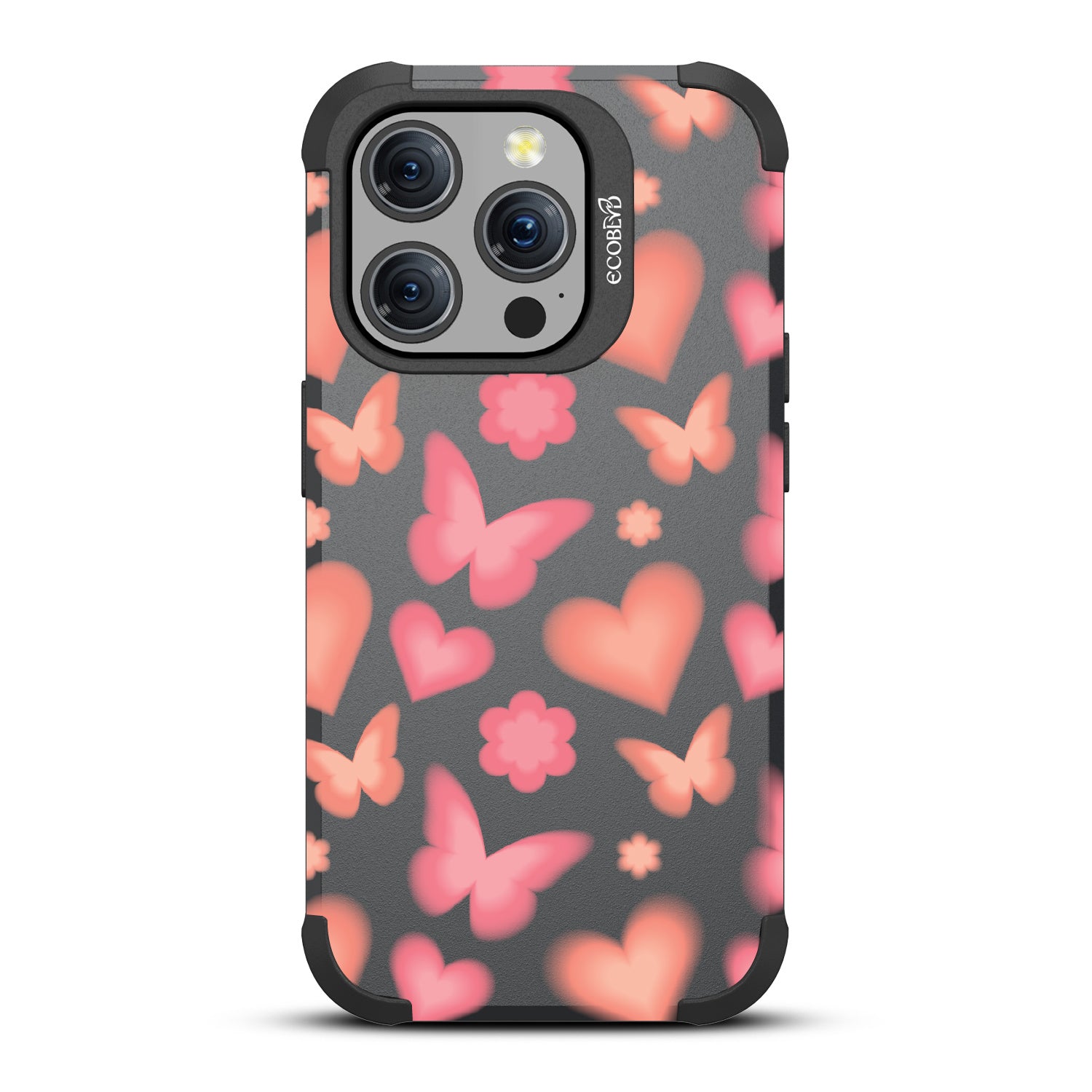 Let your heart flutter with the Spring Fling design on our Mojave rugged iPhone 15 Pro MagSafe case, where neon butterflies and hearts spark romance in the air. This vibrant design combines the electrifying energy of neon with the delicate beauty of butterflies and hearts, embodying the essence of a spring romance. Add a dash of love and vibrancy to your phone, letting the Spring Fling case be a beacon of joy and connection.