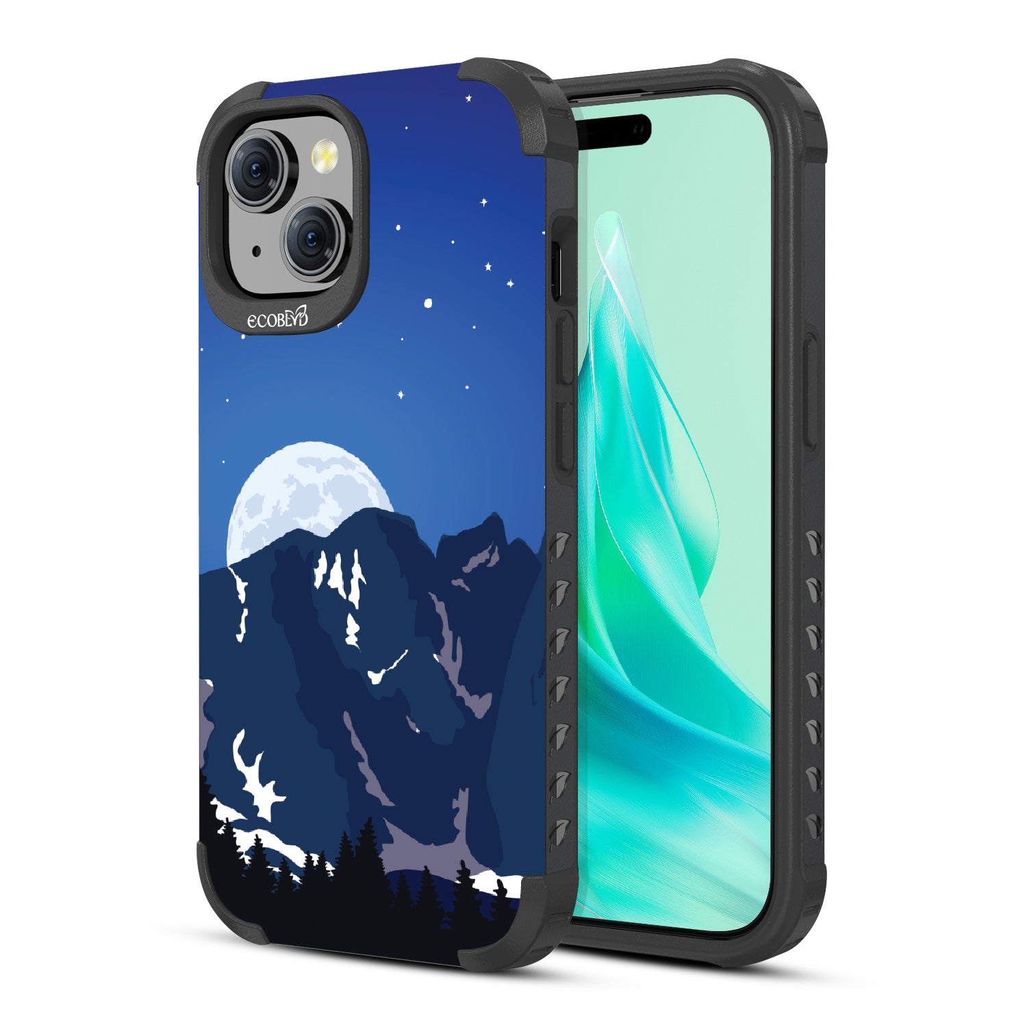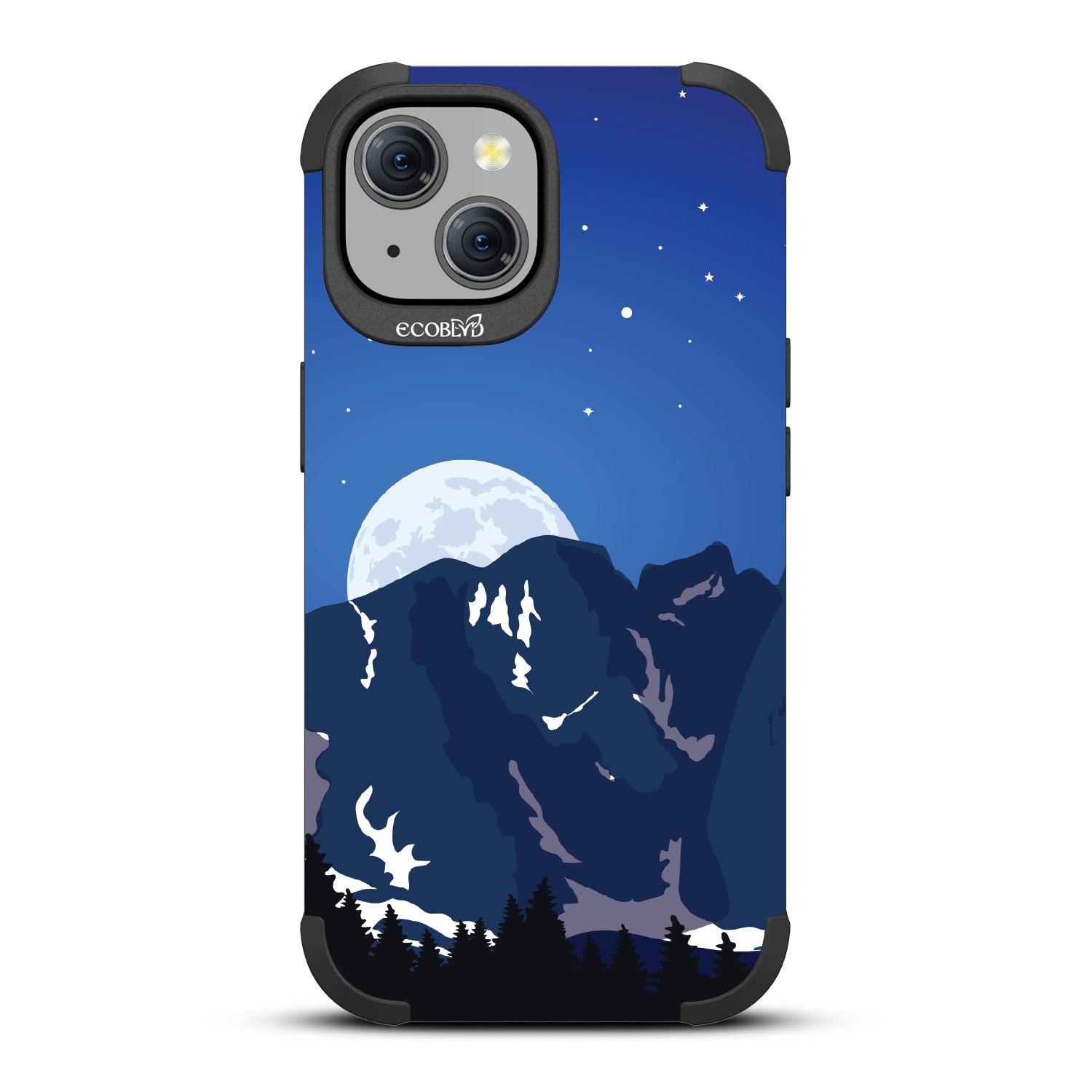 Bask in the ethereal glow of our Alpine Moon design on our Mojave rugged iPhone 15 MagSafe case, where the moon hangs like a luminous pearl against the velvet canvas of the night sky, casting its soft radiance upon the rugged terrain below.