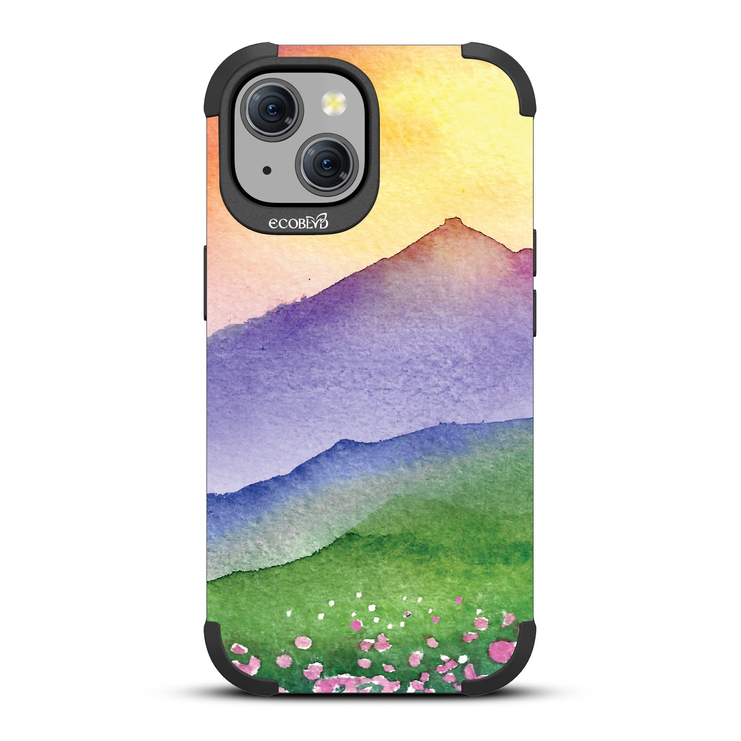 End your day on a high note with the Summit Sunset design on our Mojave rugged iPhone 15 MagSafe case, where the glow of sunset bathes the mountains in soft light. This case captures that perfect moment of day's end in the highlands, reminding us of nature's spectacular farewell to the sun. It's the warm glow of the day's end, right on your phone.