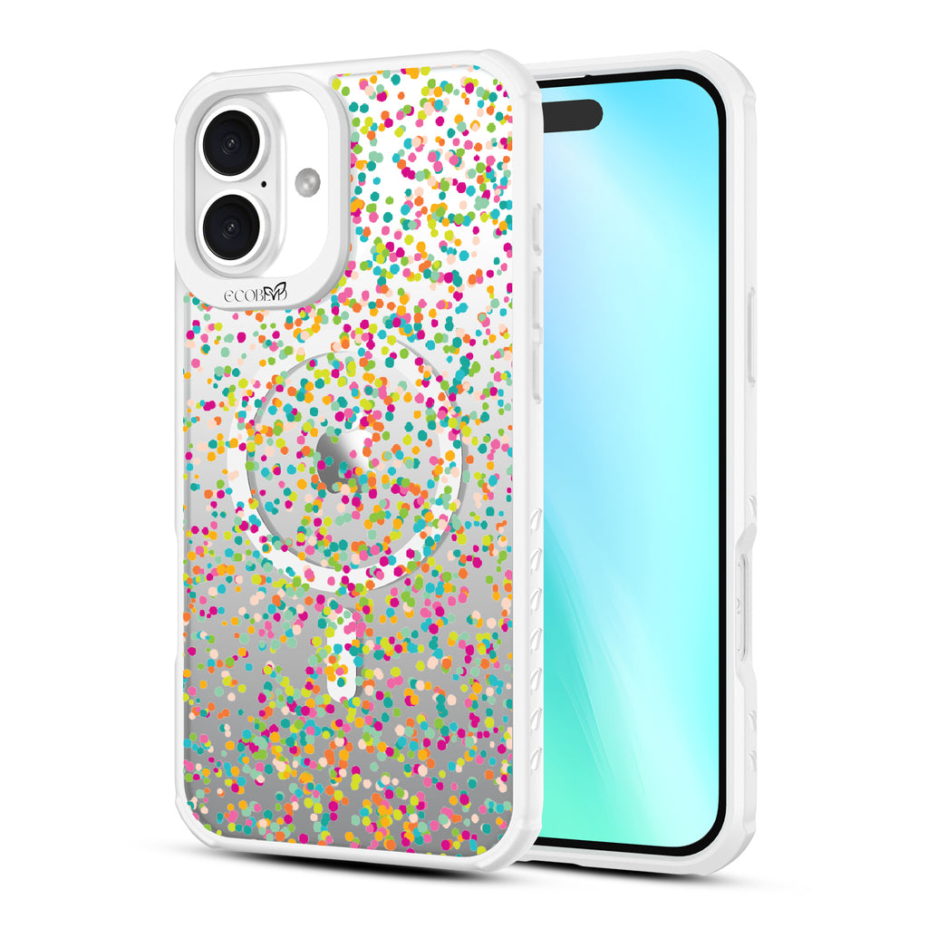 Throw a party every day with the Confetti design! Bursting with a vibrant mix of colors, this playful design on the Revive clear iPhone 16 Plus phone case brings the celebration to your phone. Let your device join the fun with a case that adds a splash of excitement to your style.