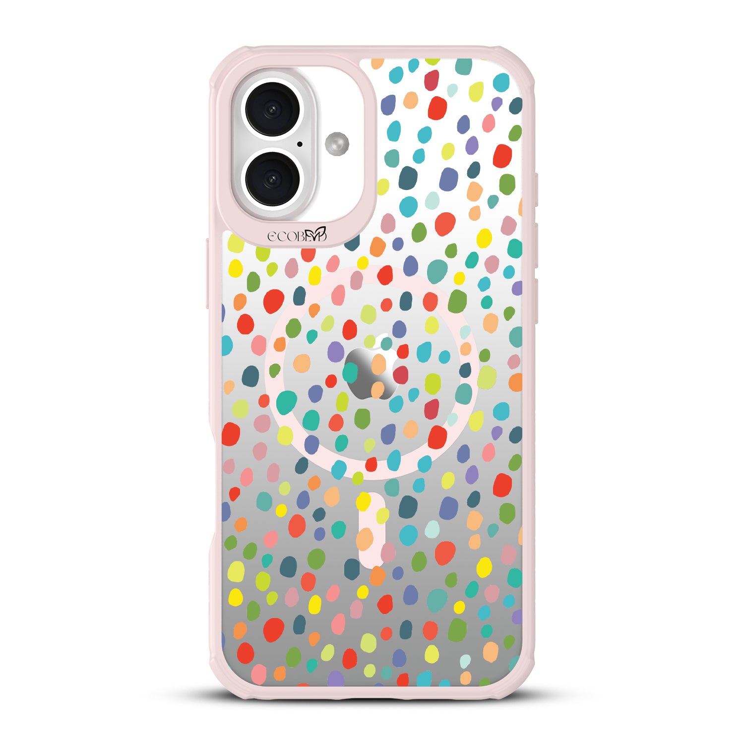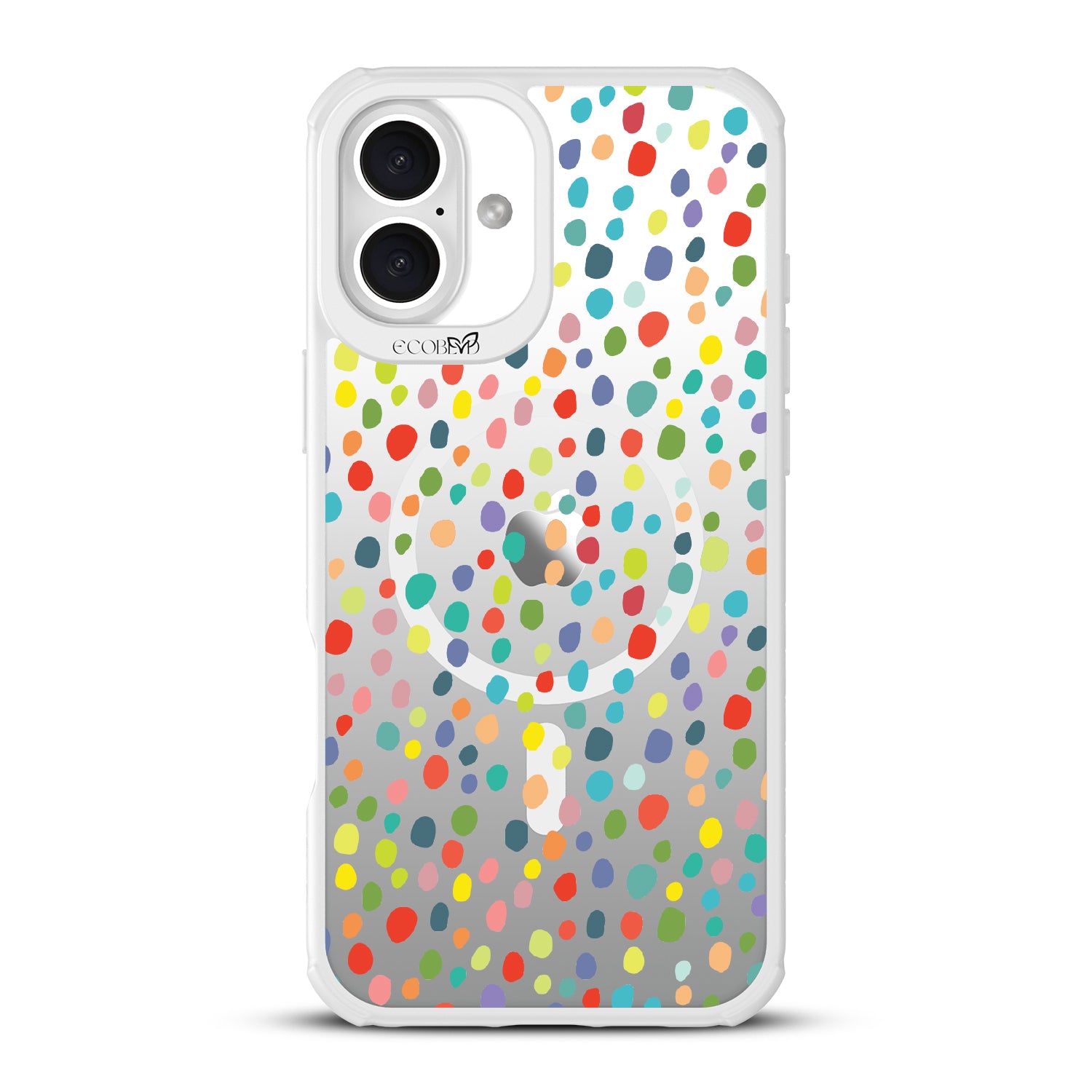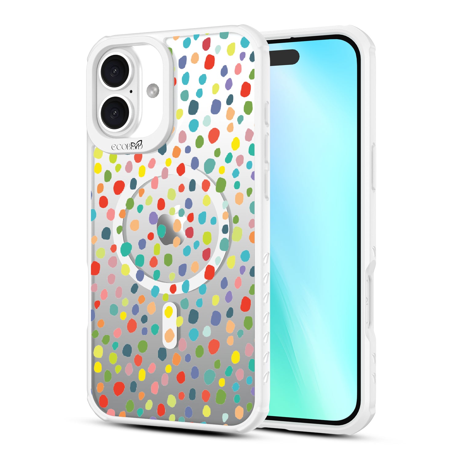 Spot the Difference—because details matter. A captivating mix of bright, cheerful dots creates a look on the Revive clear iPhone 16 Plus phone case that changes with every angle. Whether you're noticing new colors or spotting a difference in placement, this case brings endless visual fun to your phone while keeping it safe.