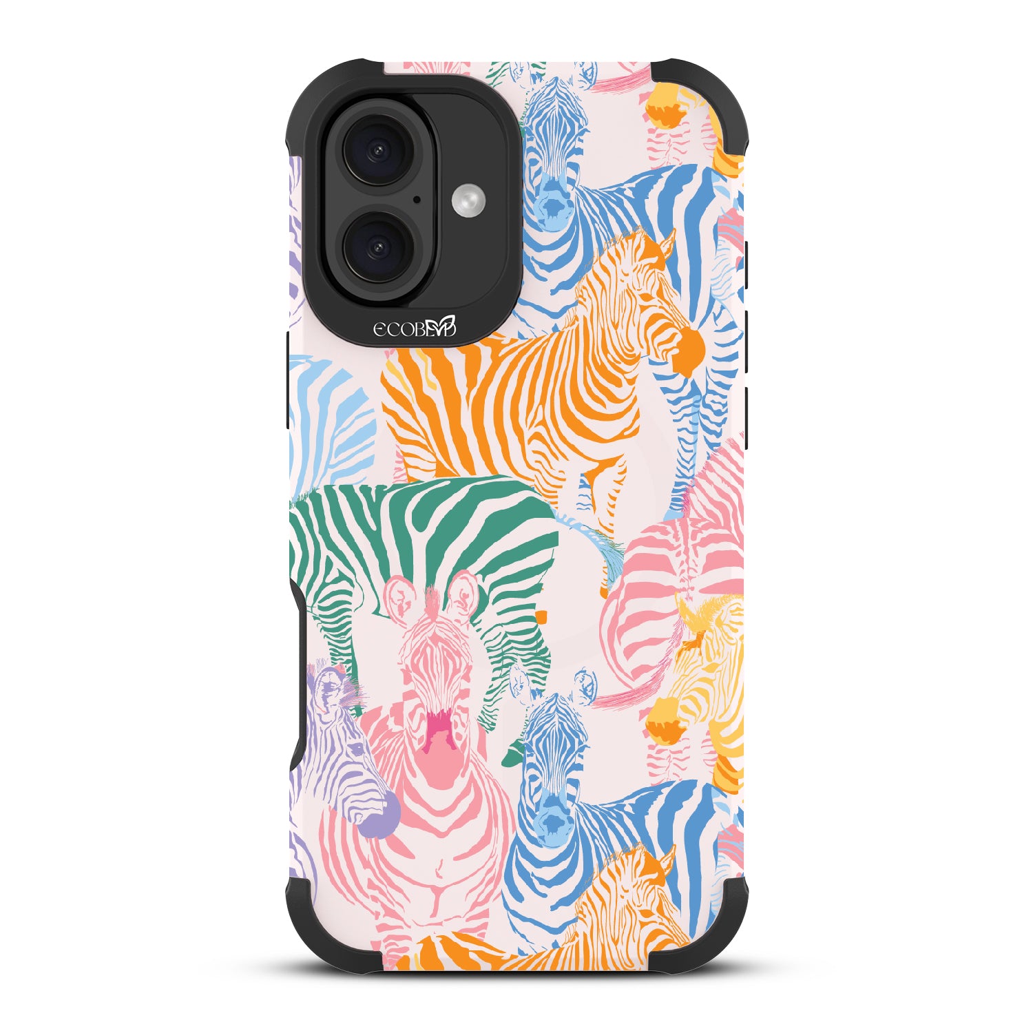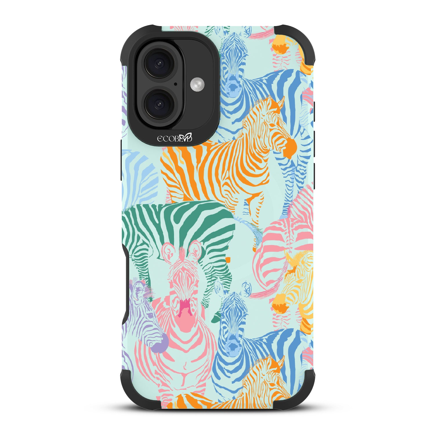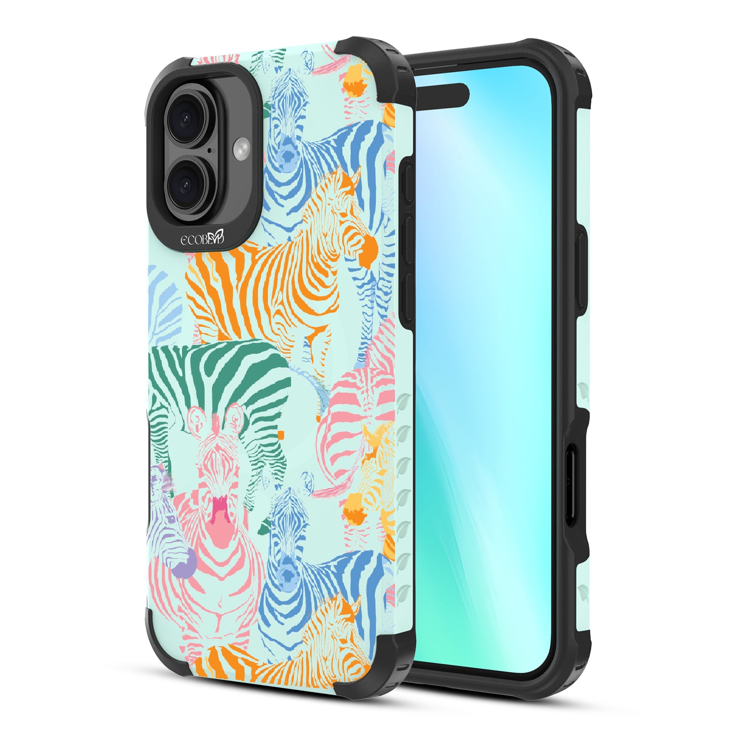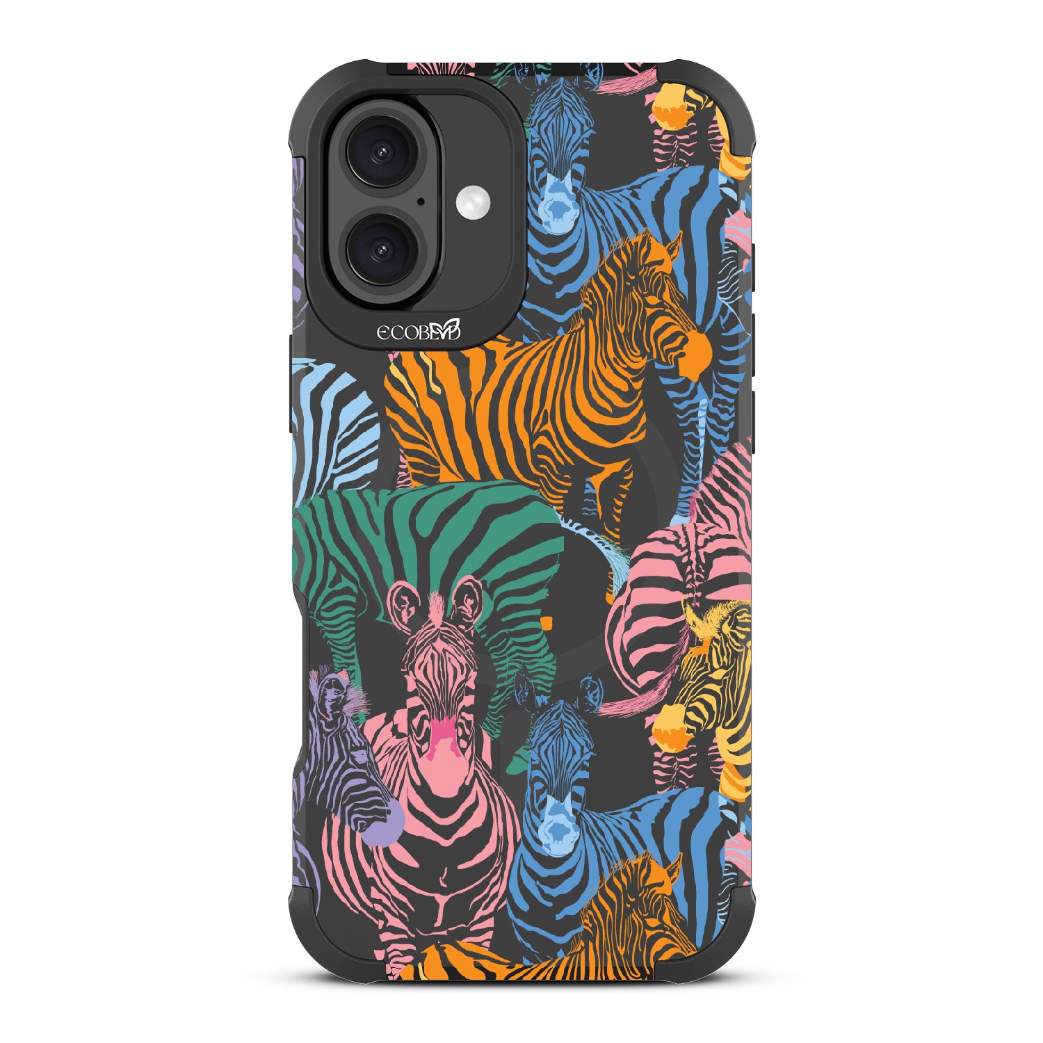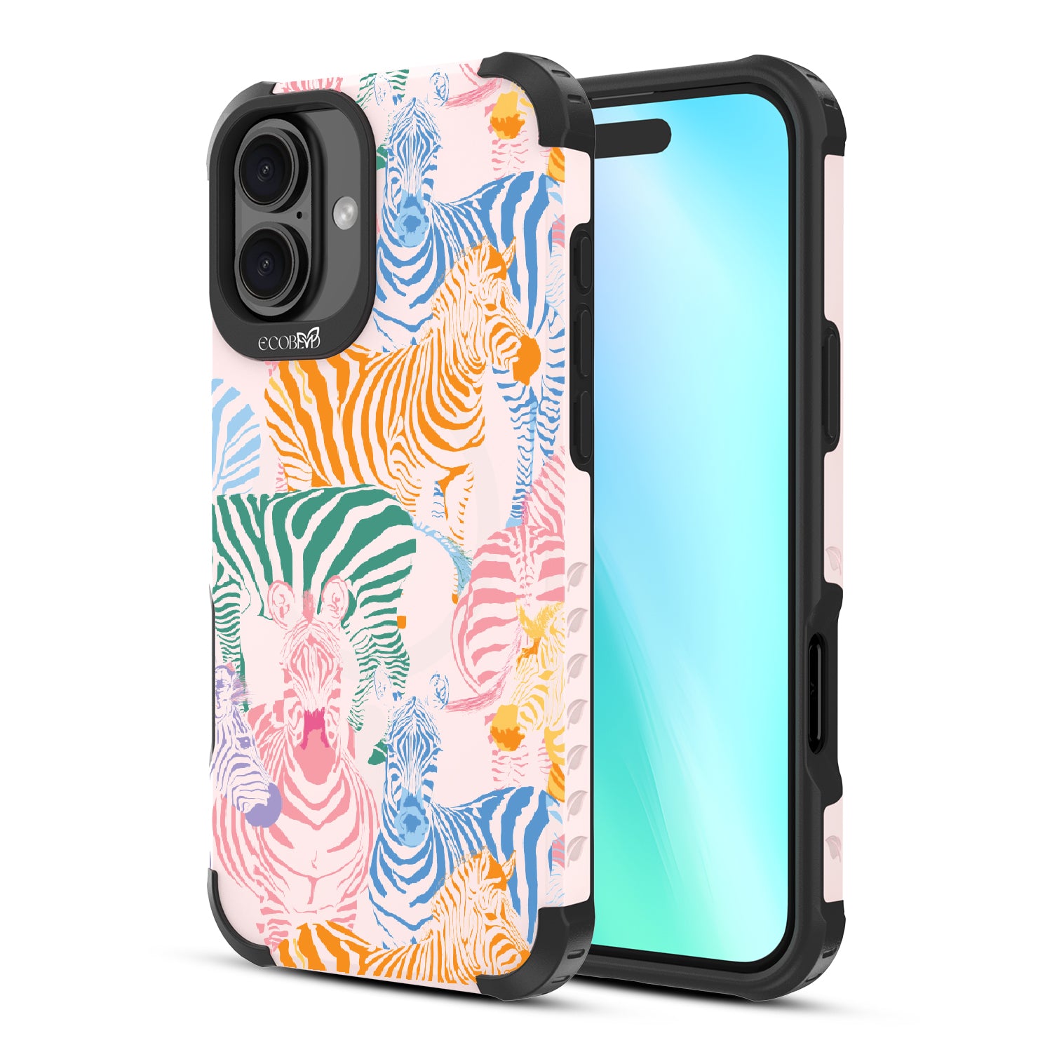 Unleash your inner zebra and join the Colorful Herd, on our Reforge rugged iPhone 16 Plus phone case. Embrace the vibrant beauty of zebras adorned in the colors of the rainbow as they become your style statement, radiating confidence, individuality, and a celebration of diversity while supporting ocean conservation efforts. Show off your true colors with the Colorful Herd phone case. This design is perfect for those who embrace their individuality and aren't afraid to stand out from the herd. With this phone case, you carry with you a powerful reminder to stand out with pride, embracing the vibrant and untamed spirit within while celebrating the beauty of diversity and unity.