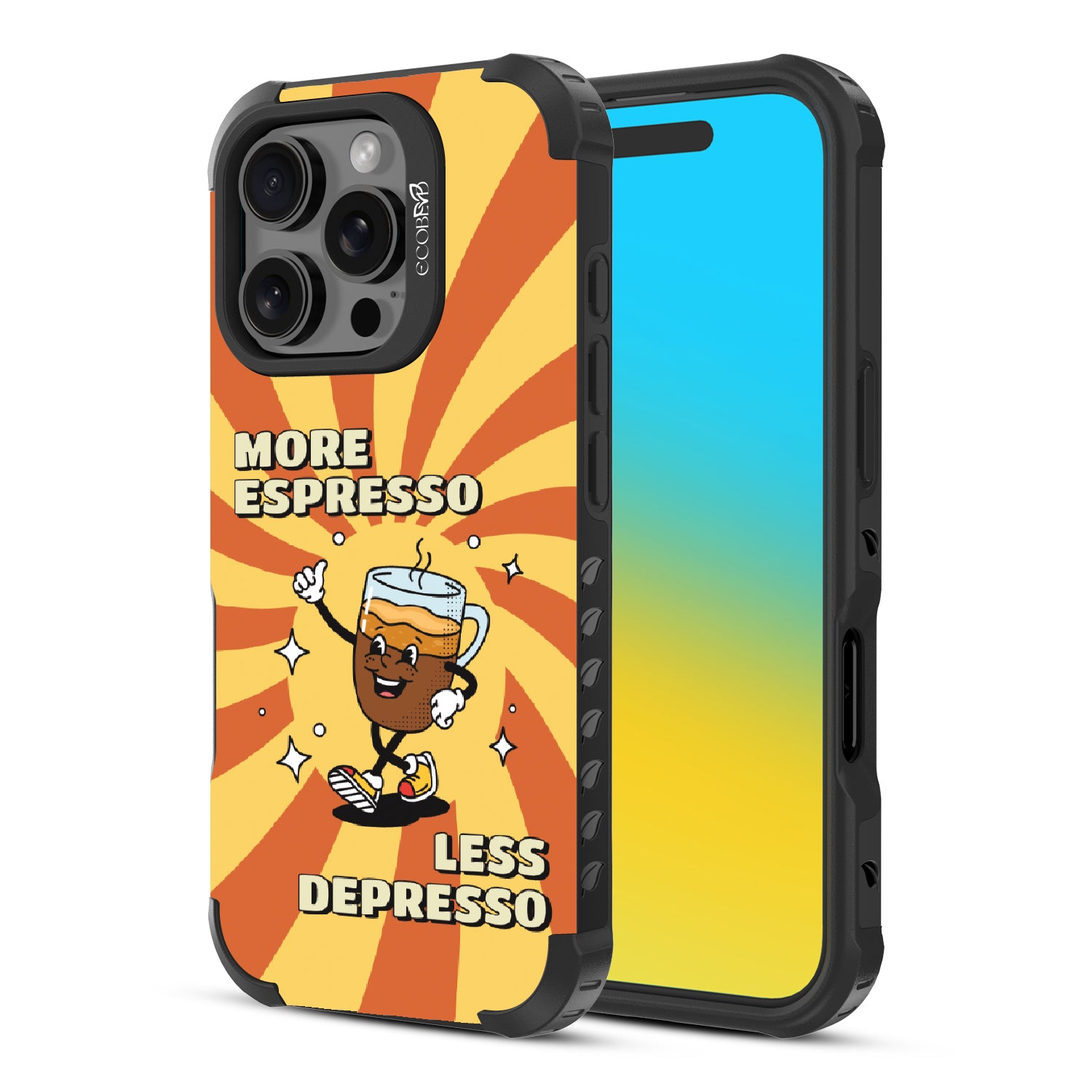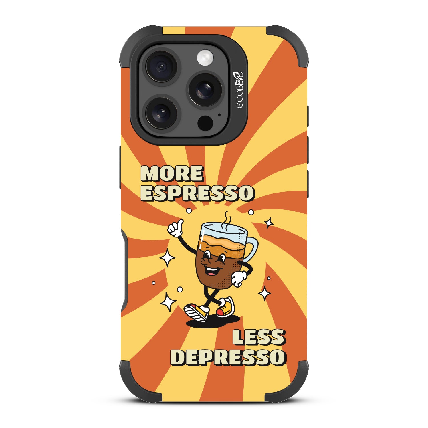 "More espresso, less depresso”—it’s that simple. A cheerful coffee mug and your new daily mantra bring good vibes to life with this playful design on our Reforge rugged iPhone 16 Pro case. Brew positivity and energy into every moment with a look that’s as bold as your first cup.