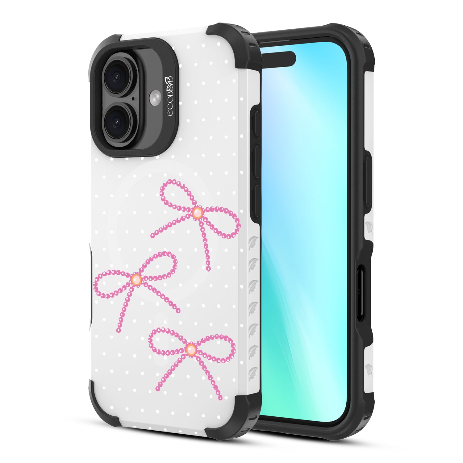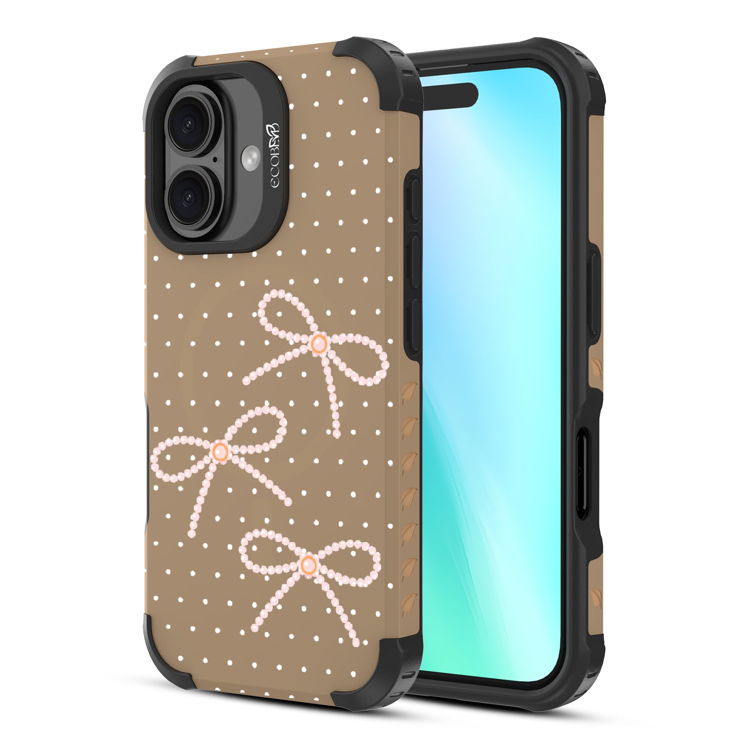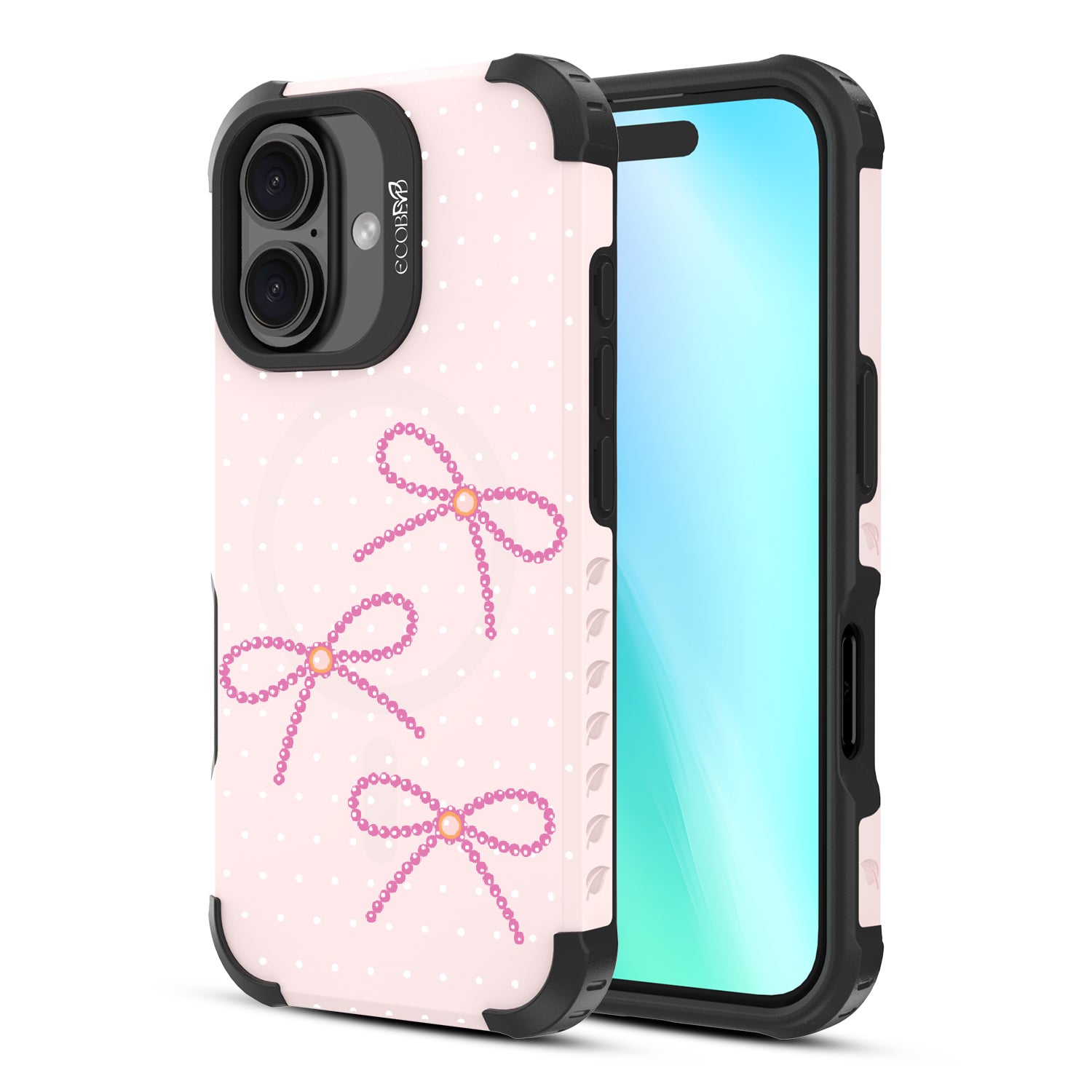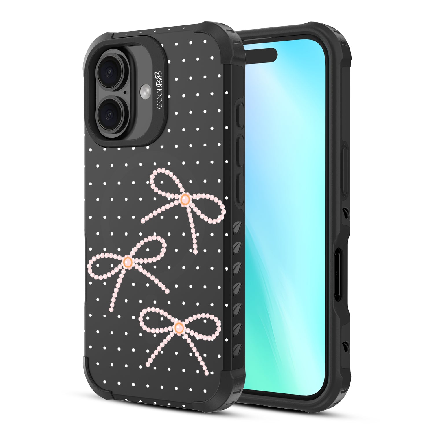 Knot to be outdone, the Knot So Little design on our Reforge rugged iPhone 16 phone case brings big style in small doses. Featuring pearls tied into dainty bows, this design adds a sophisticated touch to your phone. Show off your love for the little things with this elegant look.