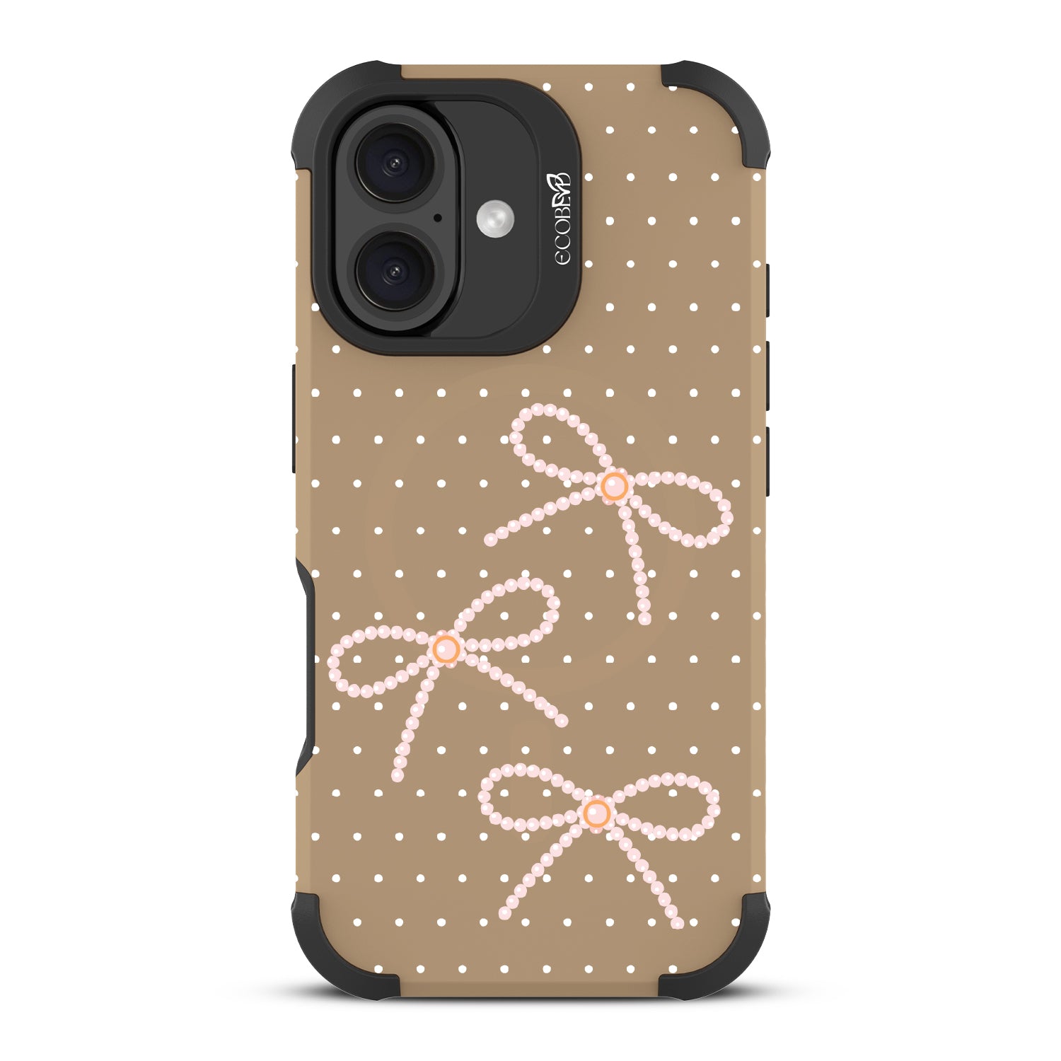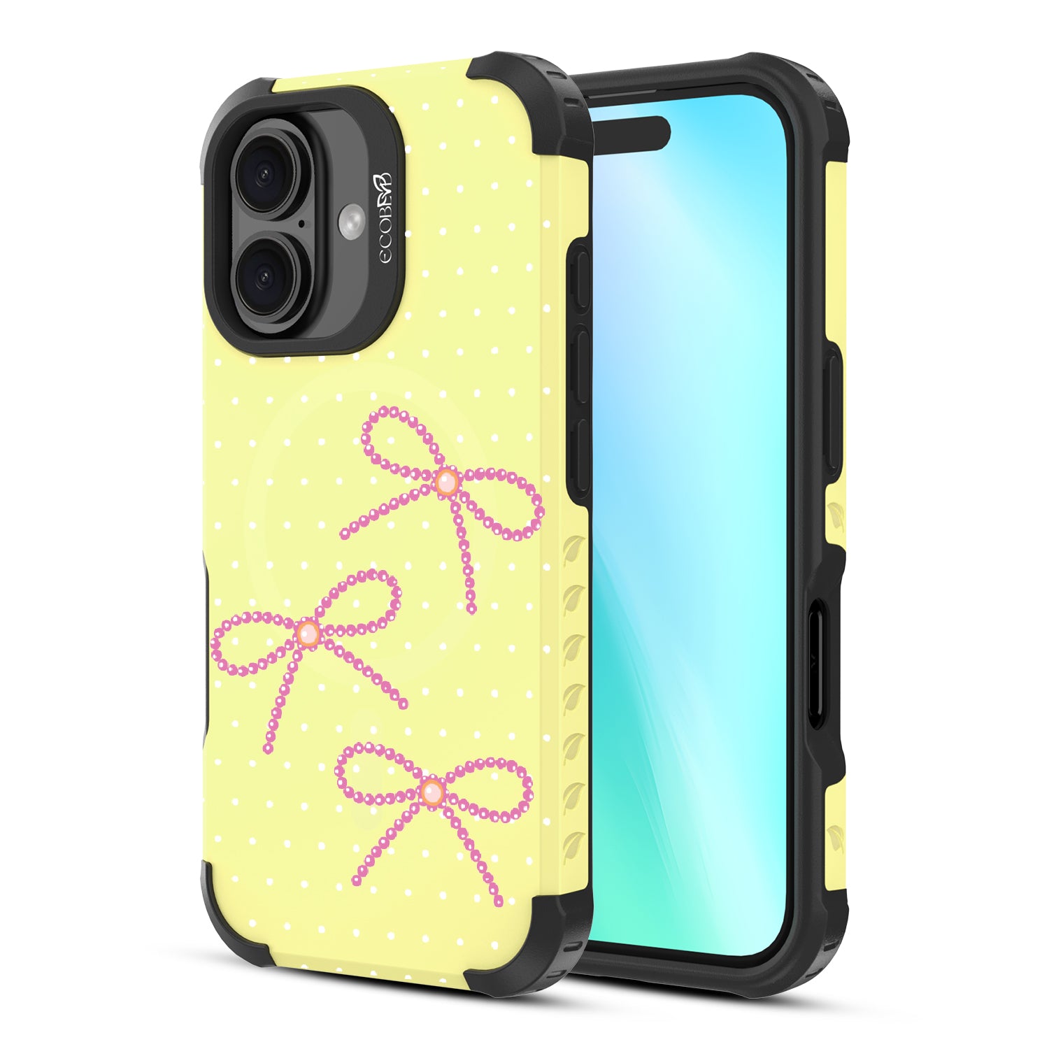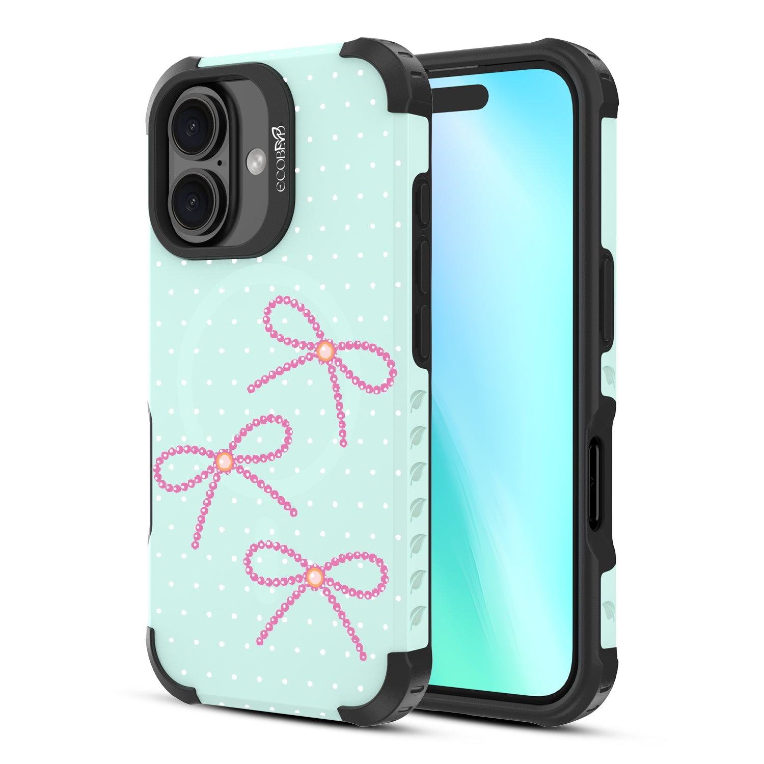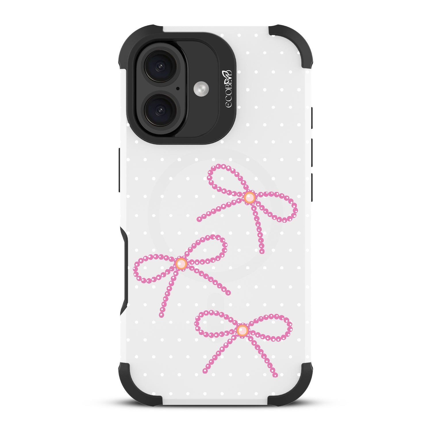Knot to be outdone, the Knot So Little design on our Reforge rugged iPhone 16 phone case brings big style in small doses. Featuring pearls tied into dainty bows, this design adds a sophisticated touch to your phone. Show off your love for the little things with this elegant look.
