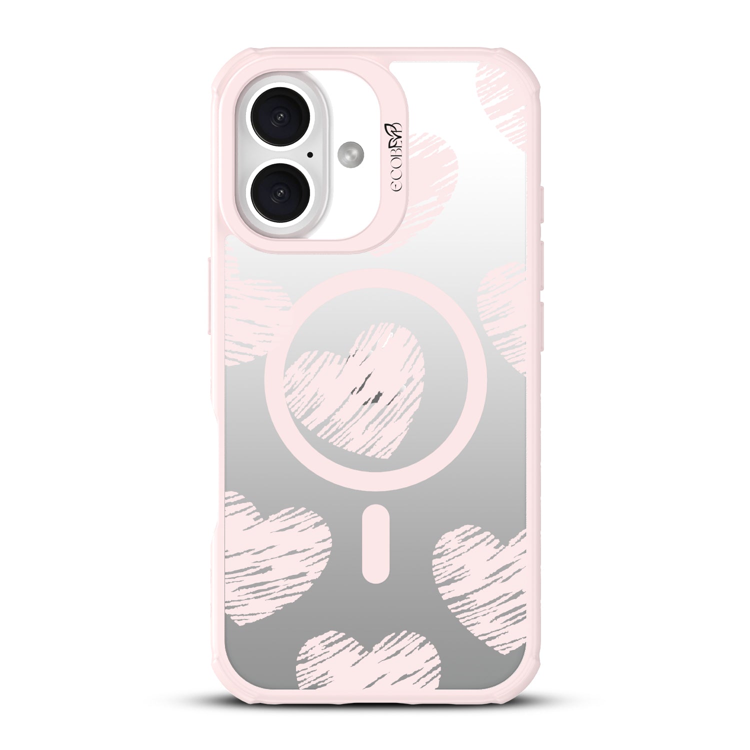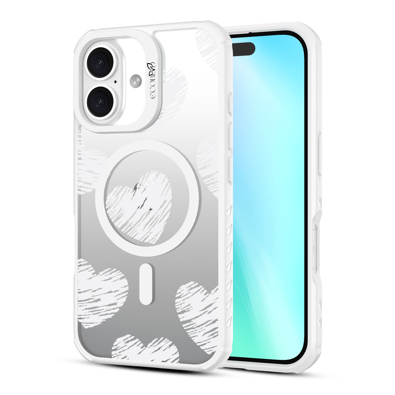 Perfectly capturing the magnetic pull of passion, the Drawn To You design on our Laguna clear Revive clear iPhone 16 phone case is an artful arrangement of scribbled hearts and the perfect representation of the power of love, turning any phone into an object of desire.