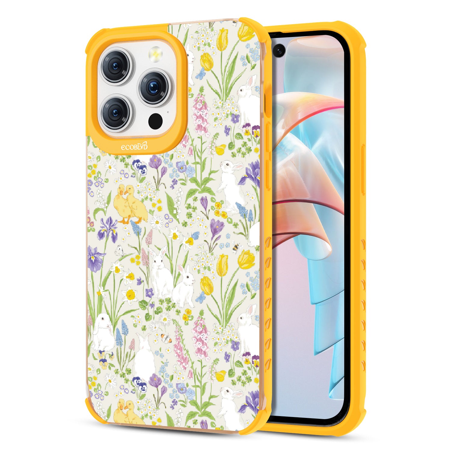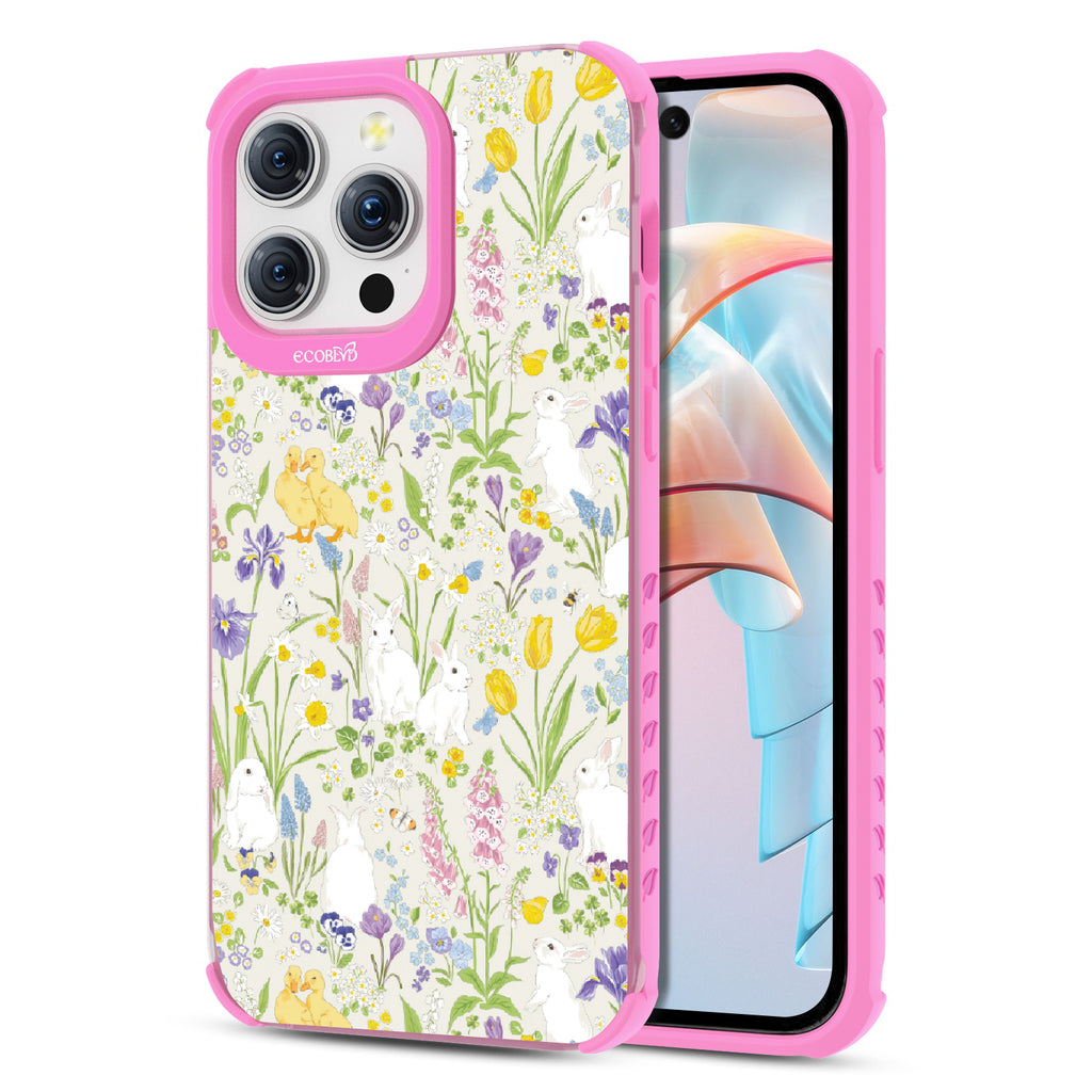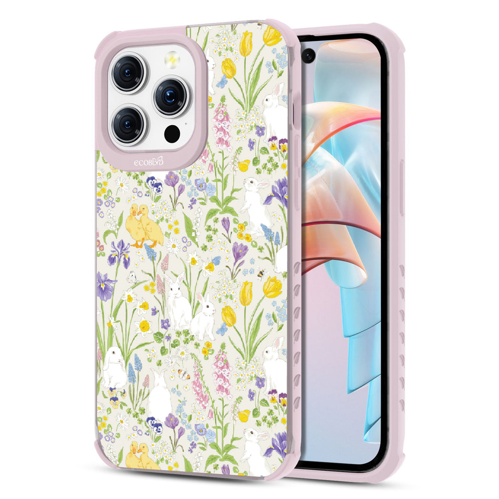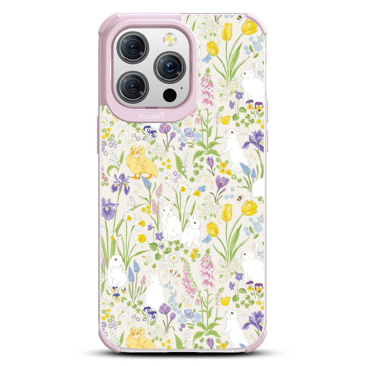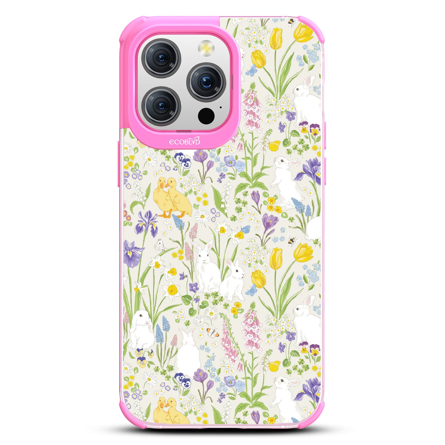 The Blossom Buddies design on our Laguna clear iPhone 15 Pro Max case is a playful parade of nature's friends, cleverly camouflaged among spring's finest flowers. It’s a delightful scene of critters finding sanctuary in the vibrant blossoms, bringing stories of hide-and-seek to your phone.