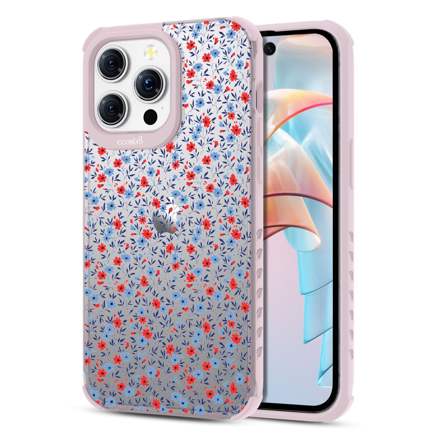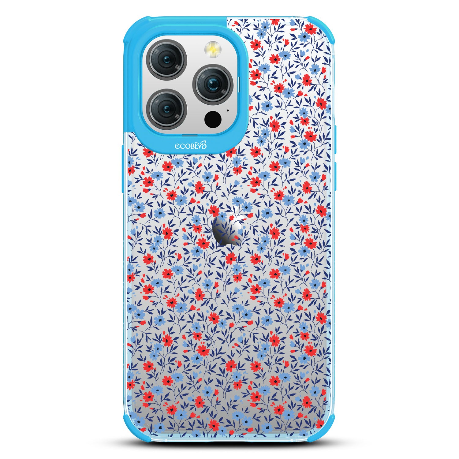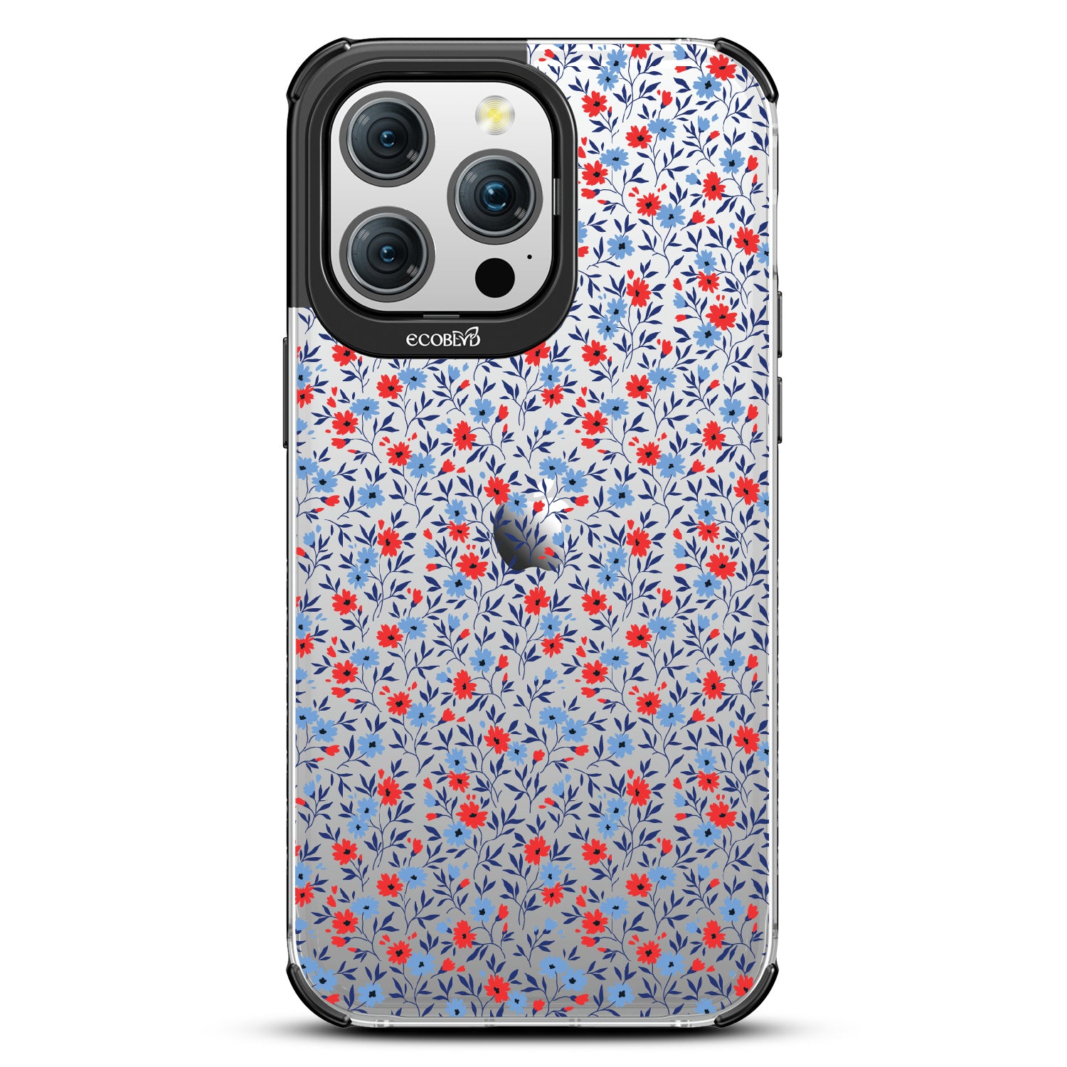 Show off your country roots with the Home Grown design on our Laguna clear iPhone 15 Pro Max phone case. Adorned with red, white, and blue flowers, this vintage floral pattern brings rustic charm and, some true American flair.