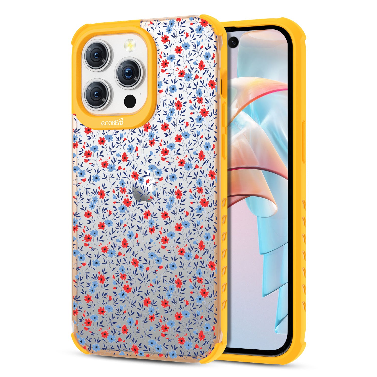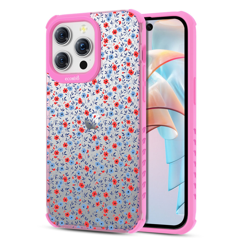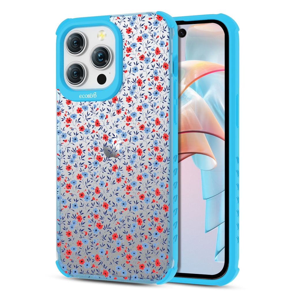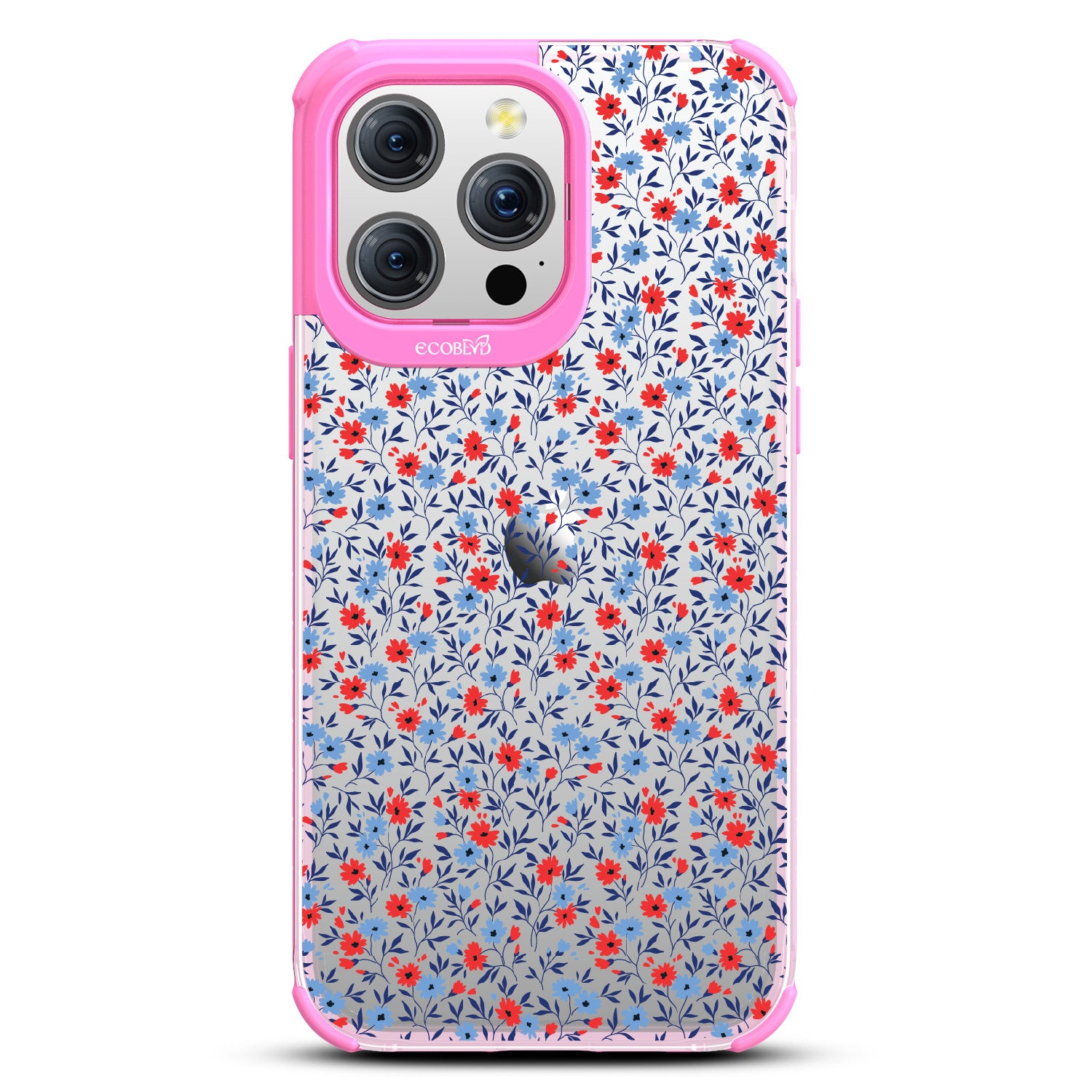 Show off your country roots with the Home Grown design on our Laguna clear iPhone 15 Pro Max phone case. Adorned with red, white, and blue flowers, this vintage floral pattern brings rustic charm and, some true American flair.