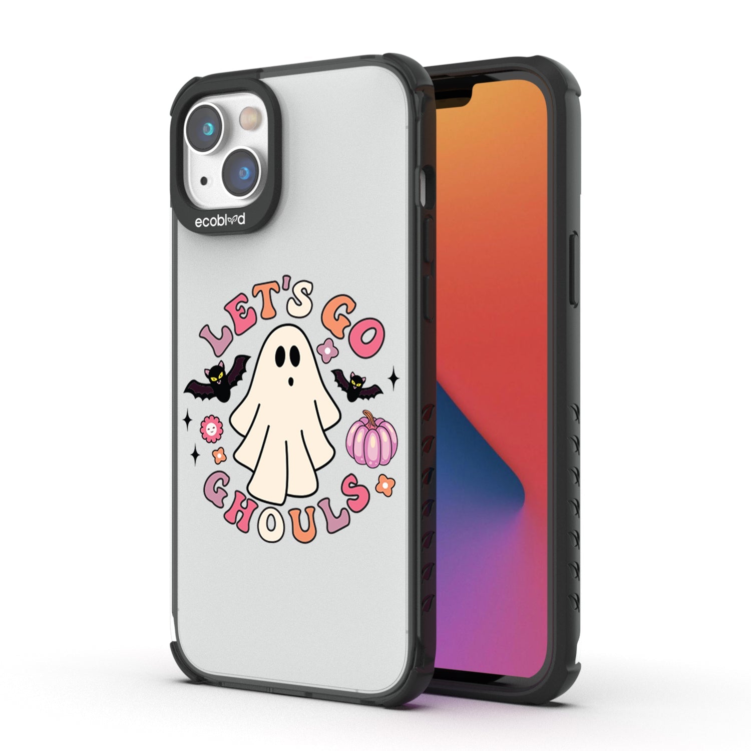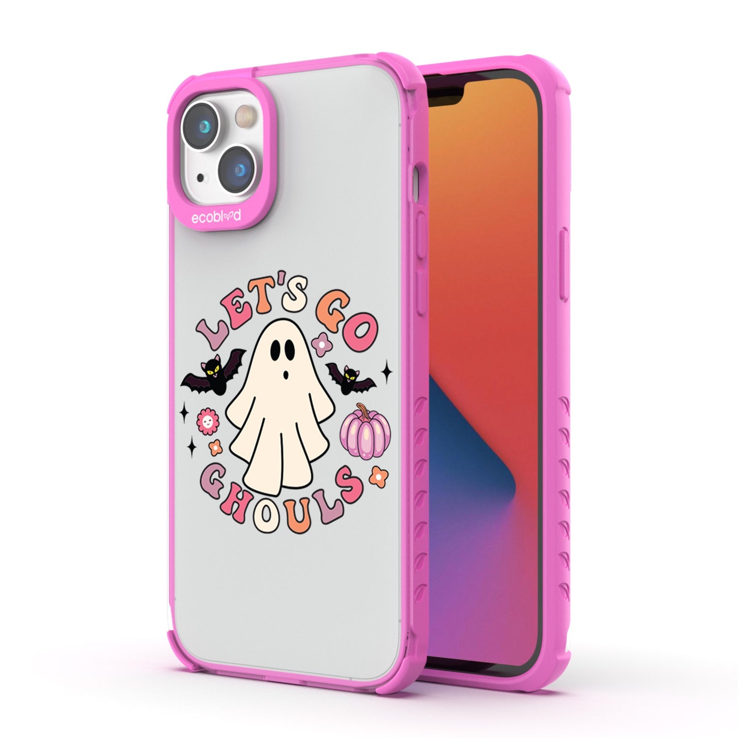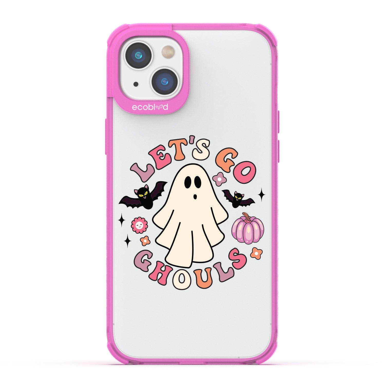 You'll be the envy of your witches' circle as the Let's Go Ghouls design on our Laguna clear iPhone 16e, iPhone 14, and iPhone 13 phone case turns your phone into a magical Halloween wonderland with ghosts, bats, and pumpkins on a bold Midnight Black or vibrant Wildflower Pink case.