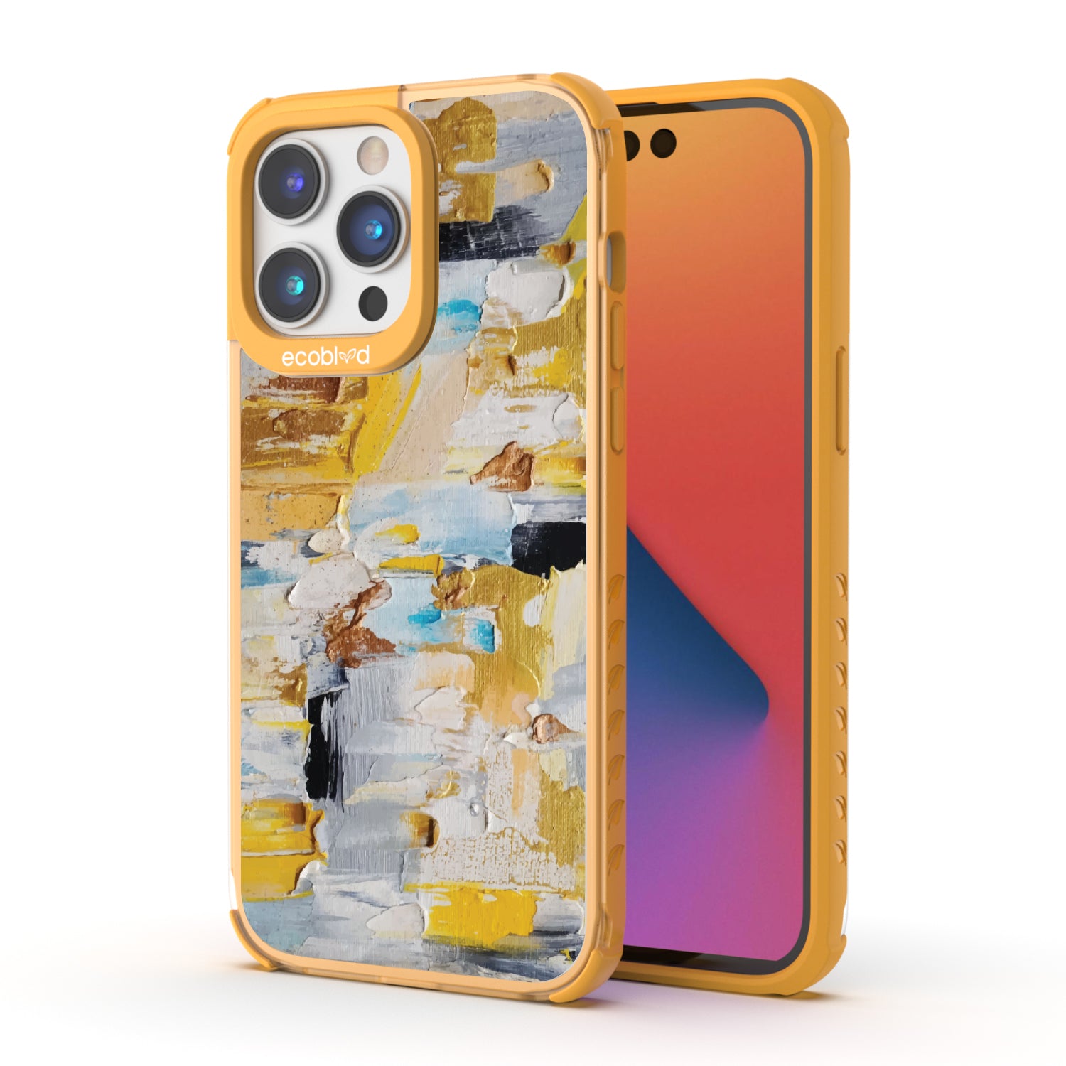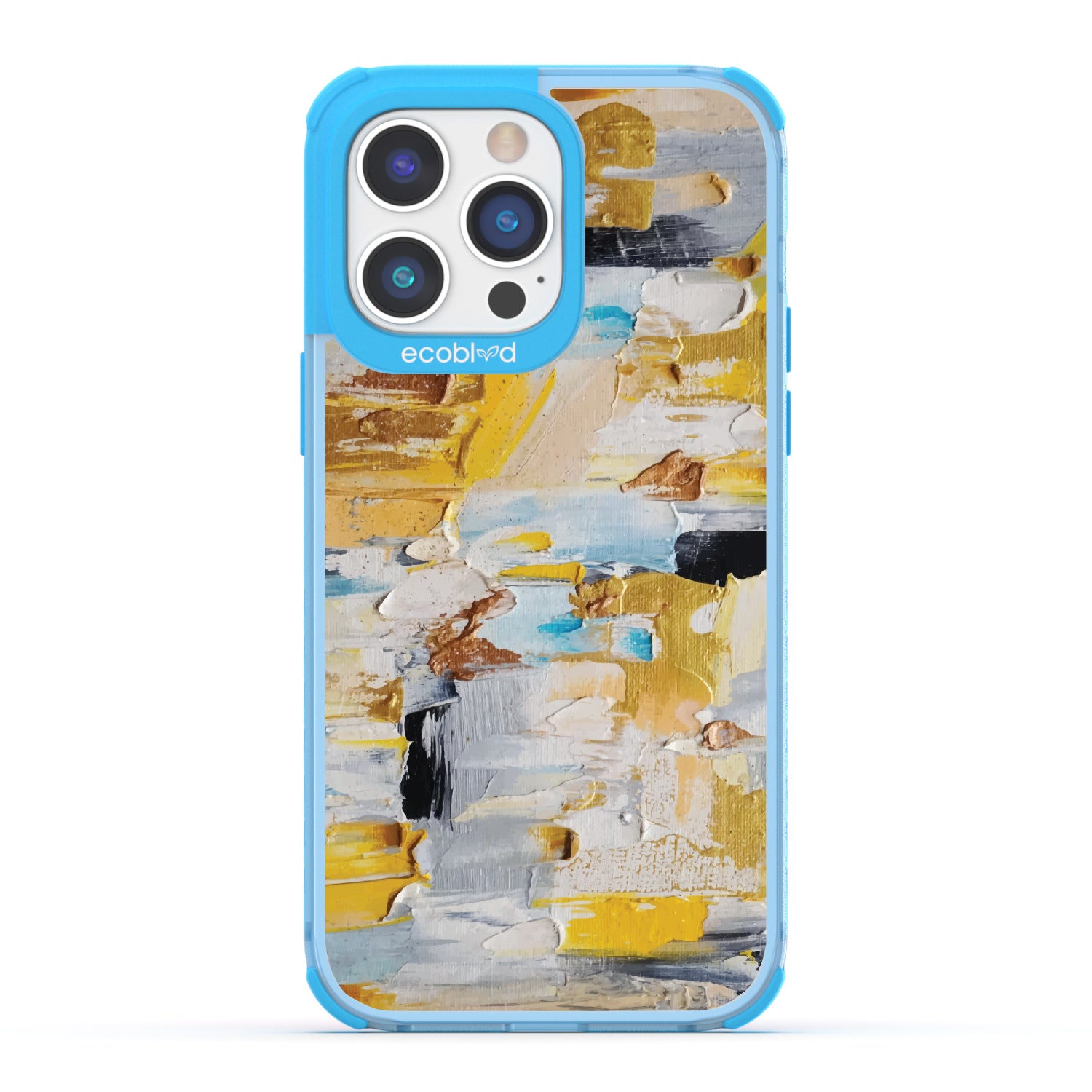 Everything looks better in the right light. The Lighten Up design on our Laguna clear iPhone 14 Pro Max case plays with contrast—sunny yellows, soft creams, and grounded blue tones arranged in textured patches. A piece that shifts the mood instantly, like a well-placed brush of brightness.