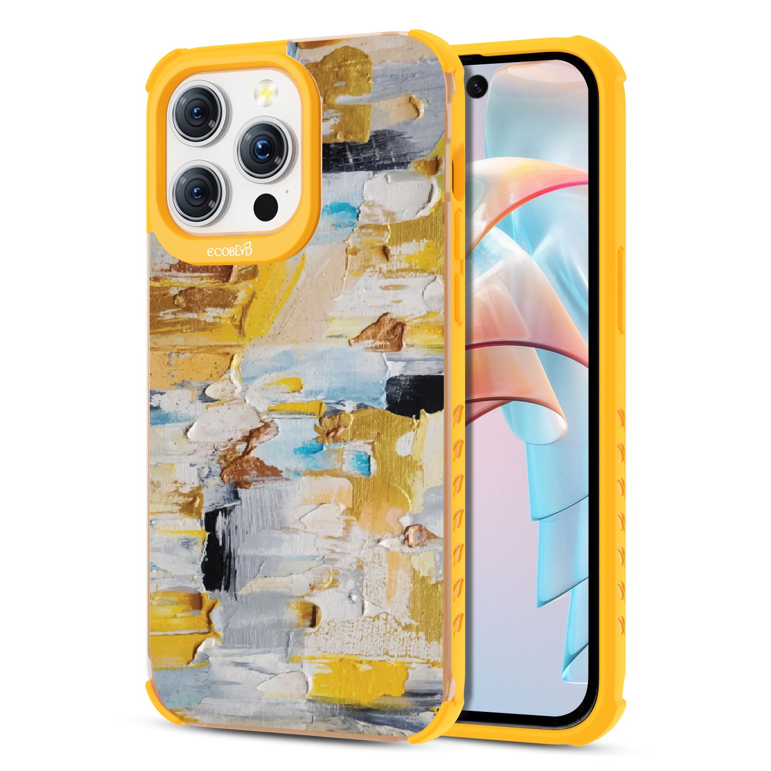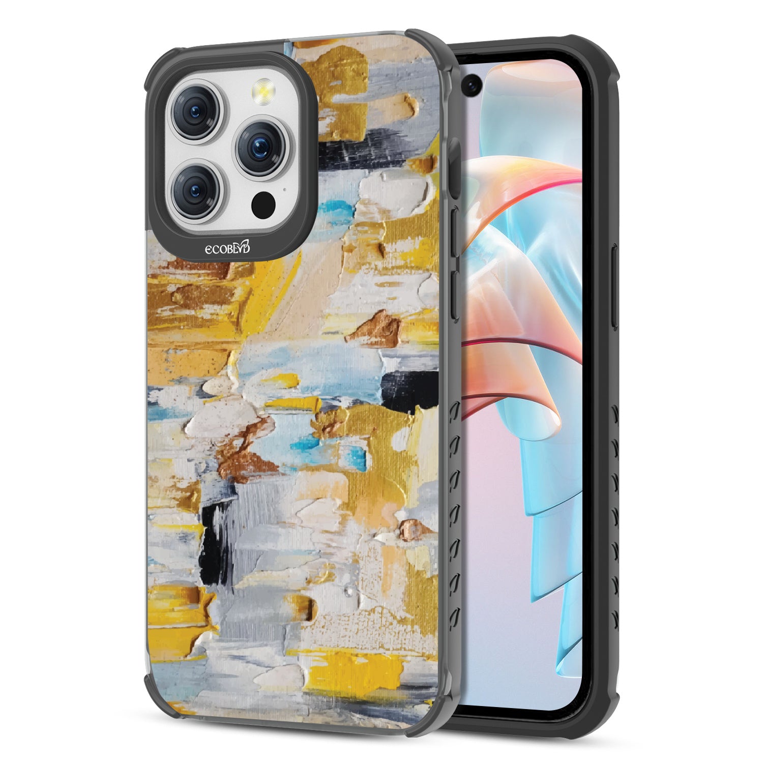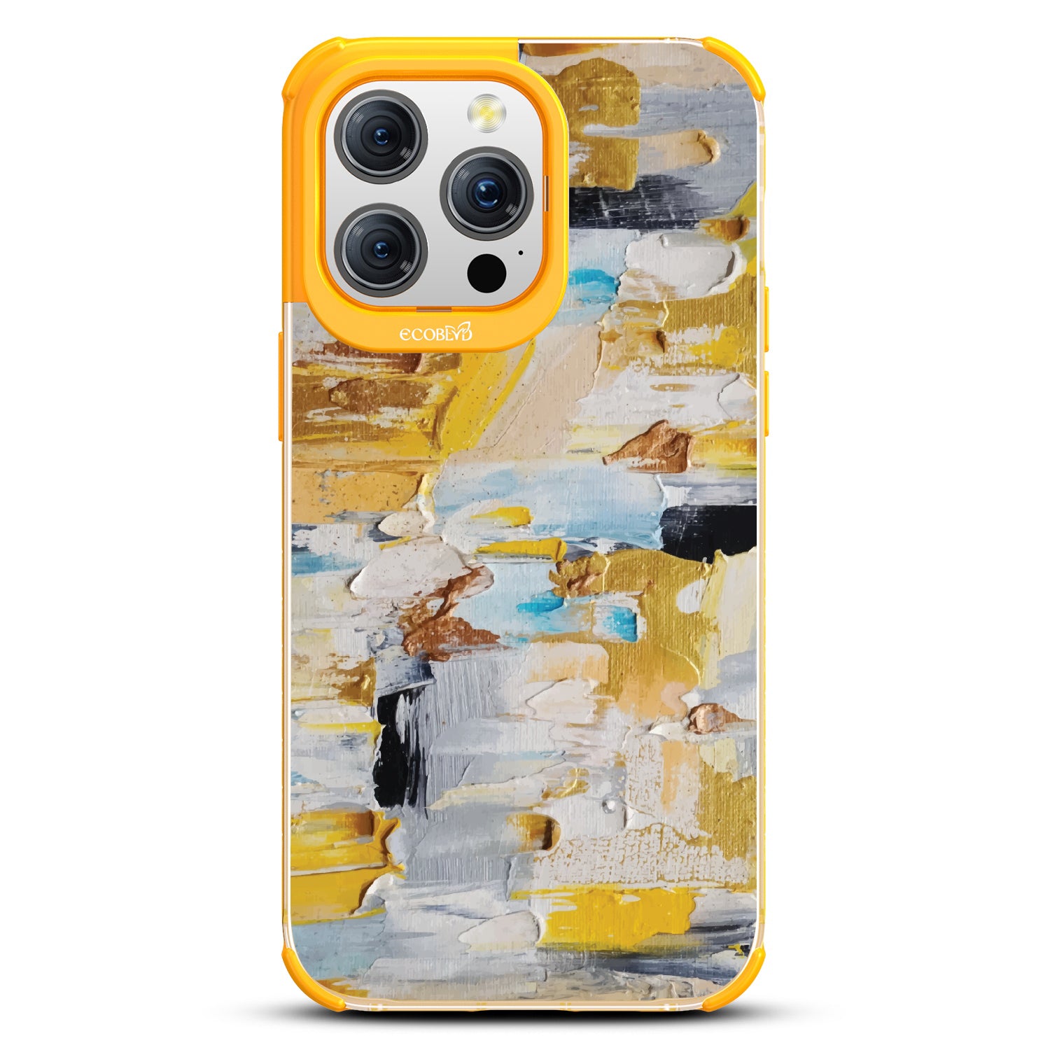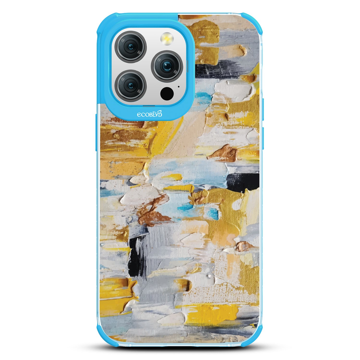 Everything looks better in the right light. The Lighten Up design on our Laguna clear iPhone 15 Pro Max case plays with contrast—sunny yellows, soft creams, and grounded blue tones arranged in textured patches. A piece that shifts the mood instantly, like a well-placed brush of brightness.