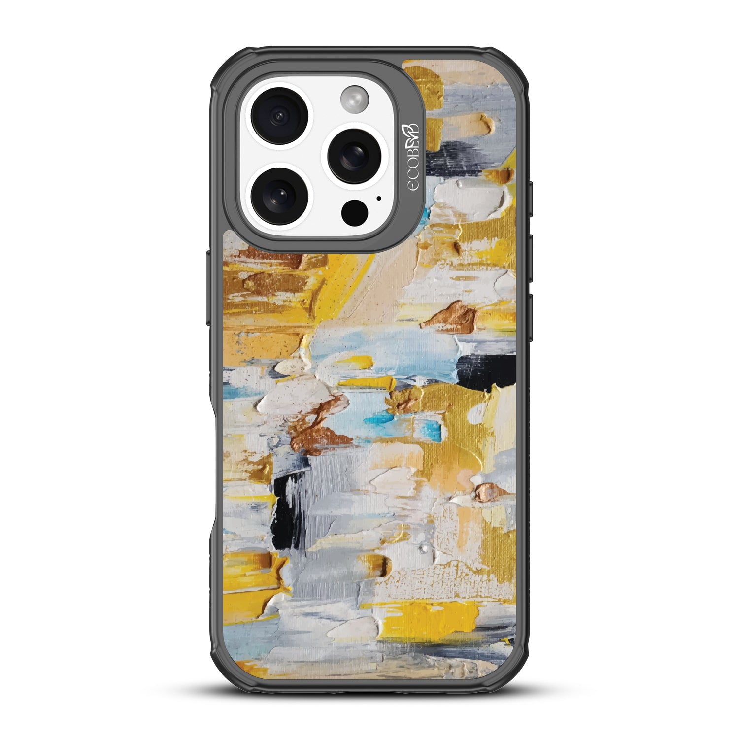 Everything looks better in the right light. The Lighten Up design on our Revive clear iPhone 16 Pro case plays with contrast—sunny yellows, soft creams, and grounded blue tones arranged in textured patches. A piece that shifts the mood instantly, like a well-placed brush of brightness.