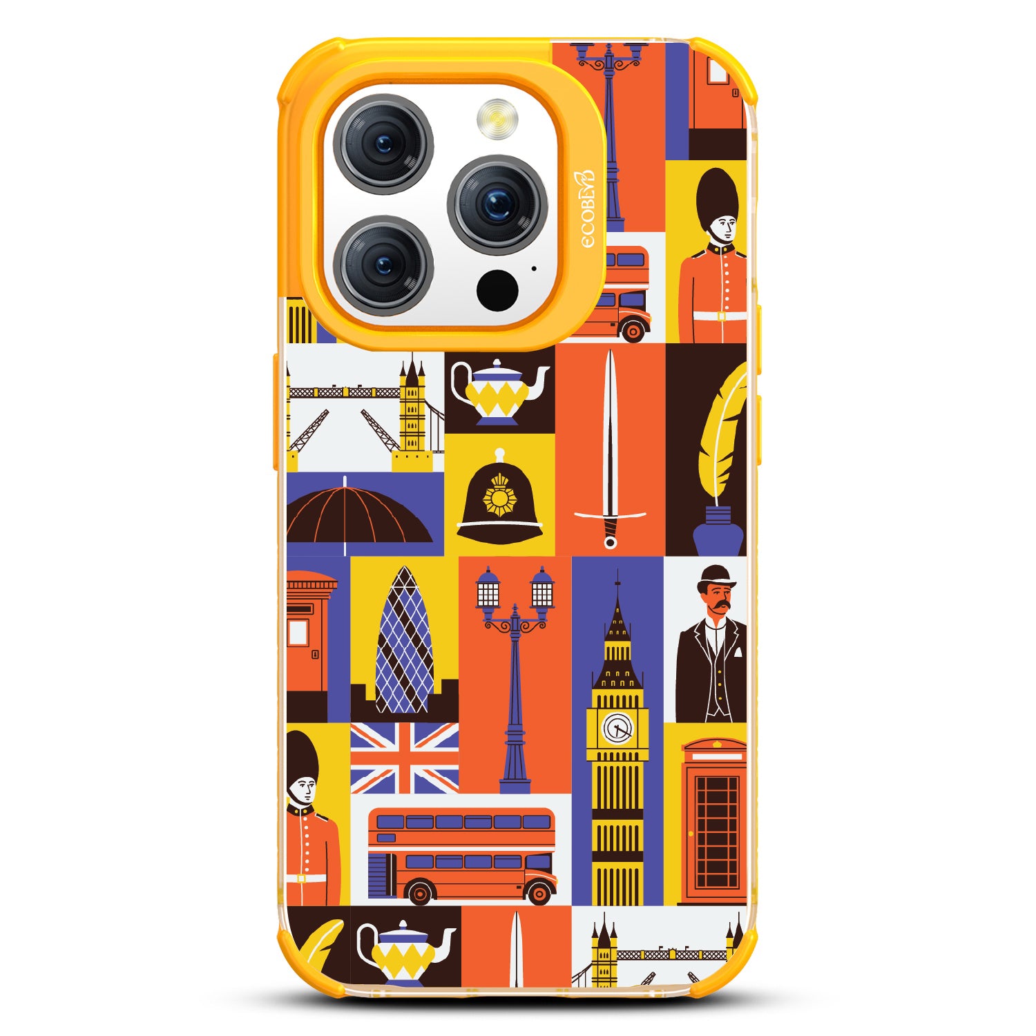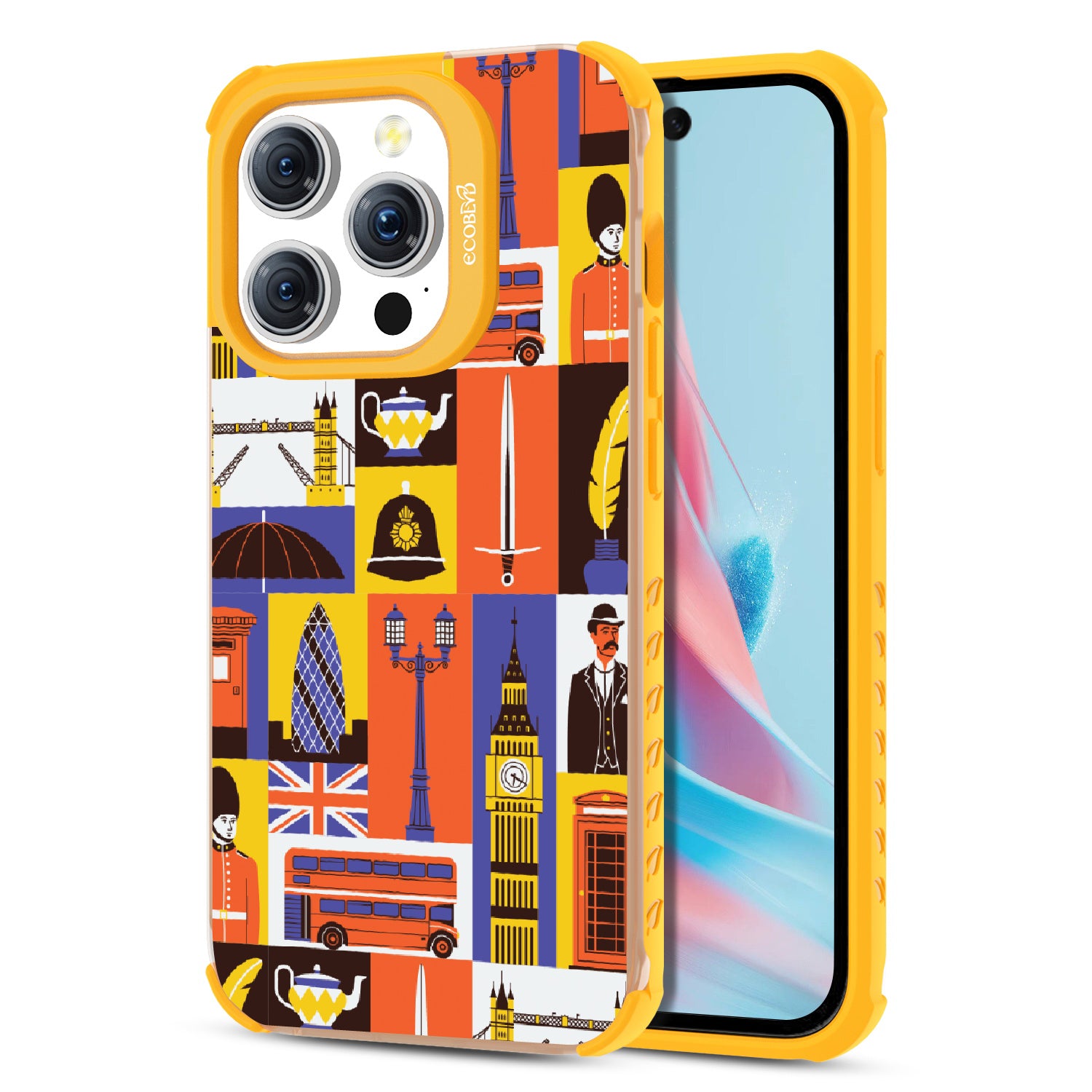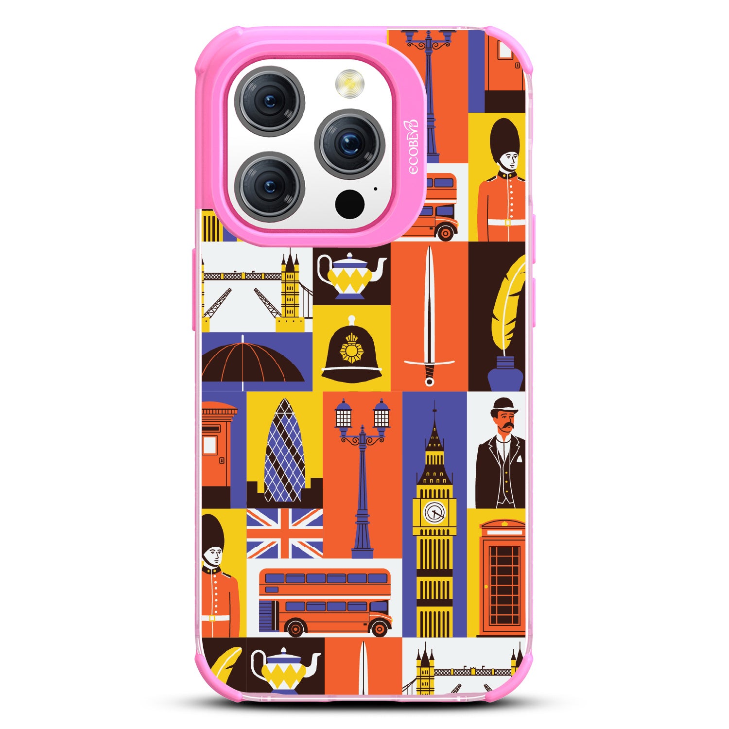 Climb onto the top deck of your own tour bus with the London Town design on our Laguna clear iPhone 15 Pro phone case, where every box offers a new sight to be seen. From the grand silhouette of Big Ben to the solemn beauty of the Royal Guards, and the quaint charm of the traditional red telephone box, this design is your all-access pass to the city’s most storied landmarks.