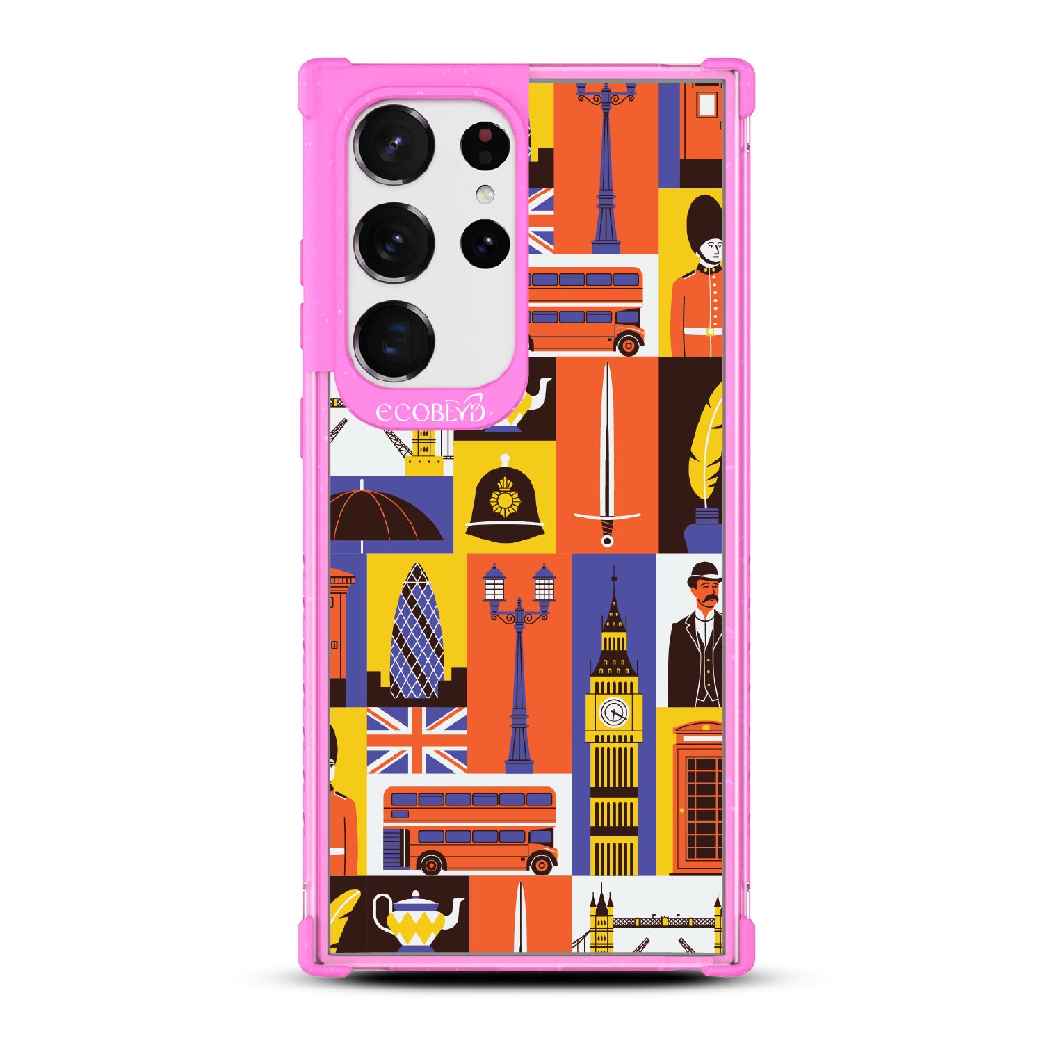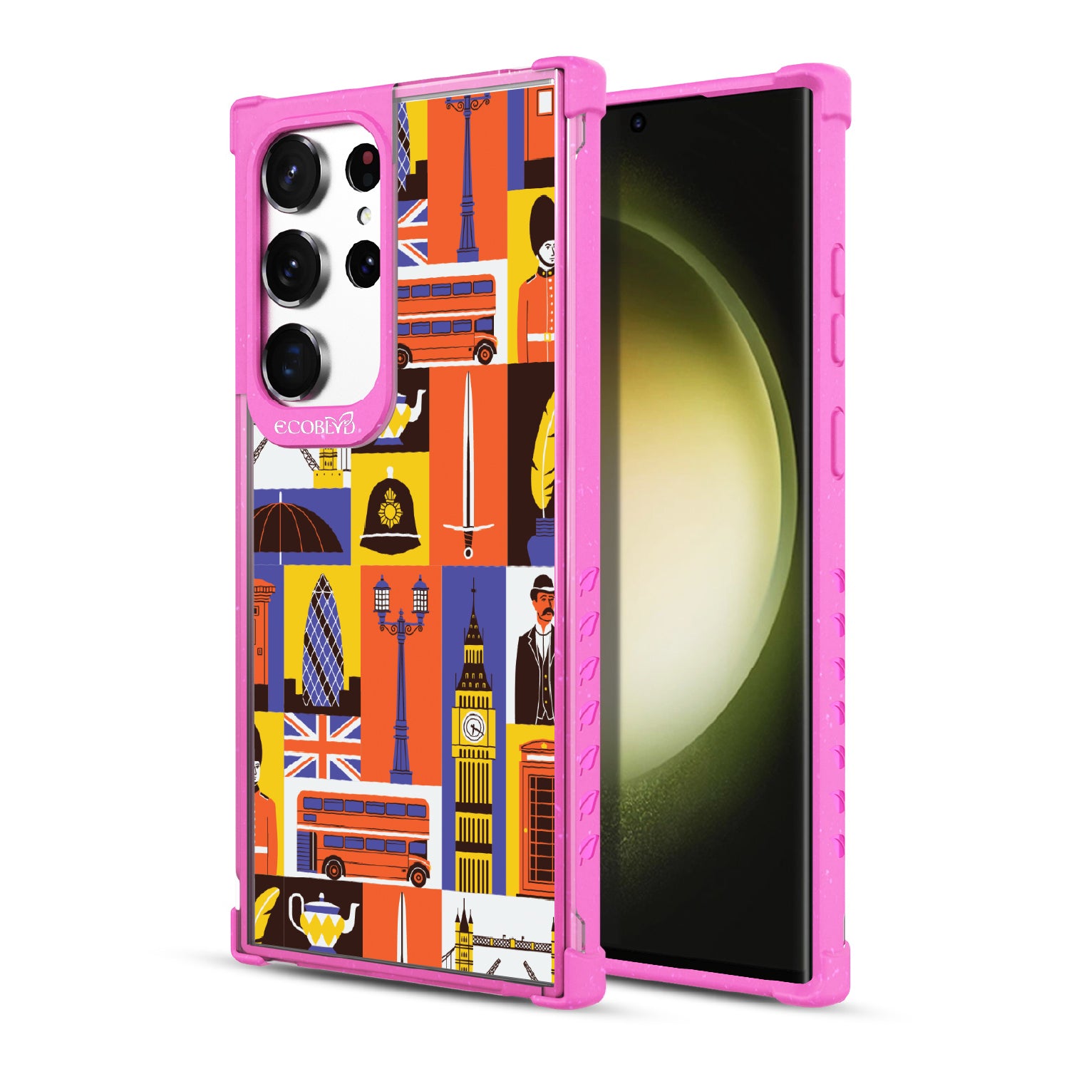 Climb onto the top deck of your own tour bus with the London Town design on our Laguna clear Galaxy S23 Ultra phone case, where every box offers a new sight to be seen. From the grand silhouette of Big Ben to the solemn beauty of the Royal Guards, and the quaint charm of the traditional red telephone box, this design is your all-access pass to the city’s most storied landmarks.