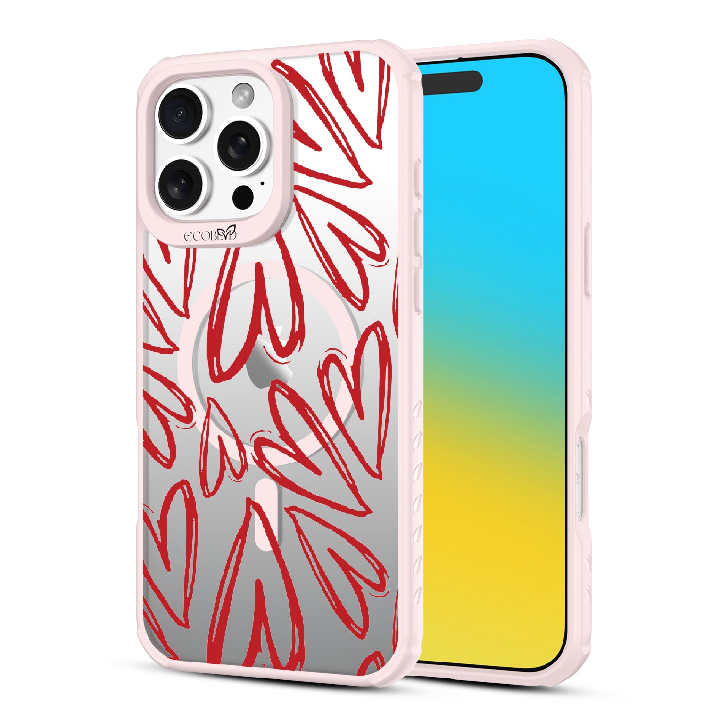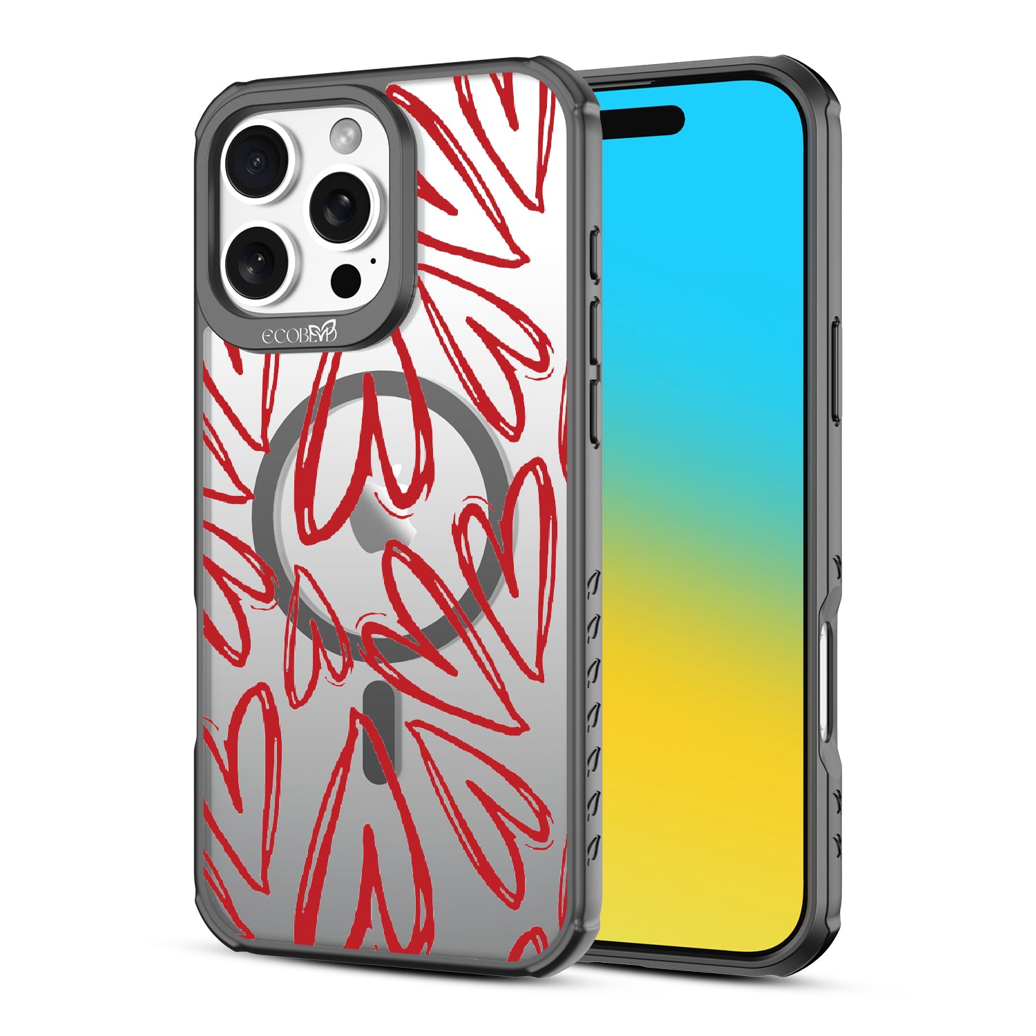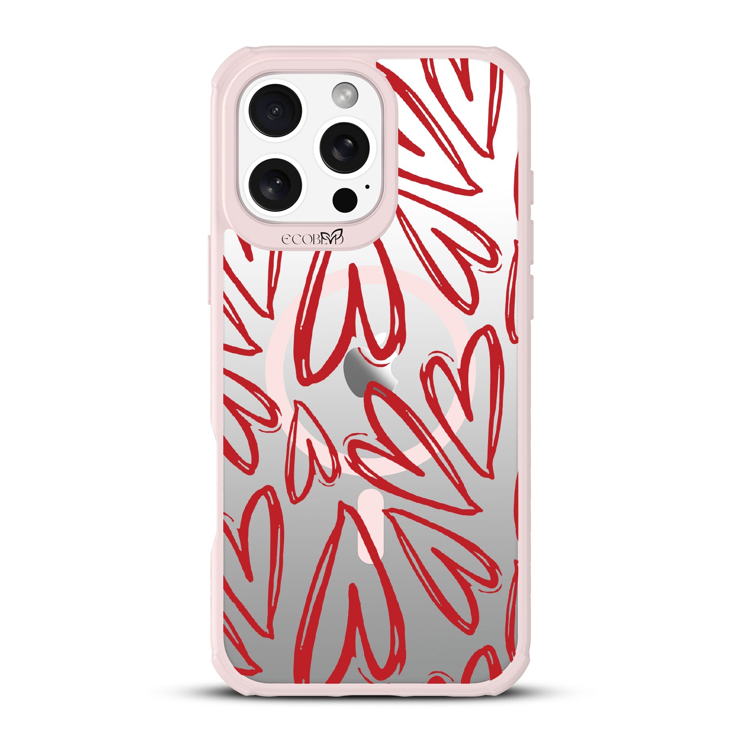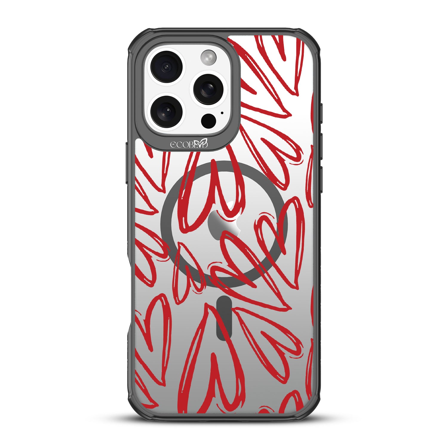 Scribbled with love and passion, the Heartfelt design on our Revive clear iPhone 16 Pro Max phone case has bold red hearts that will put a smile on your face and a spring in your step every time you use your phone.
