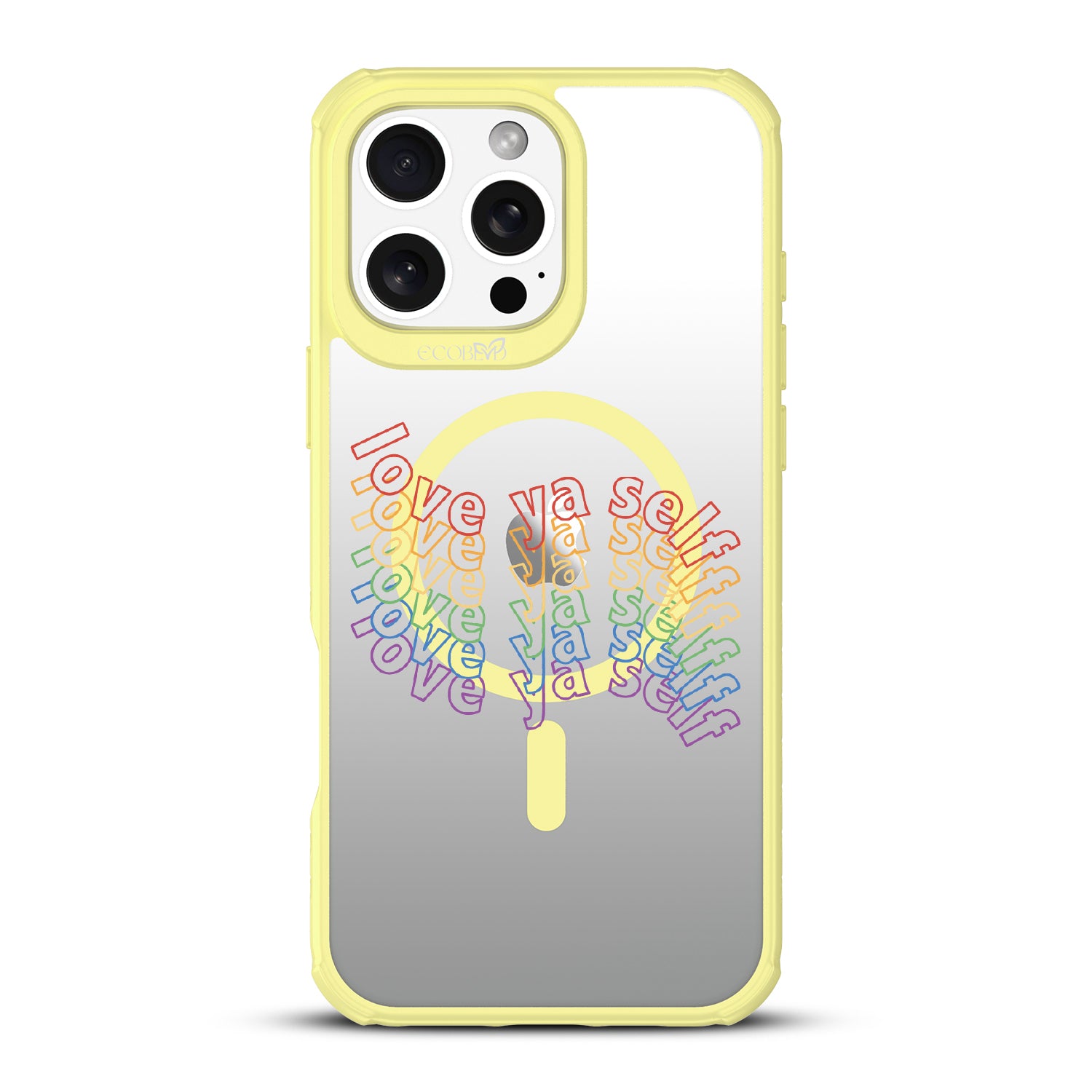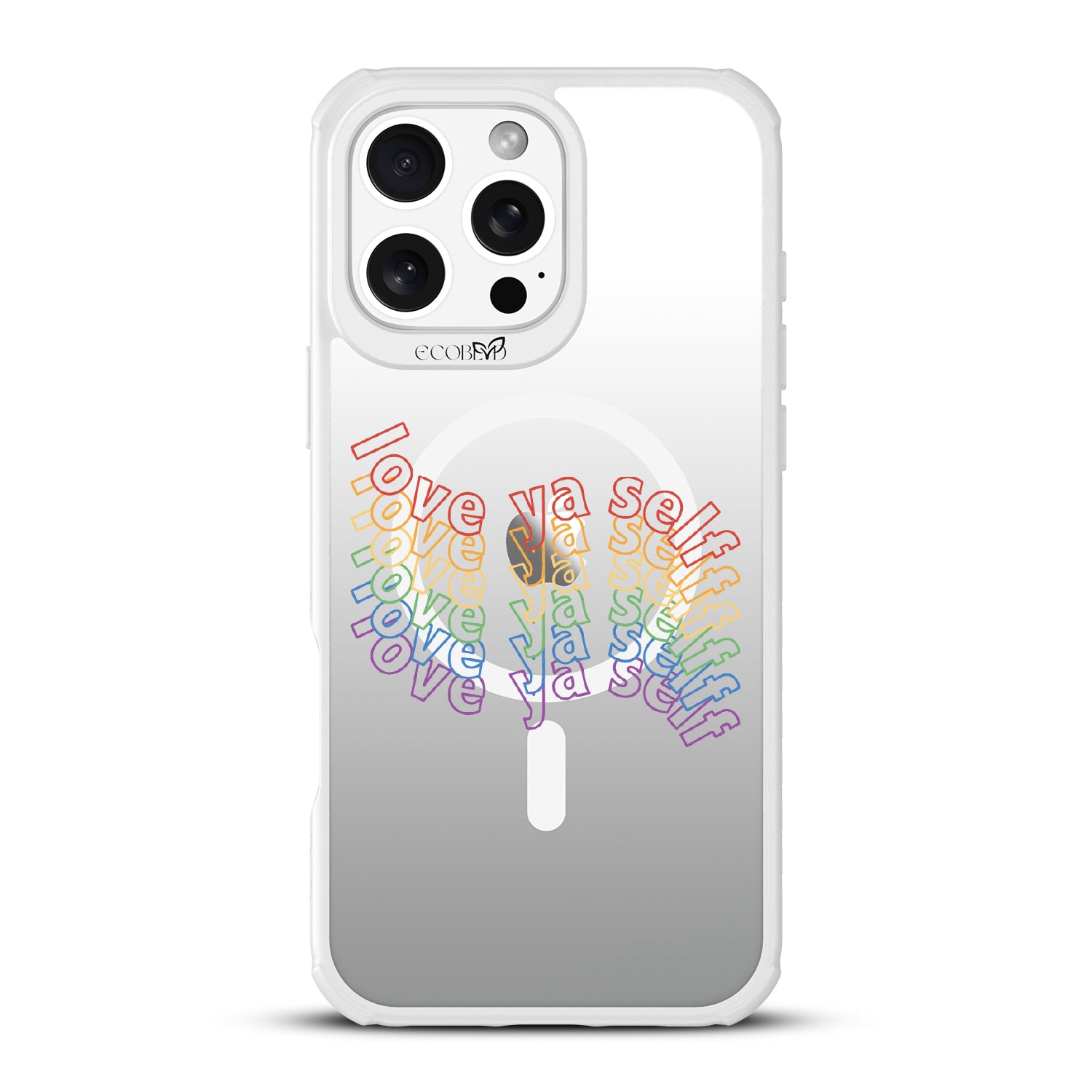 Show off your love for yourself and your colorful personality with the Love Ya Self design on our Revive clear iPhone 16 Pro Max phone case, featuring rainbow block lettering that's sure to add a touch of self-love and positivity to your daily life as a playful reminder always to put yourself first.