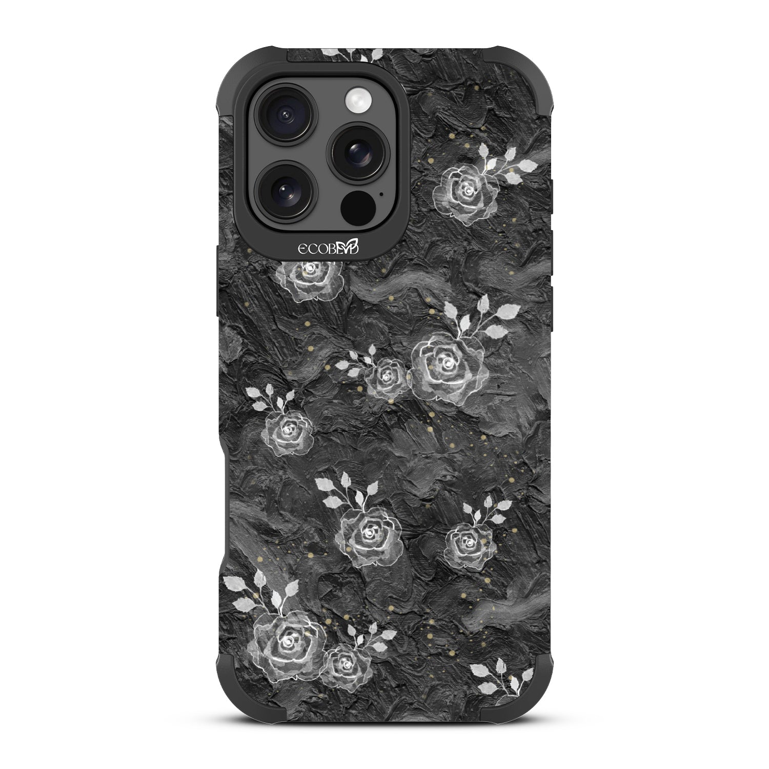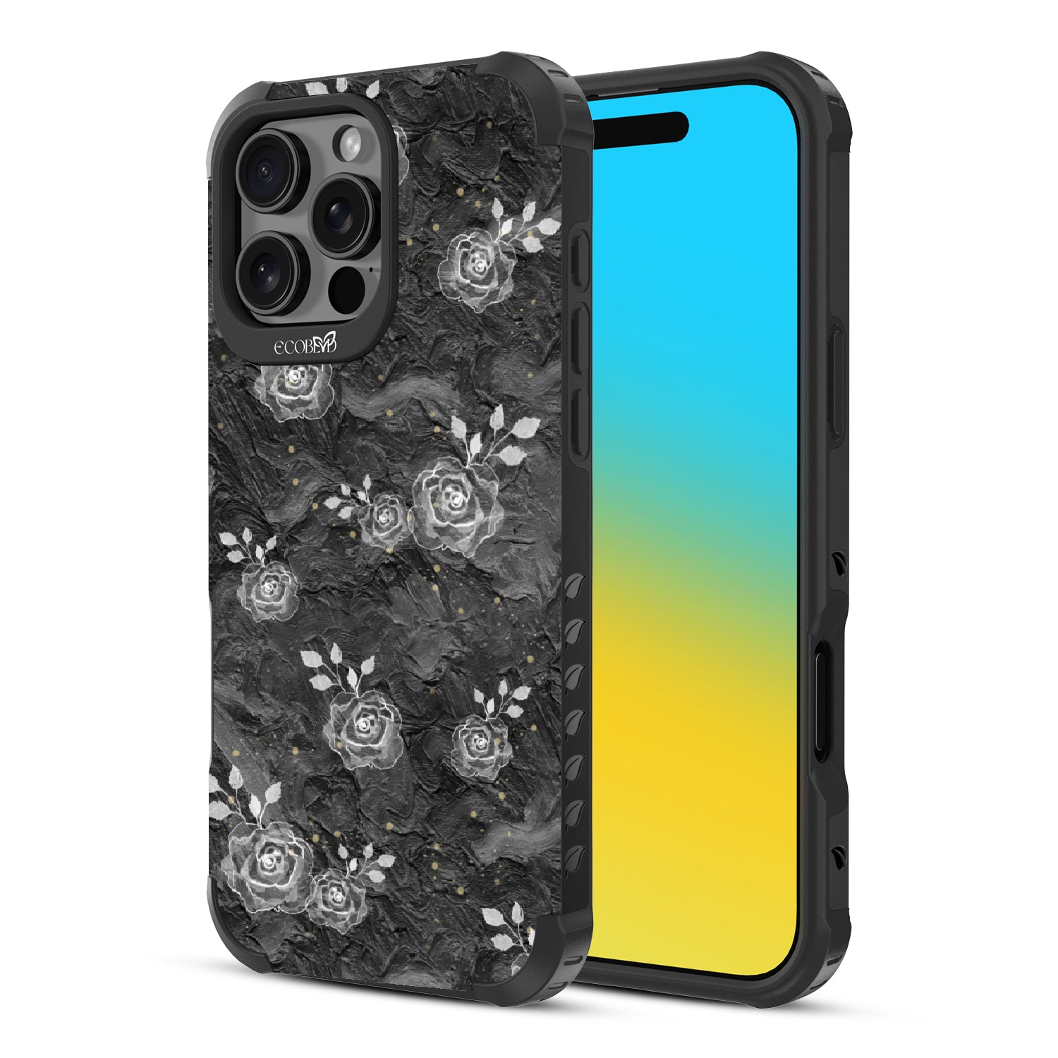 Surrender to the captivating beauty of the Midnight Rose design on our Reforge rugged iPhone 16 Pro Max phone case as its white rose silhouettes on a black lacquer-like background are polished to perfection and bloom with a hint of romantic intrigue.