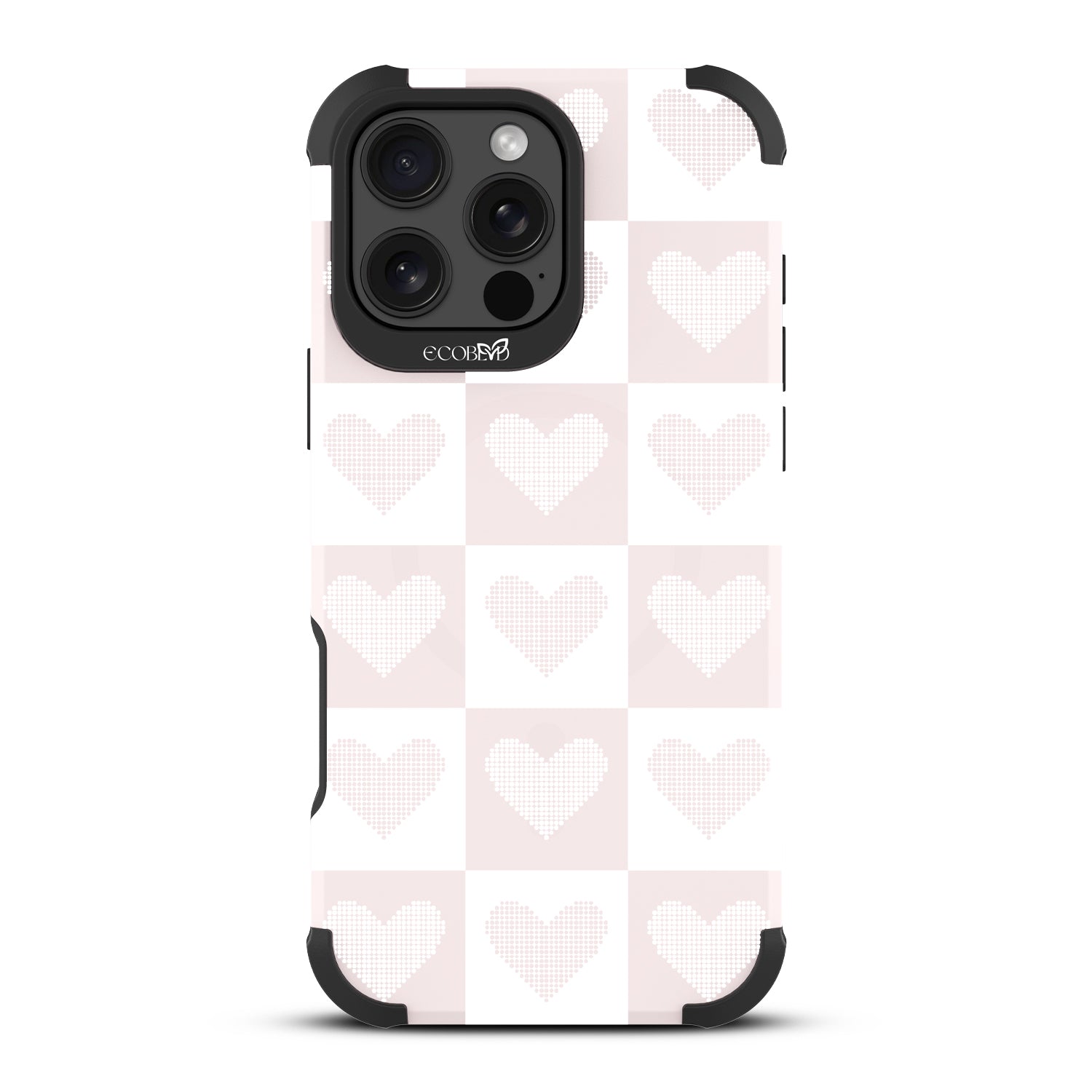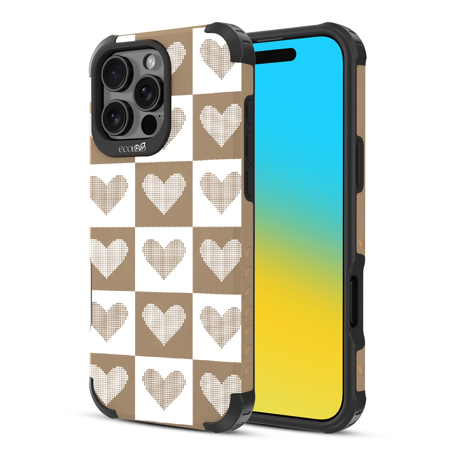 Soften up with the quilted hearts of the Quilty Pleasures design on our Reforge rugged iPhone 16 Pro Max phone case, lovingly stitched and crafted with a gingham plaid pattern and hearts sewn inside to give you a warm embrace every time you look at your phone.