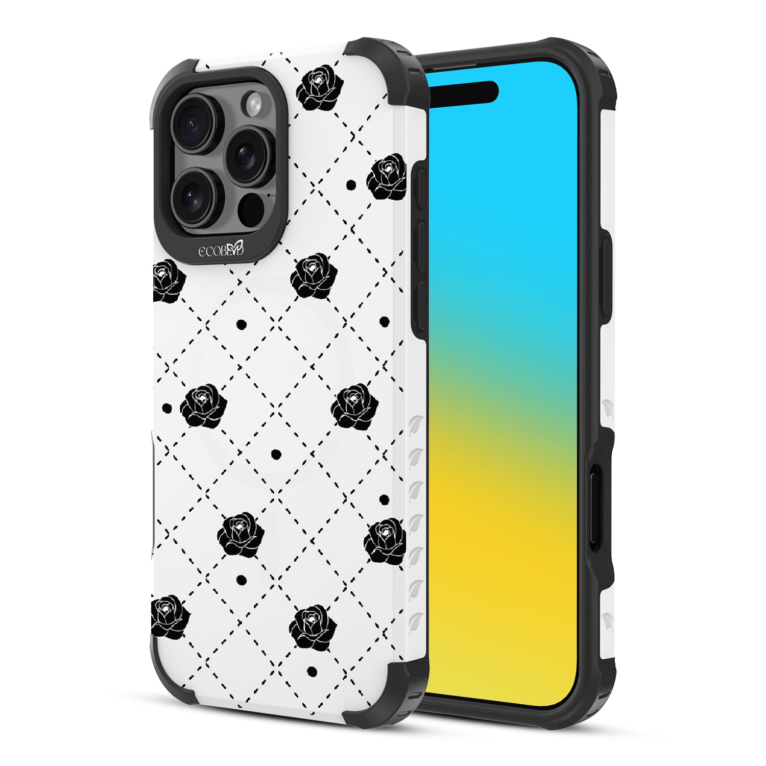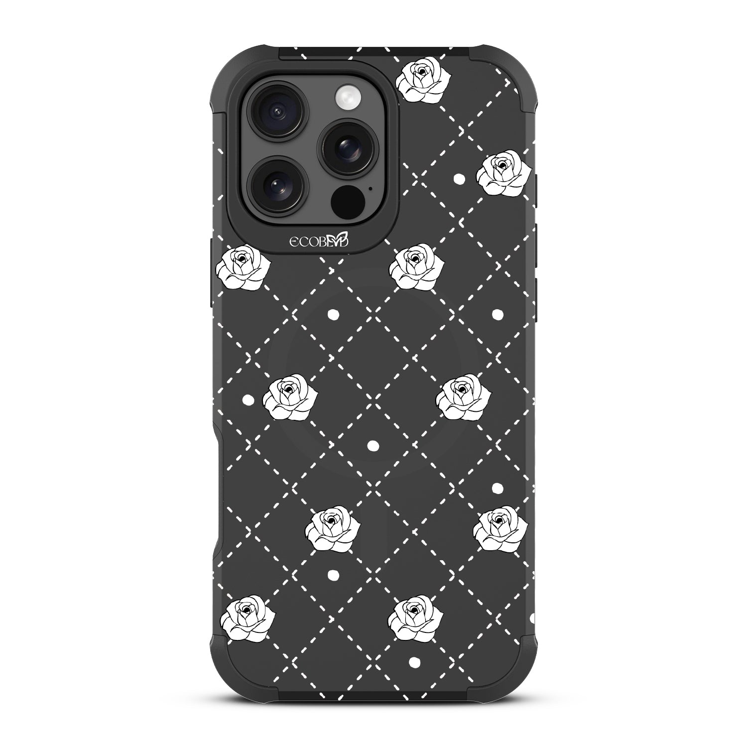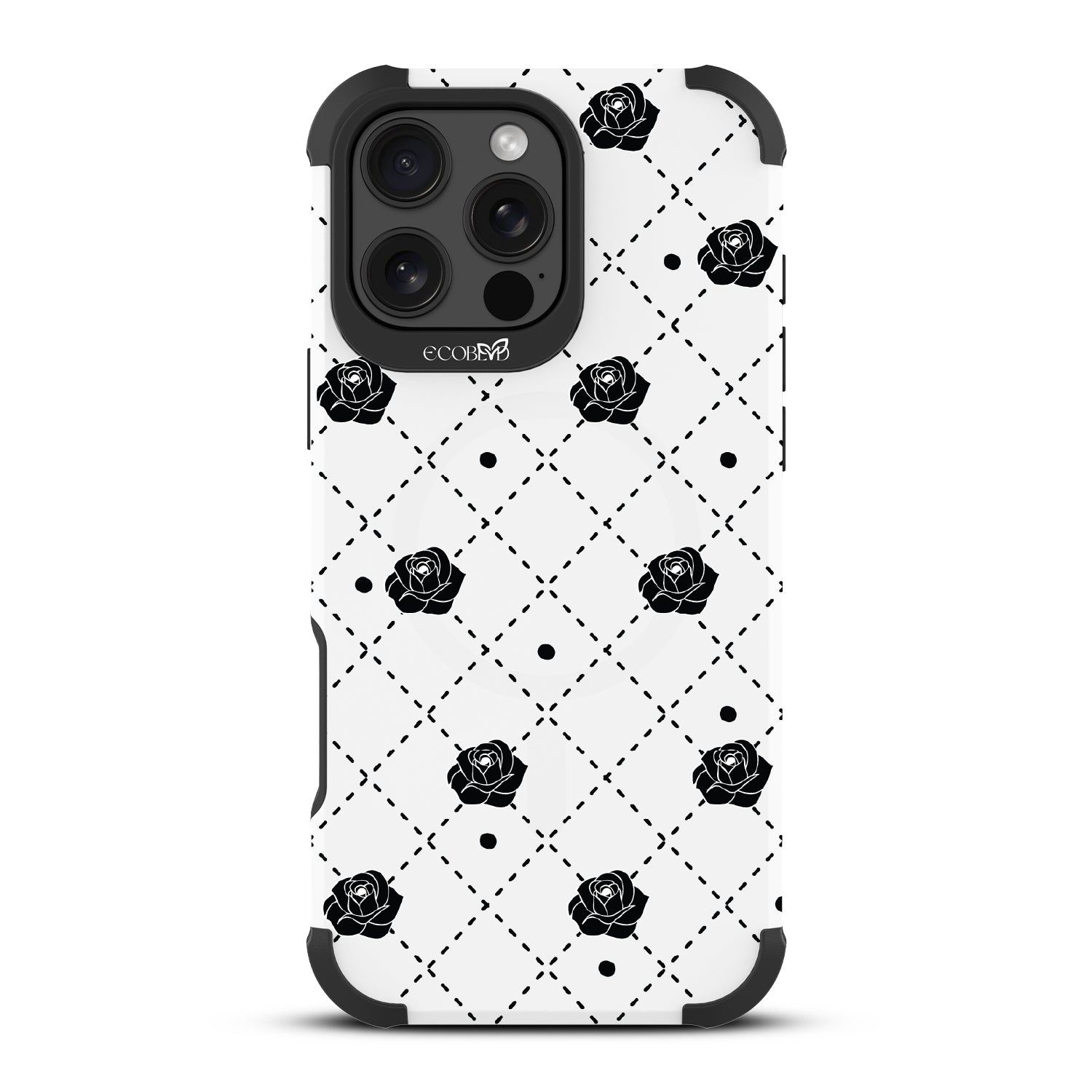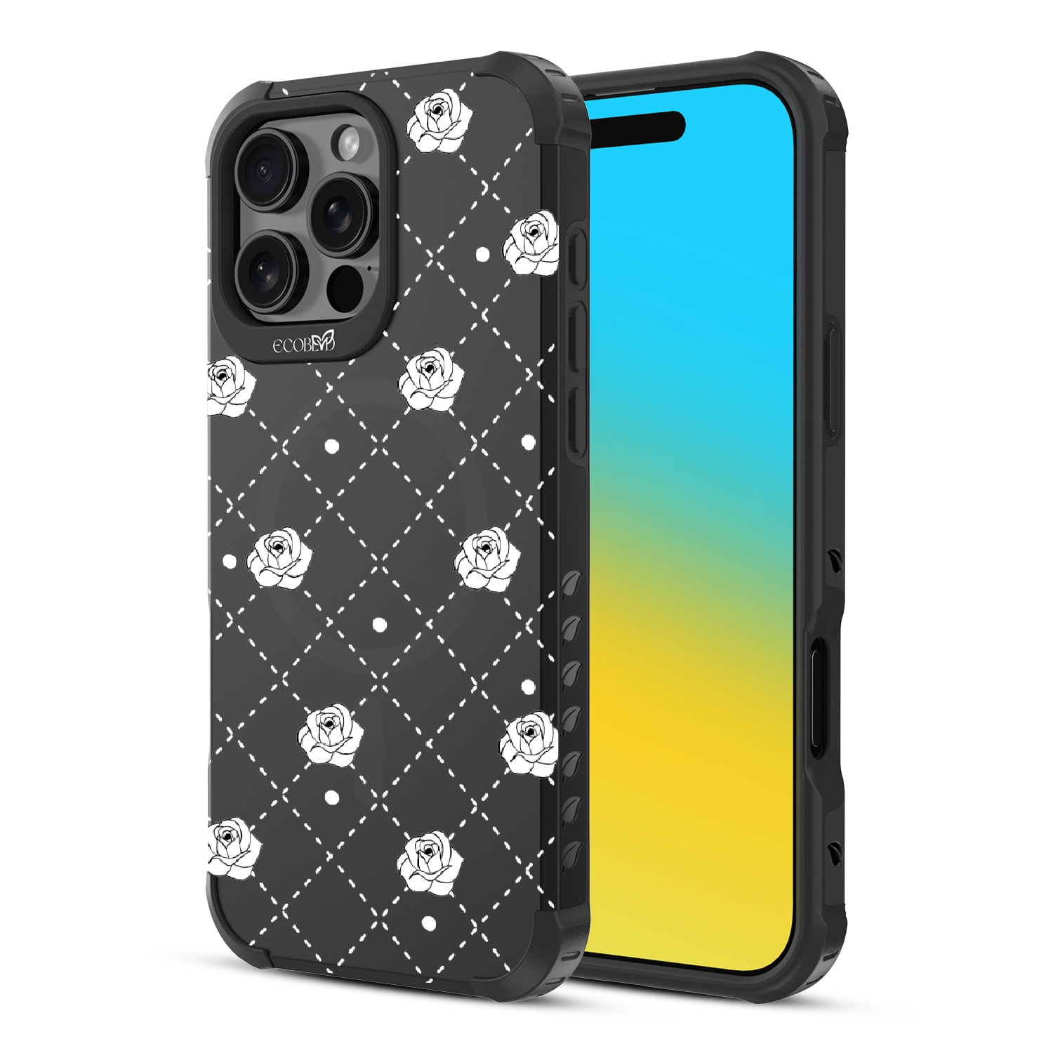 Roses are red, violets are blue, but with this Rose To The Occasion design on our Reforge rugged iPhone 16 Pro Max phone case, your phone's look will be nothing but fresh and new with its white roses and polka dots on a stitched argyle background, adding that extra oomph to your style.