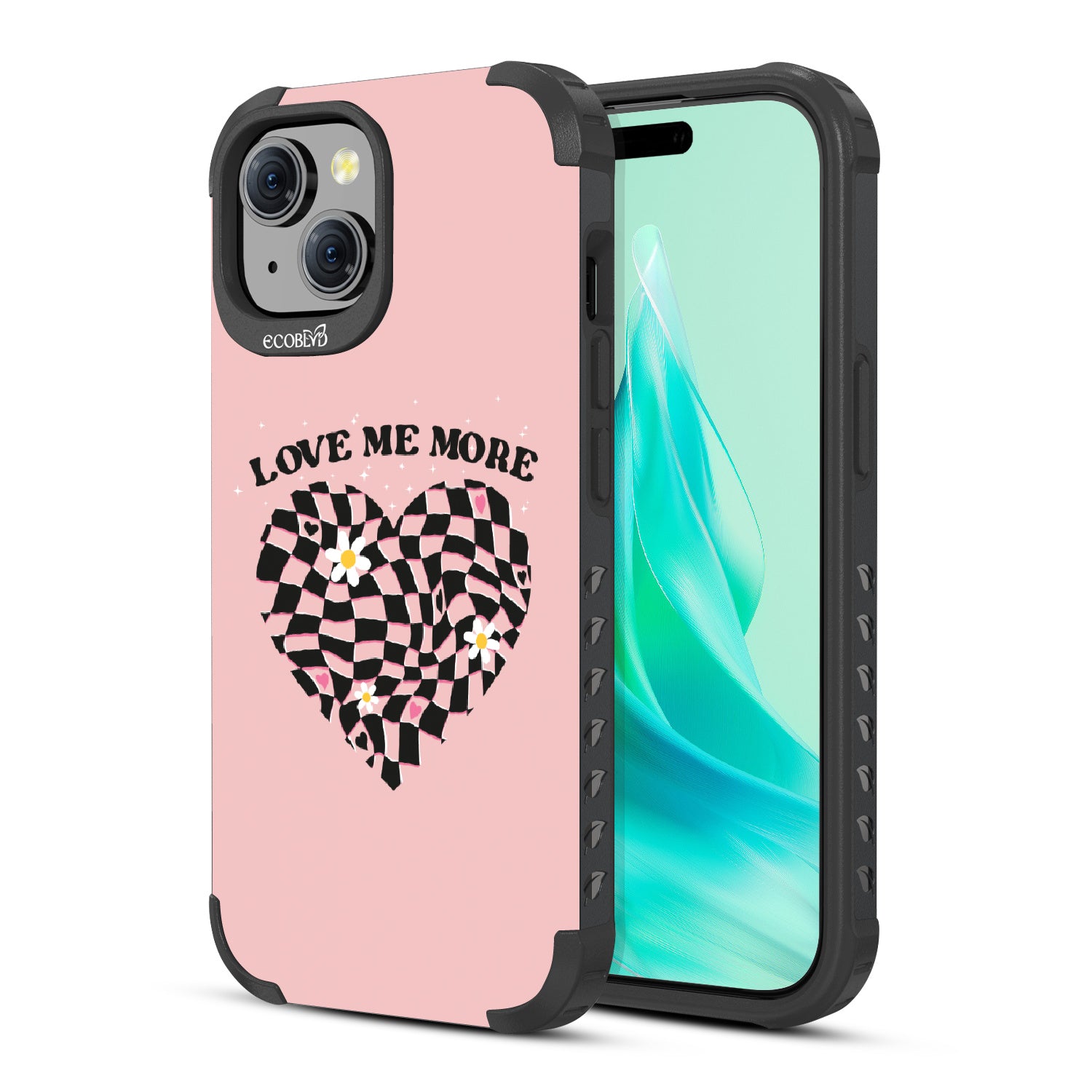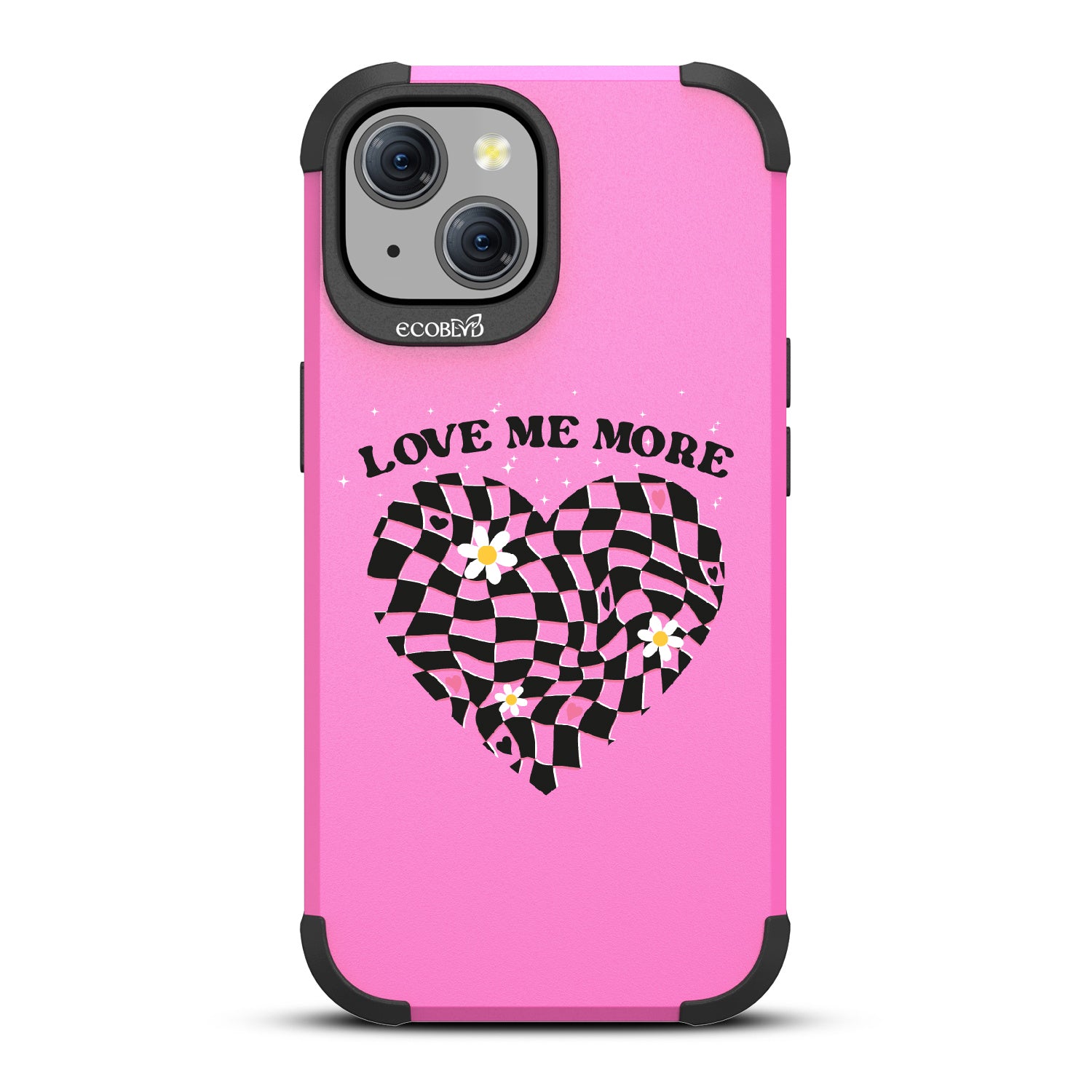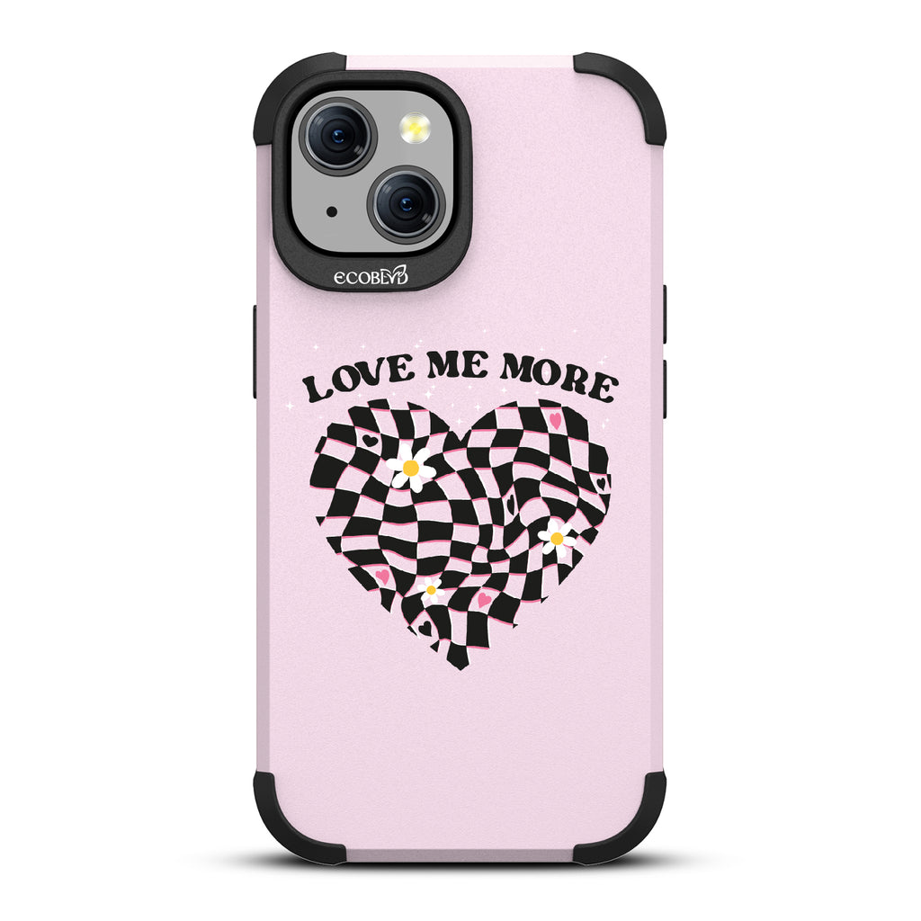 On our Mojave rugged and compostable iPhone 15 MagSafe case, Love Me More intricately portrays the language of desire, with a checkered heart adorned by an intoxicating symphony of blossoms. The patterns speak volumes of yearnings, while the text passionately conveys the plea for more passion, leaving an indelible mark that echoes "Forever in Your Heart."