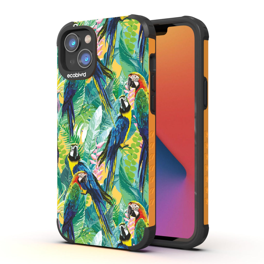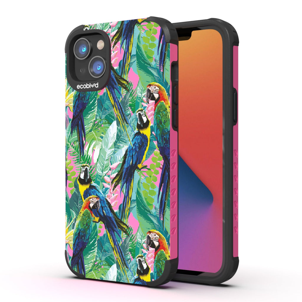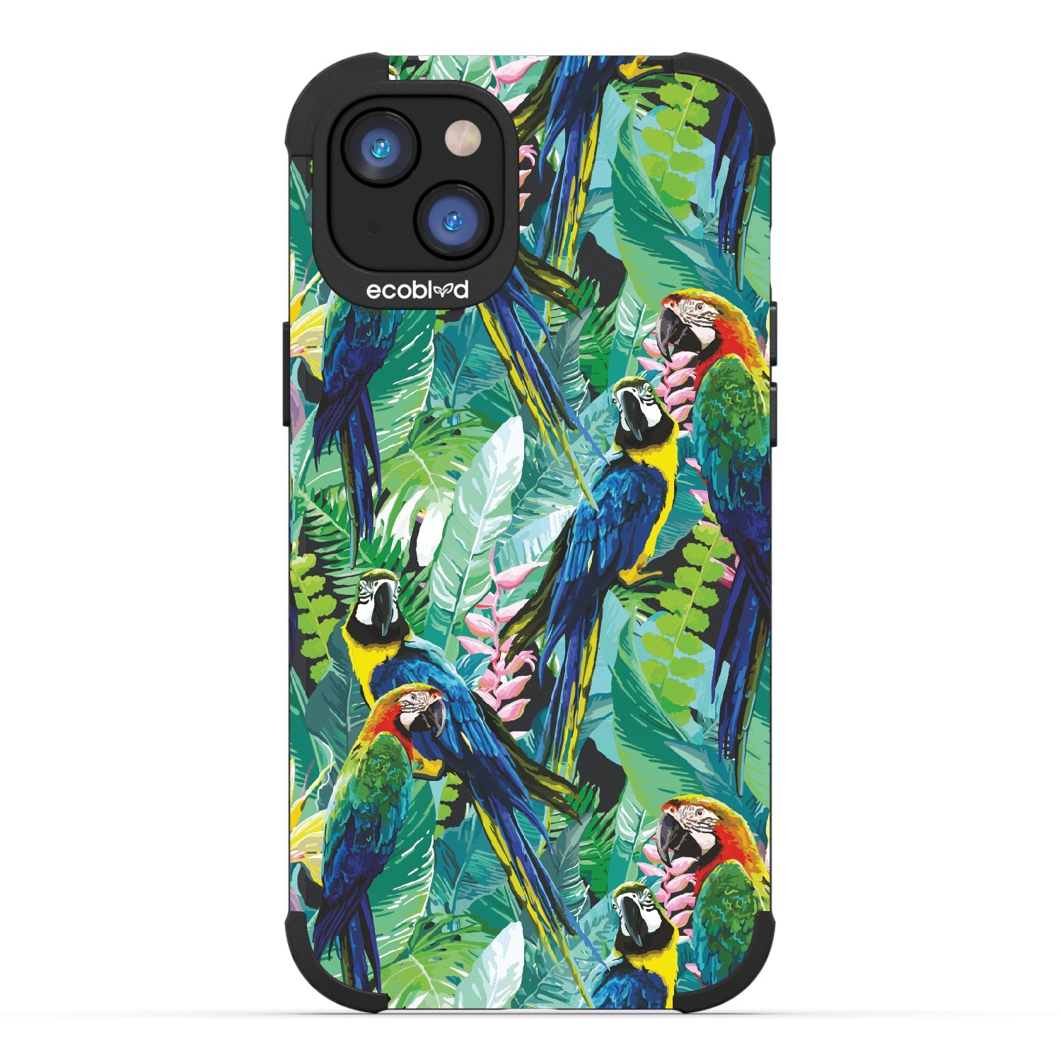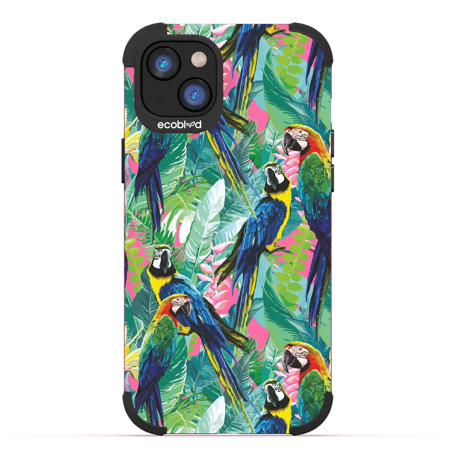 Immerse yourself in the untamed allure of the tropical jungle as the captivating watercolor collage of macaws takes flight on the Macaw Medley design on our Mojave rugged and compostable iPhone 16e, iPhone 14, and iPhone 13 phone case. Embrace a radiating sense of freedom, adventure, and unapologetic self-expression while supporting ocean conservation efforts. Macaw Medley is a visual duet, a pairing of colorful birds in a harmonious melody that will transport you to a tropical paradise in five captivating colors: Midnight Black, Cascade Blue, Foilage Green, Illuminating Yellow, and Wildflower Pink. So spread your wings, unleash your inner wildness, and let Macaw Medley be your guide in the pursuit of unforgettable experiences!