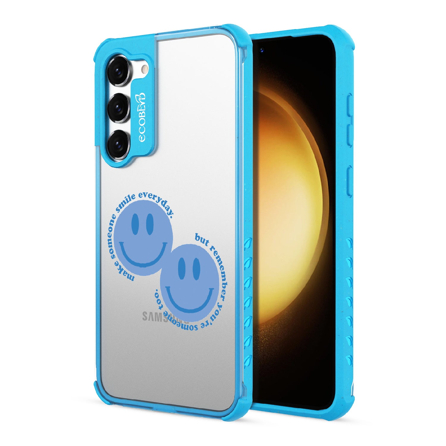 Spread happiness with the Make Someone Smile design on our Laguna clear Galaxy S23 phone case. Featuring two cheerful smiley faces, this design prompts you to be a source of joy for others. While you make someone else smile, recognize that you too are deserving of moments filled with happiness.