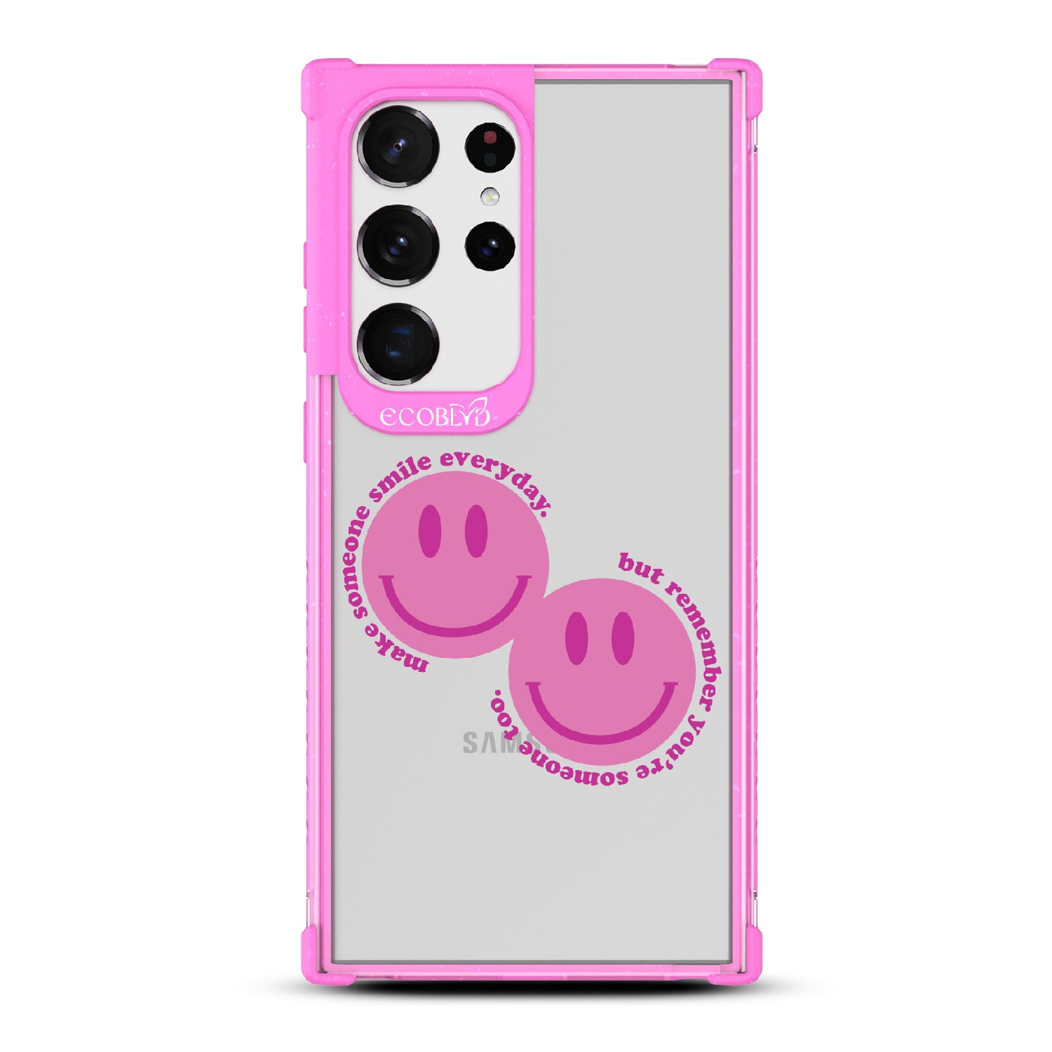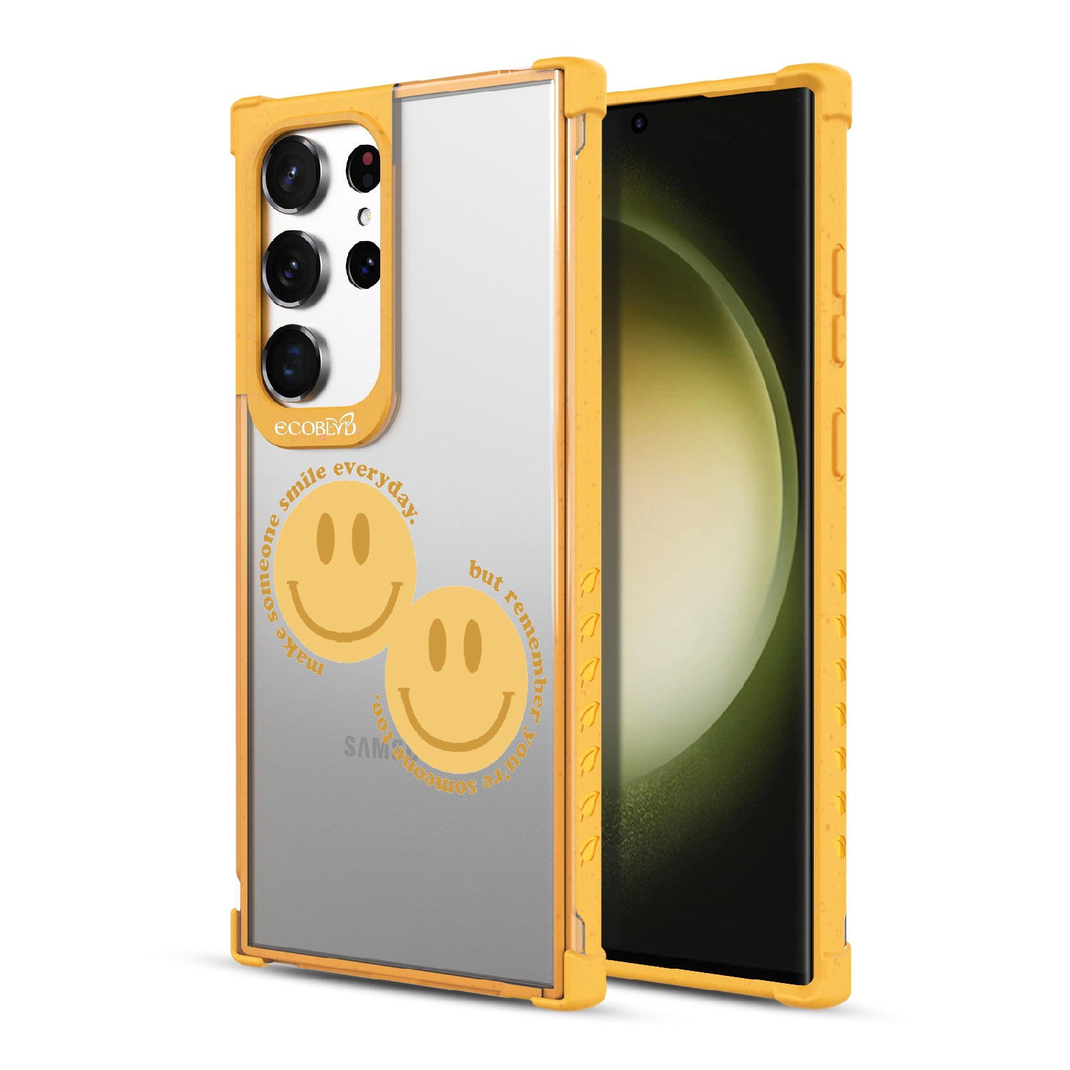 Spread happiness with the Make Someone Smile design on our Laguna clear Galaxy S23 Ultra phone case. Featuring two cheerful smiley faces, this design prompts you to be a source of joy for others. While you make someone else smile, recognize that you too are deserving of moments filled with happiness.