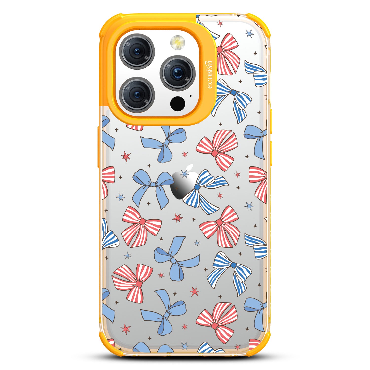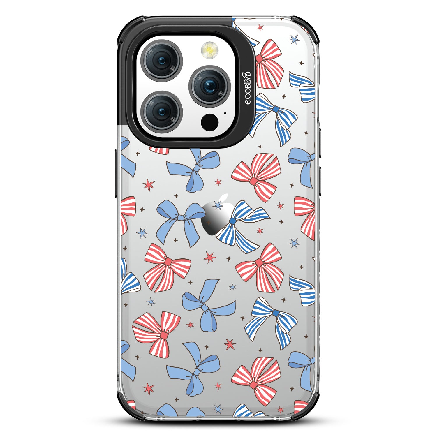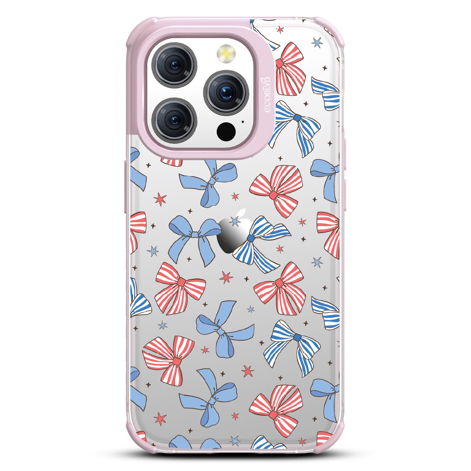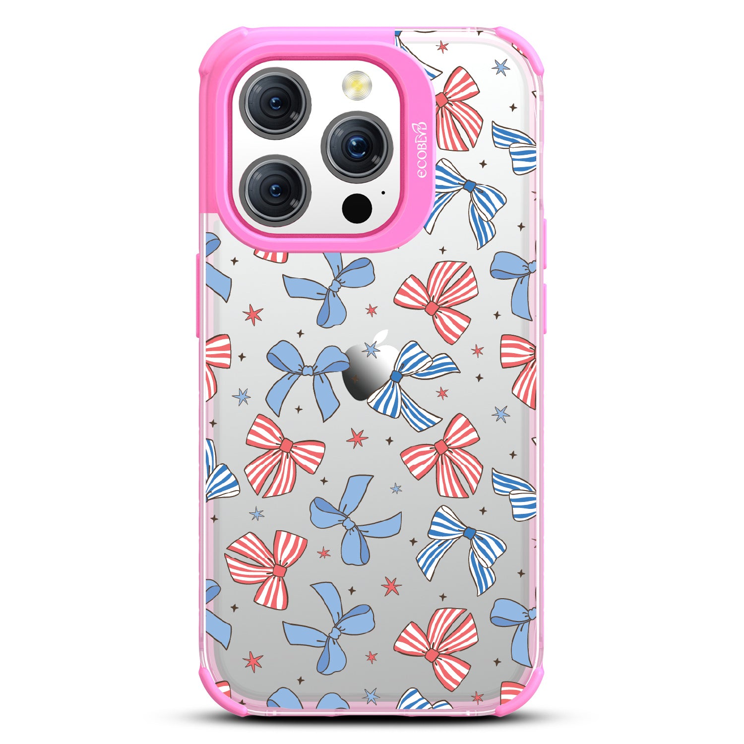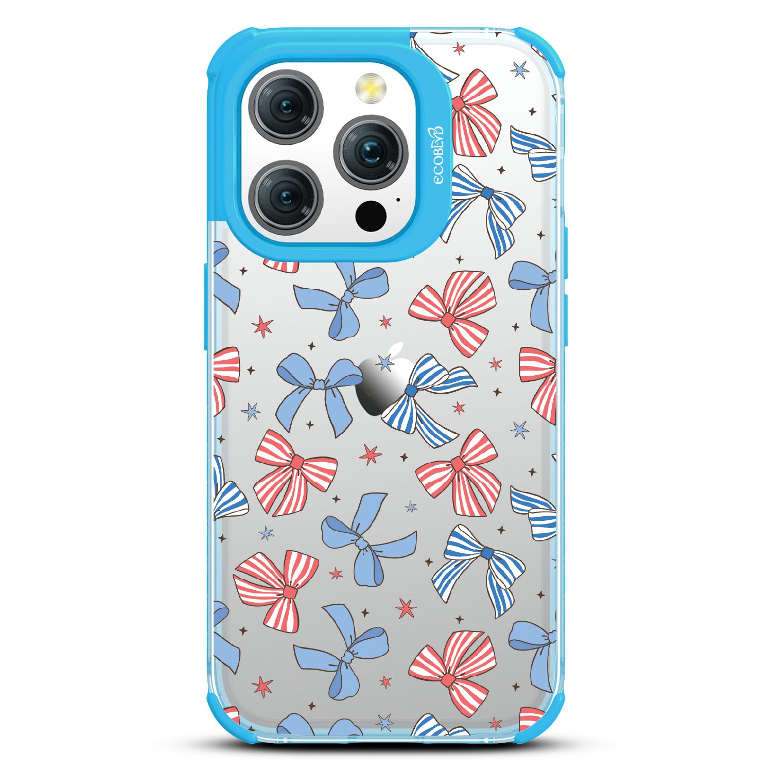 America the bow-tiful! The Miss Americana design on our Laguna clear iPhone 15 Pro phone case crowns your phone with patriotic flair. With red, white, and blue bows, this coquette phone case design turns your phone into the belle of the Americana ball.