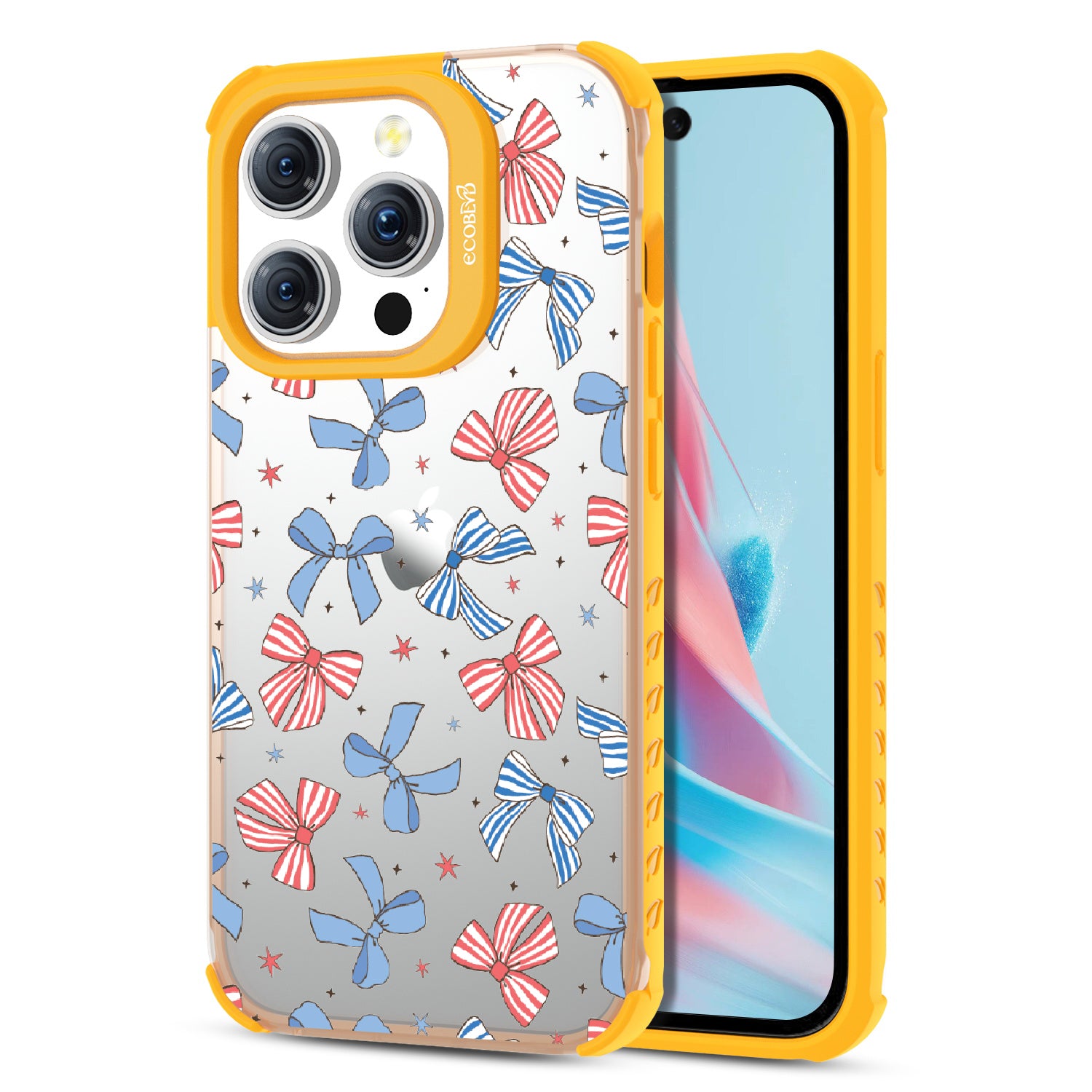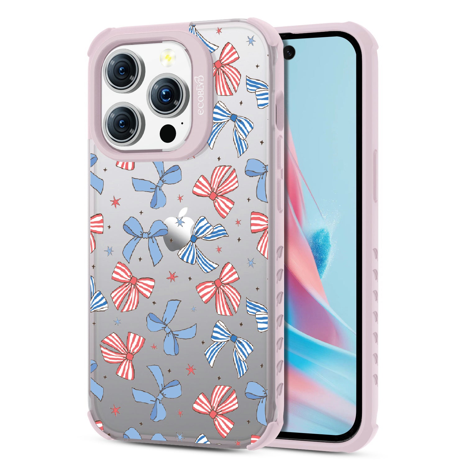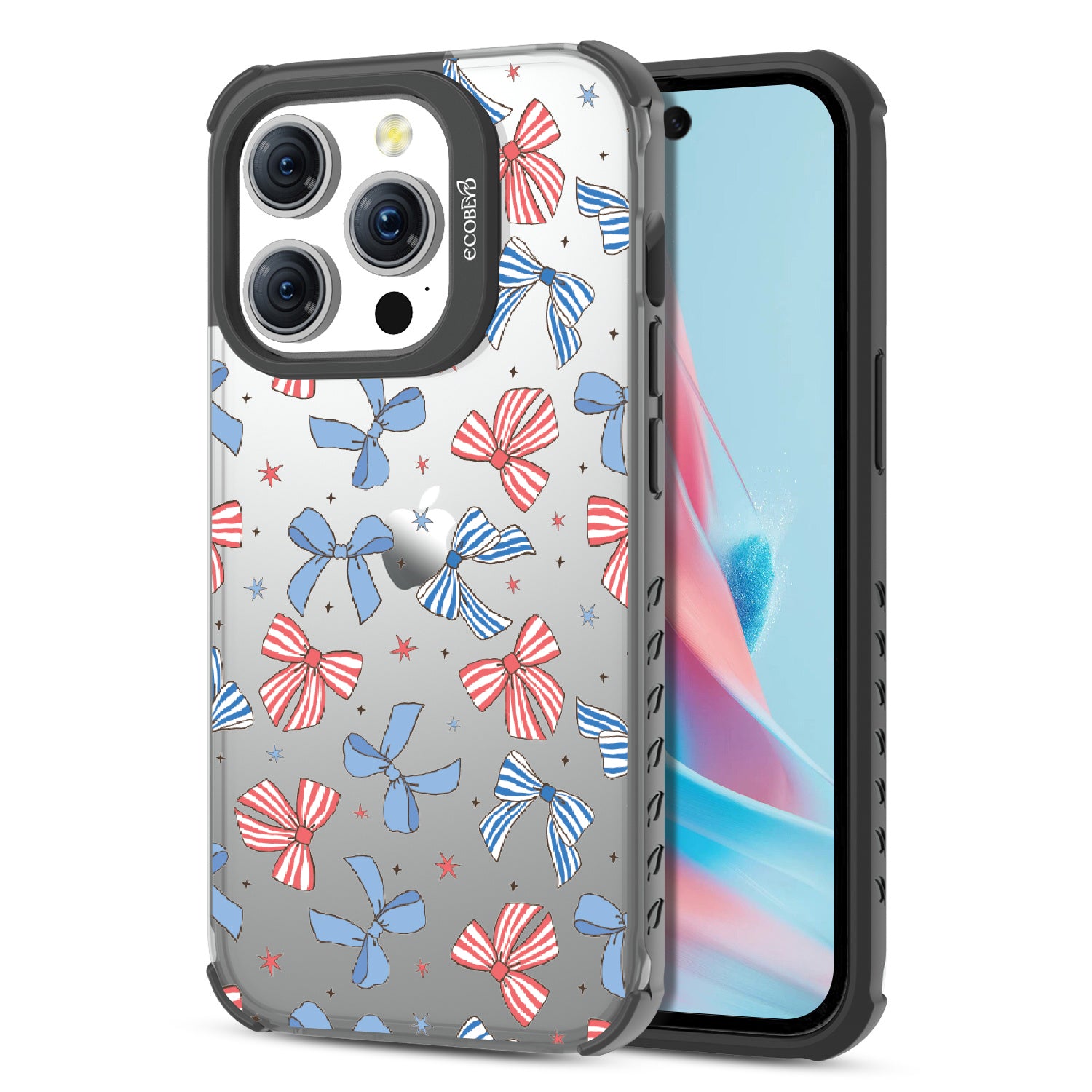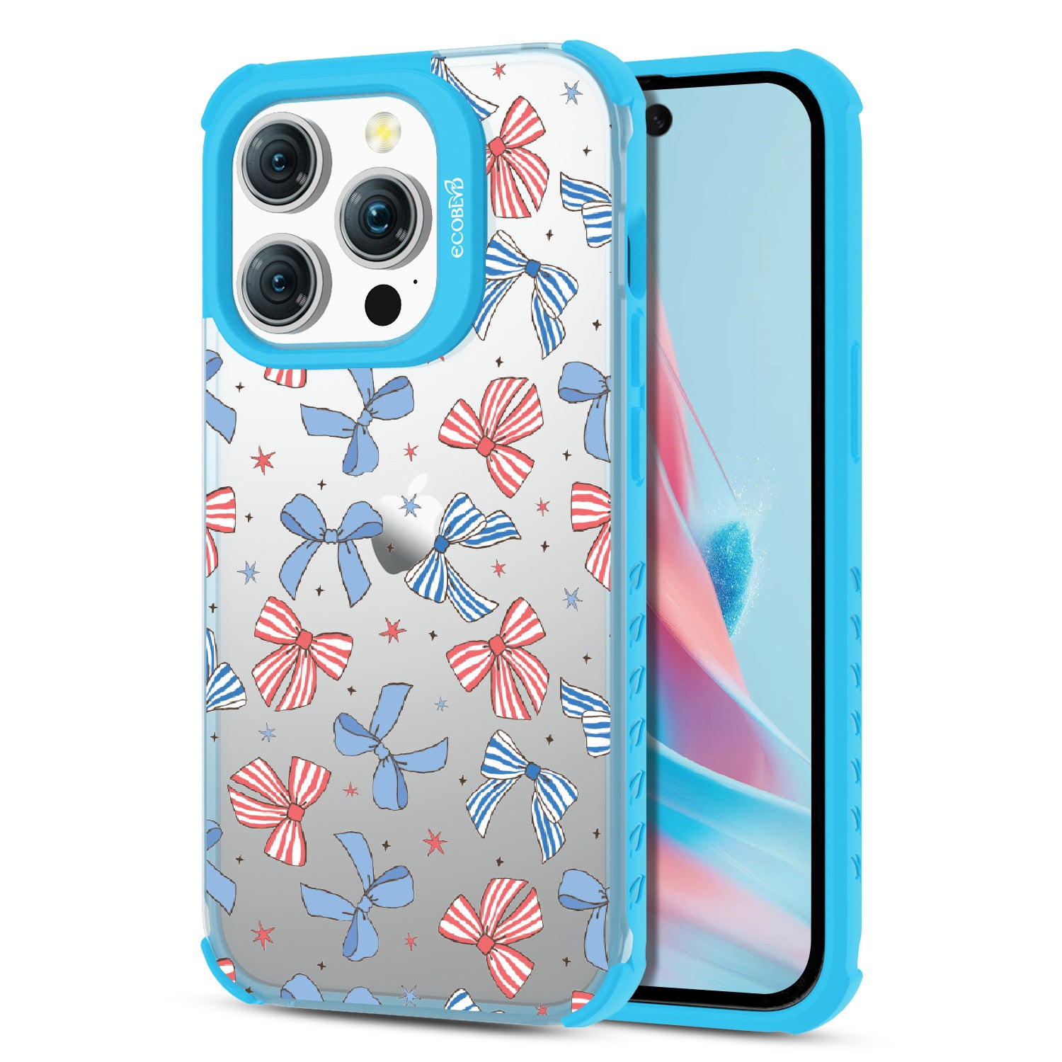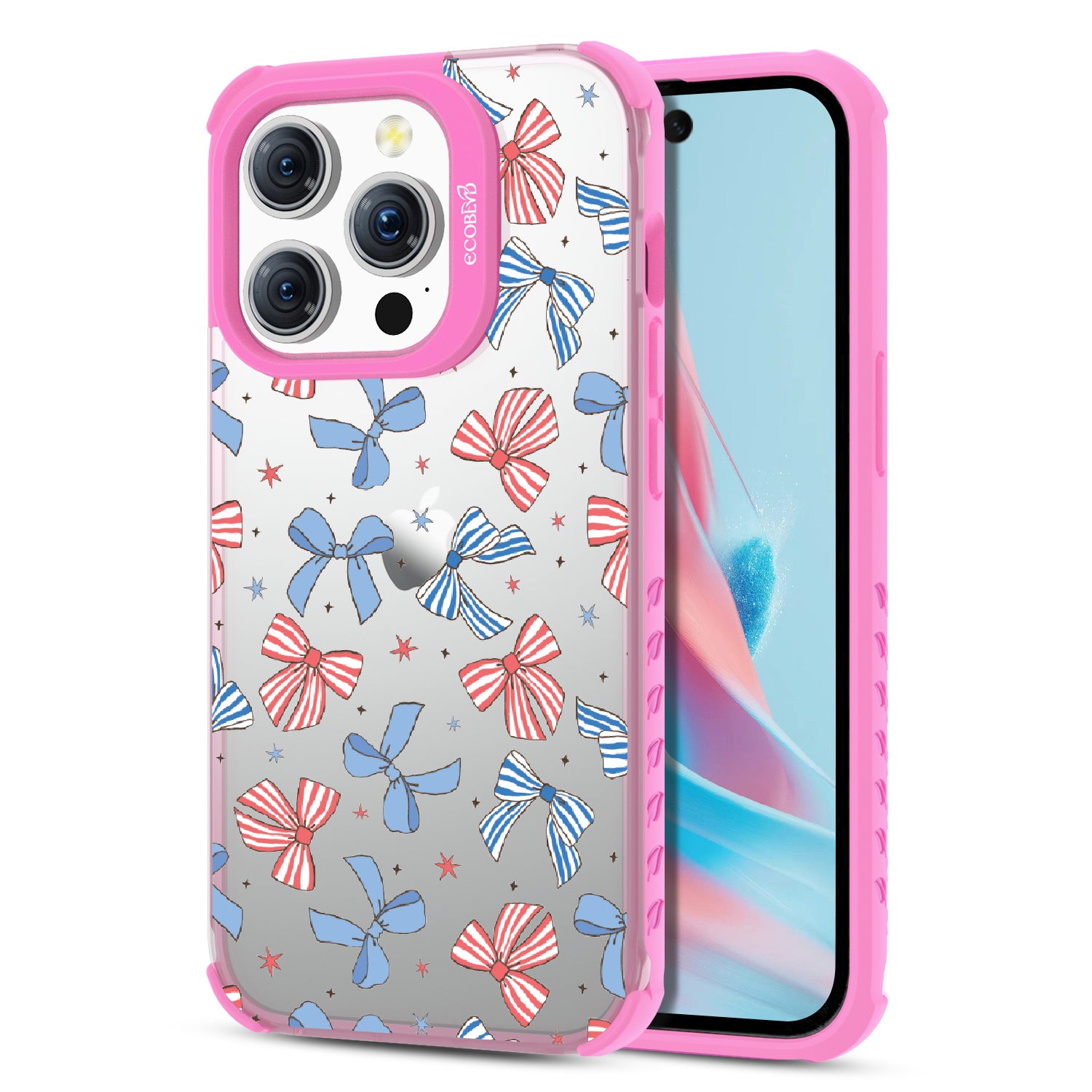 America the bow-tiful! The Miss Americana design on our Laguna clear iPhone 15 Pro phone case crowns your phone with patriotic flair. With red, white, and blue bows, this coquette phone case design turns your phone into the belle of the Americana ball.