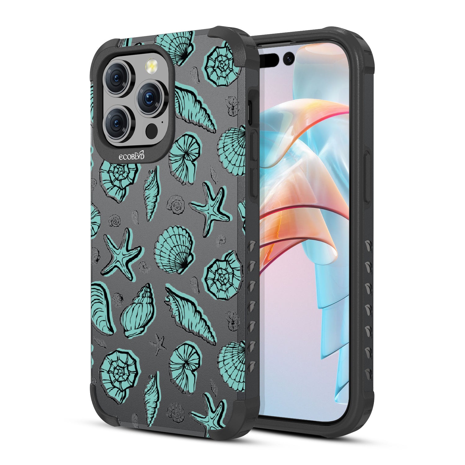 Take a leisurely stroll along the sandy shore with the Seashells Seashore design on our Mojave rugged and compostable iPhone 15 Pro Max case, where hidden treasures await your discovery! Each shell holds a secret, whispering tales of the ocean's mysteries, while the starfish beckon you to discover the wonders of the deep. Explore nature's little miracles with your phone as a treasure map. Available on our Midnight Black colorway.