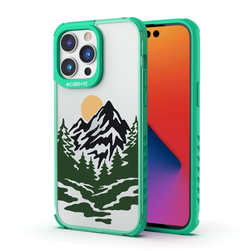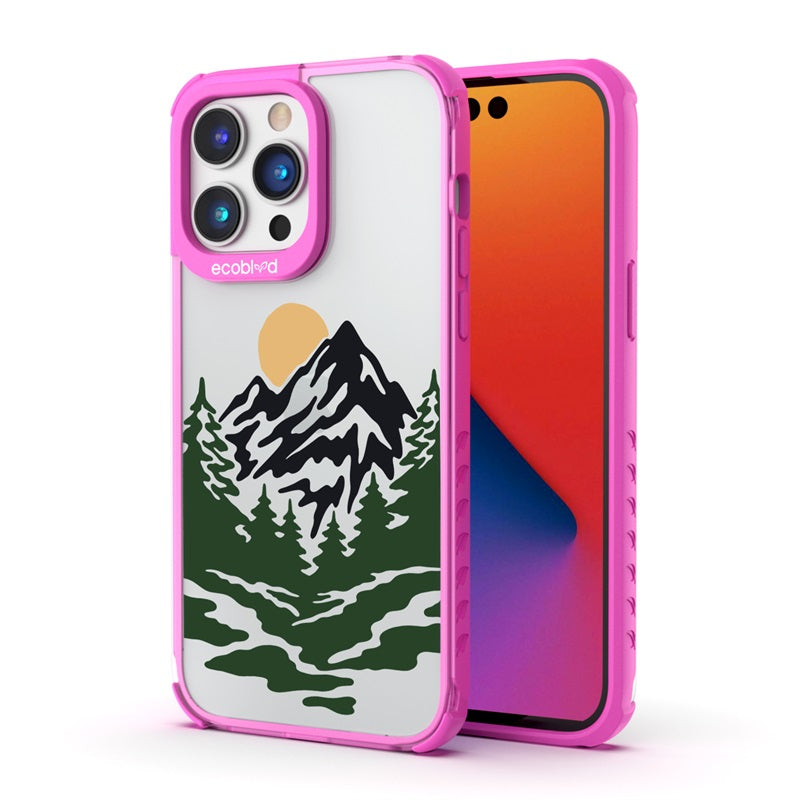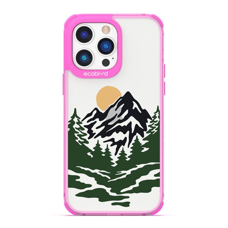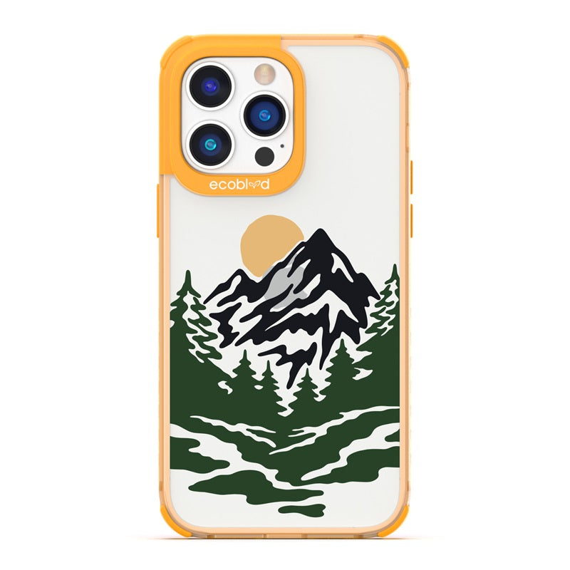 Like a breath of fresh air, the Mountains design on our Laguna clear iPhone 14 Pro phone case puts your phone in the middle of a stunning nighttime wooded mountain trail that captures the excitement of camping and hiking in five vibrant colors: Midnight Black, Cascade Blue, Foliage Green, Illuminating Yellow, and Wildflower Pink.