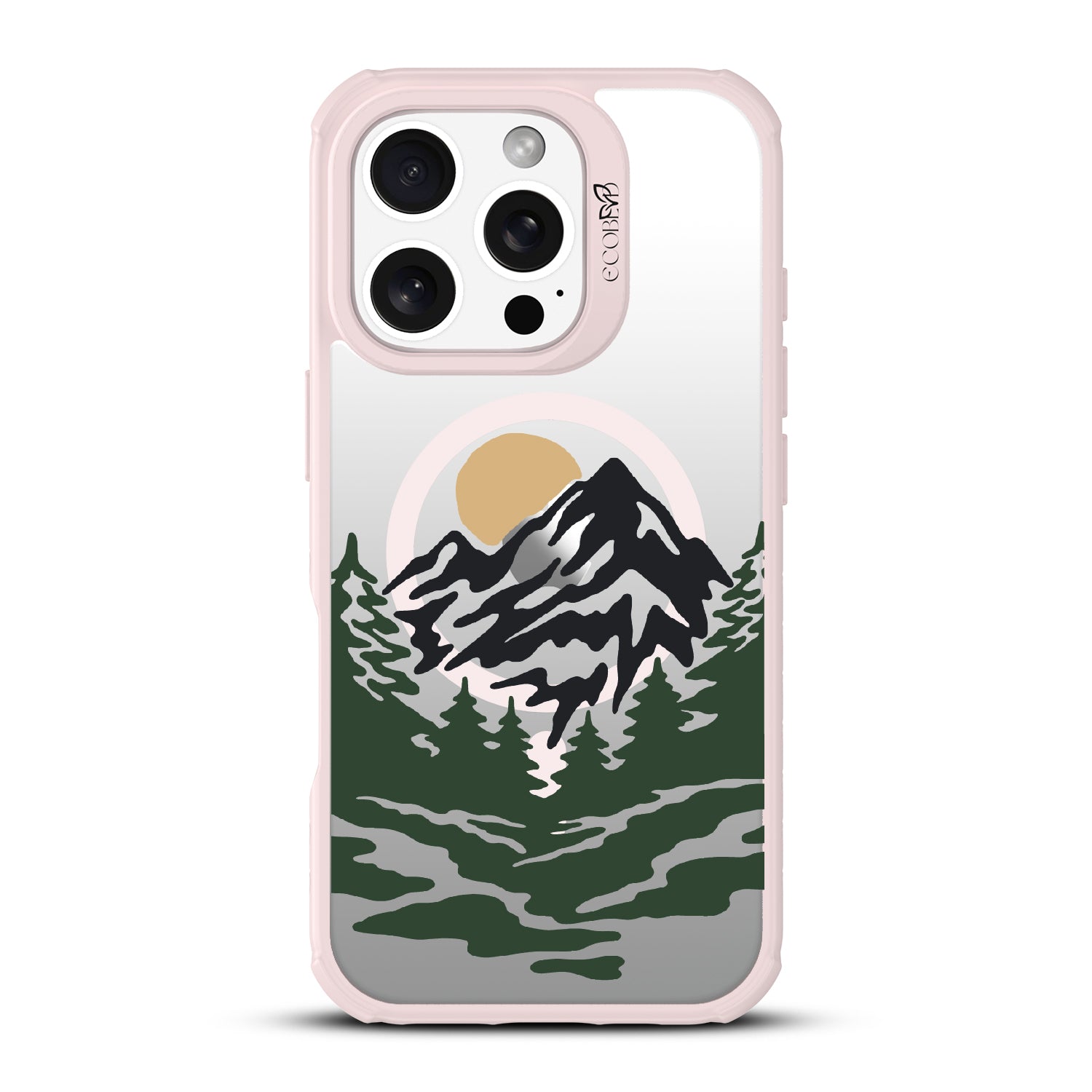 Like a breath of fresh air, the Mountains design on our Revive clear iPhone 16 Pro phone case puts your phone in the middle of a stunning nighttime wooded mountain trail that captures the excitement of camping and hiking
